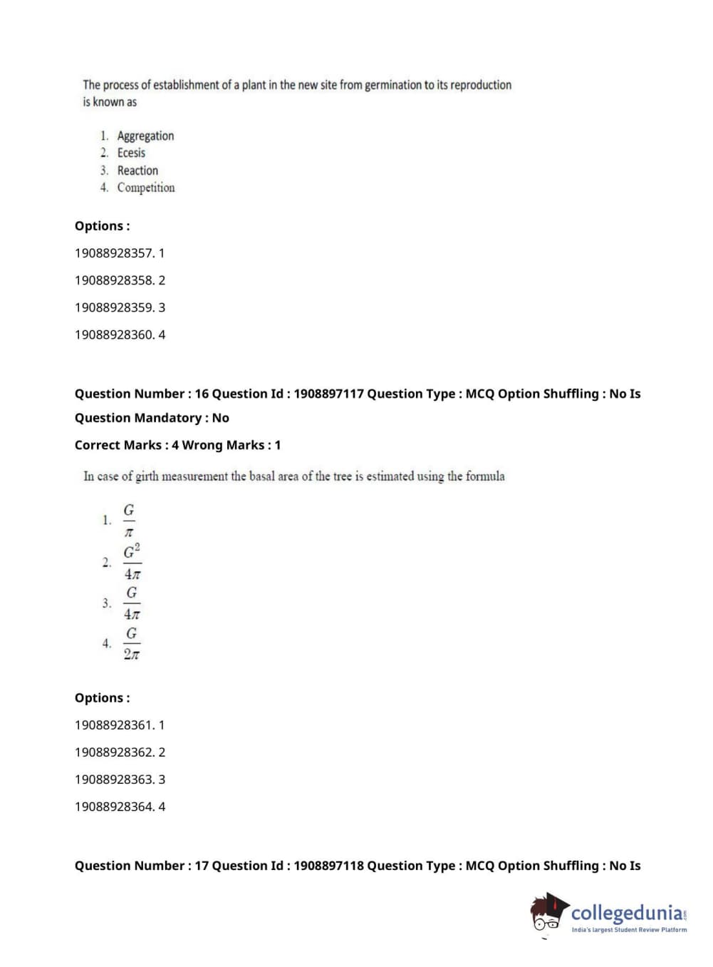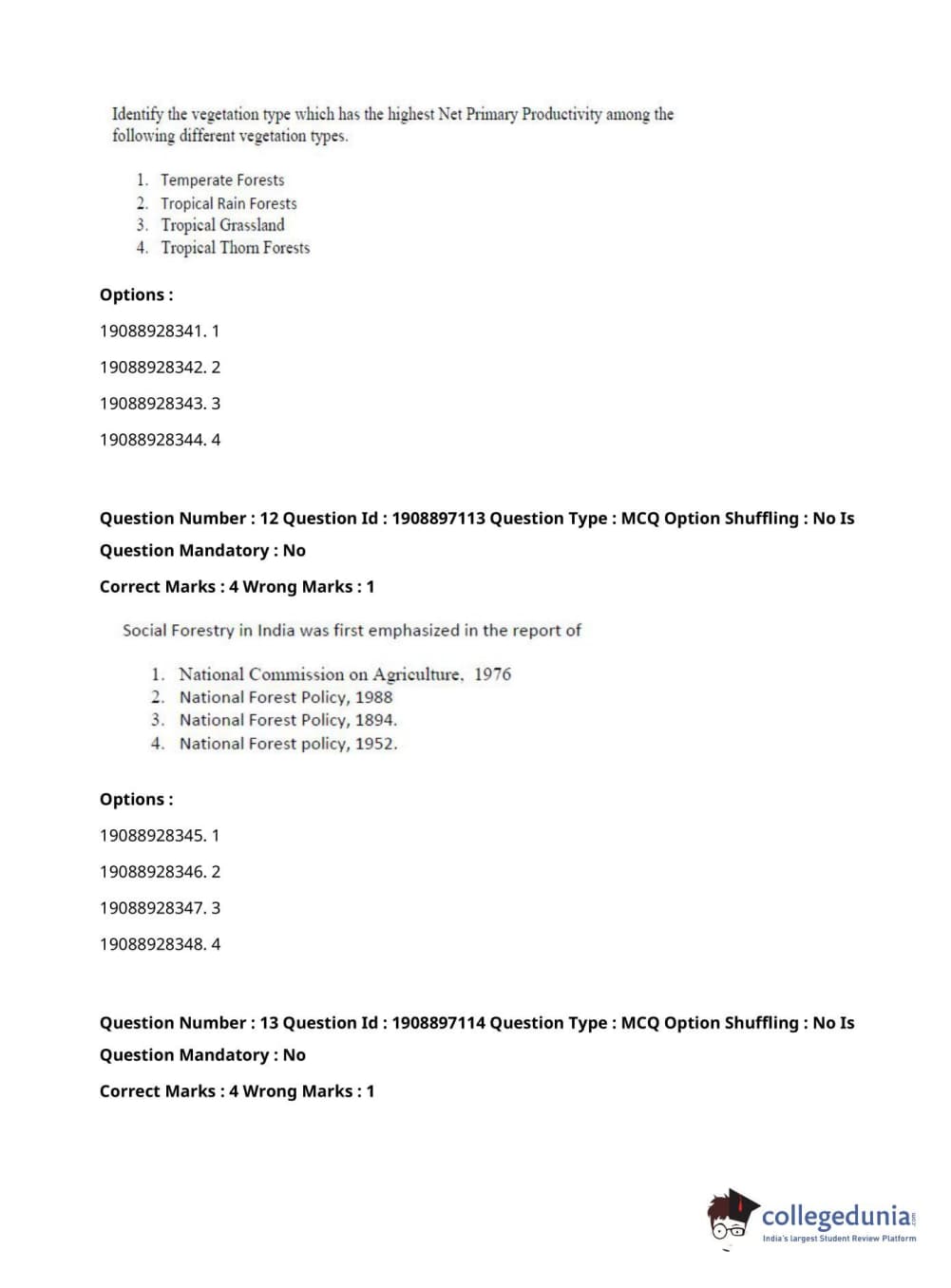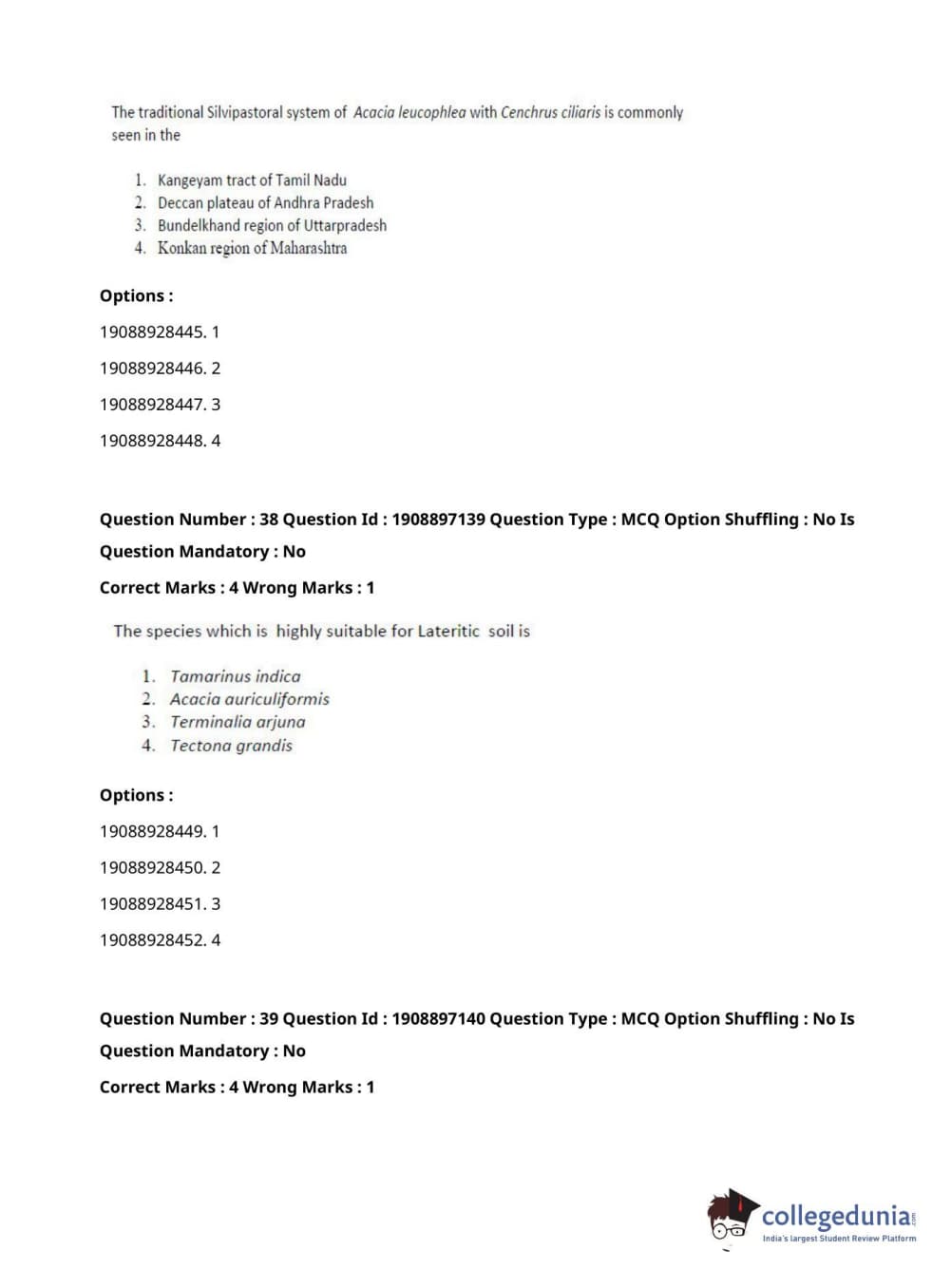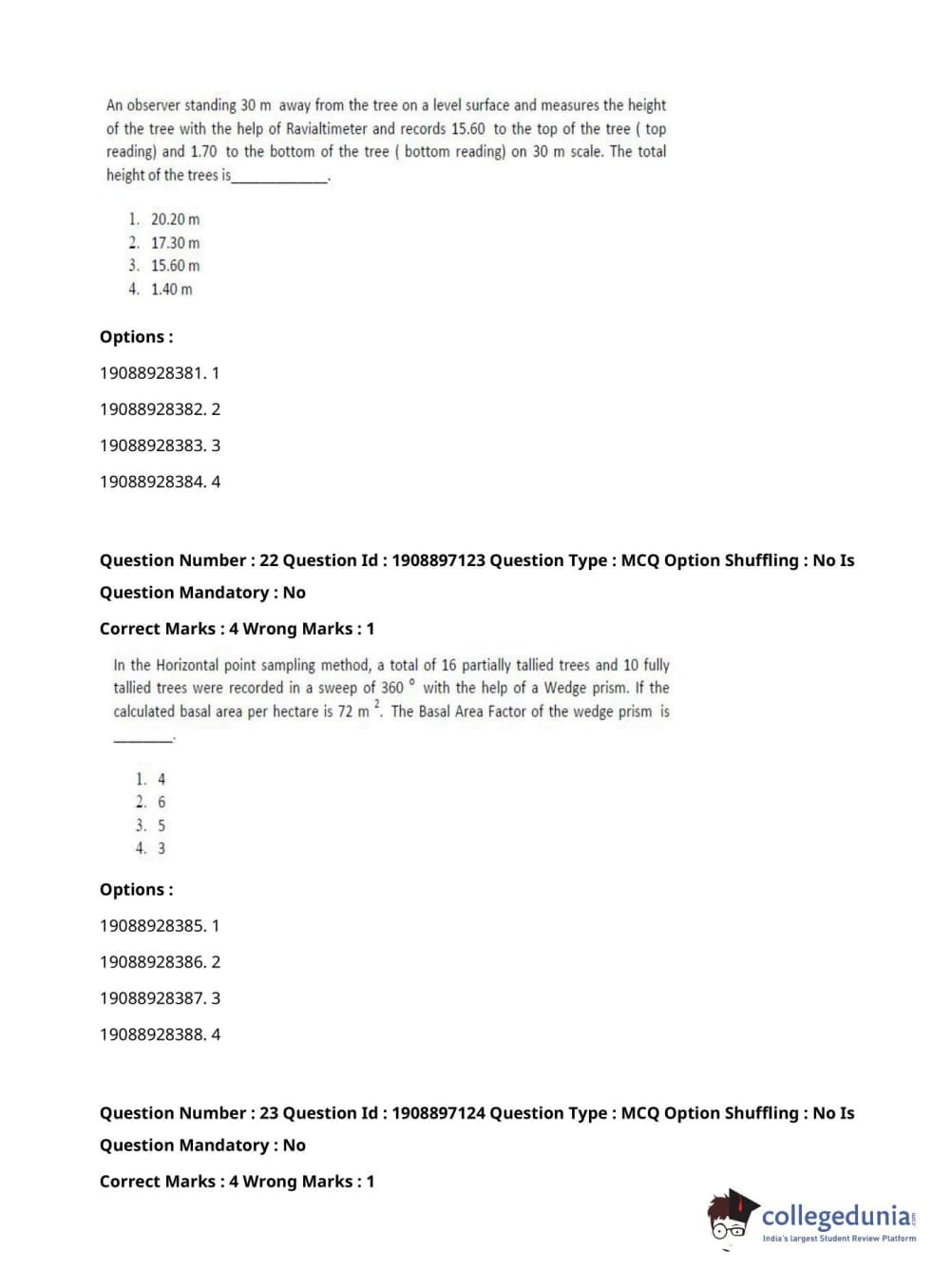 ICAR AIEEA 2021 PG - FORESTRY AGROFORESTRY SILVICULTURE Question Paper with Answer Key PDFs