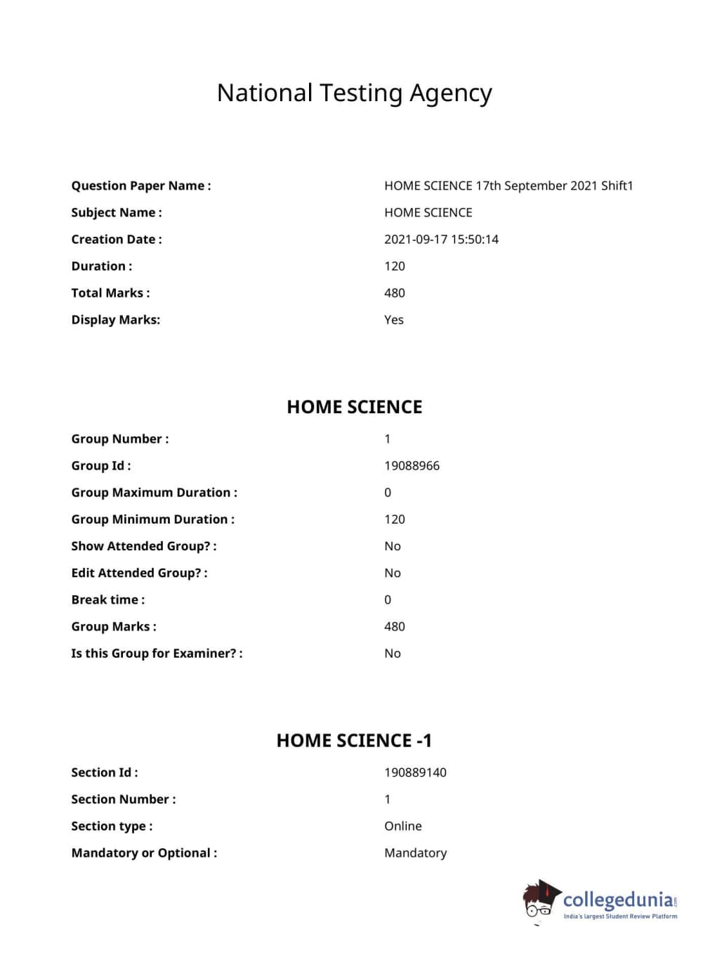 ICAR AIEEA 2021 PG - HOME SCIENCE Question Paper with Answer Key PDFs