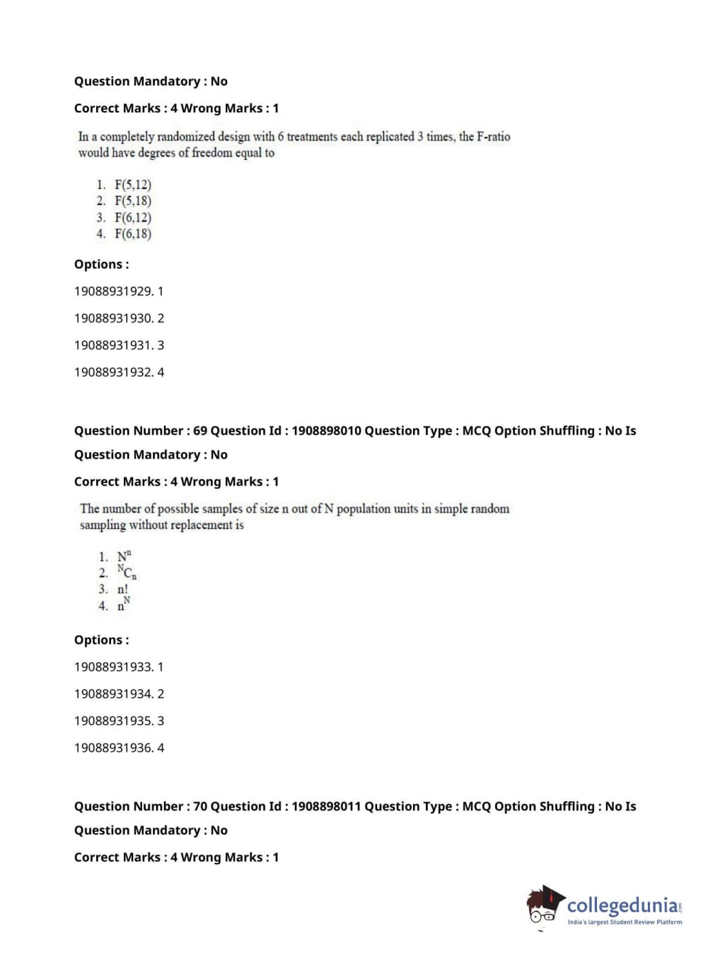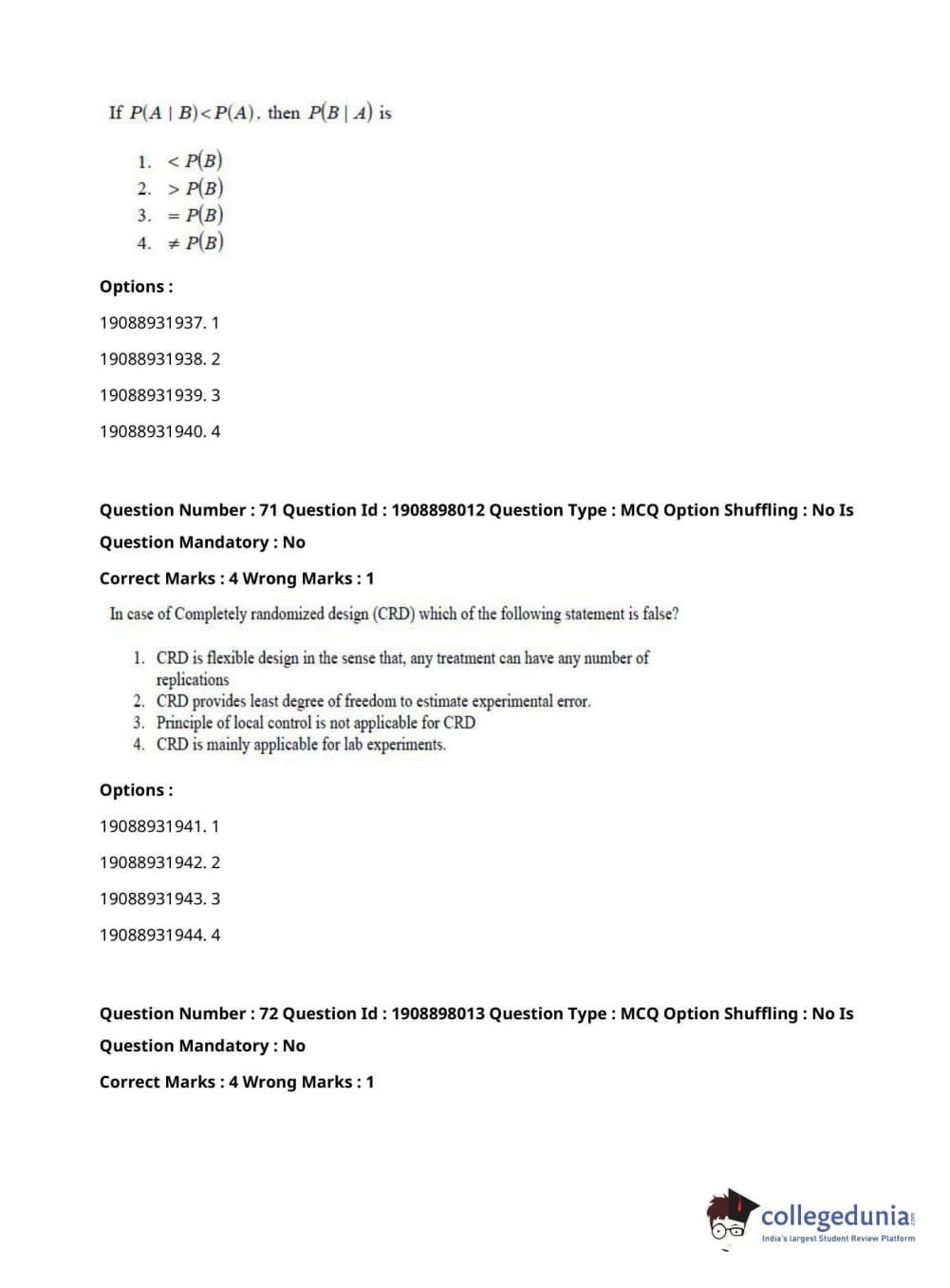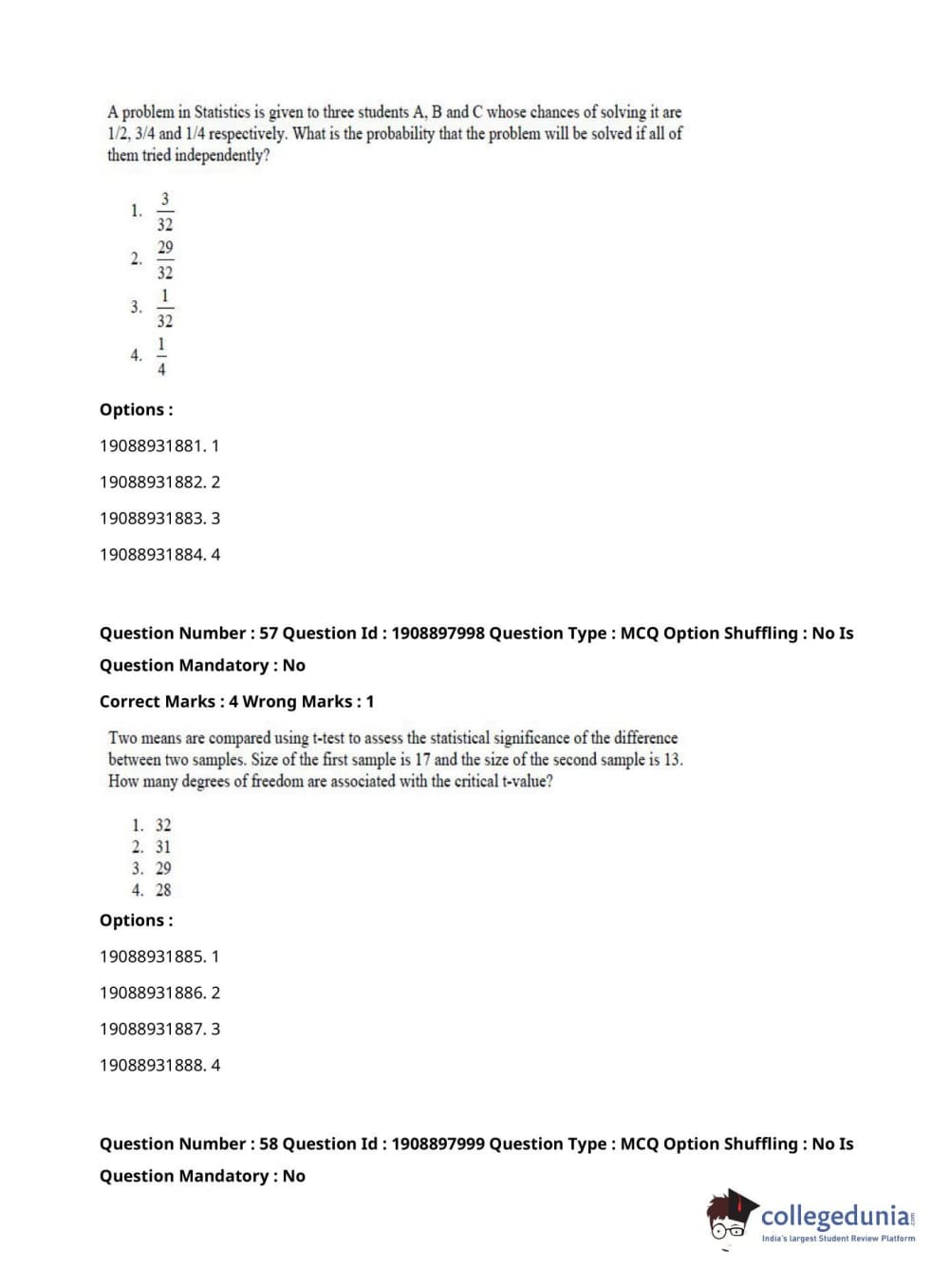 | ICAR AIEEA 2021 PG - STATISTICAL SCIENCE Question Paper PDF | ICAR AIEEA 2021 PG - STATISTICAL SCIENCE Answer Key PDF |
