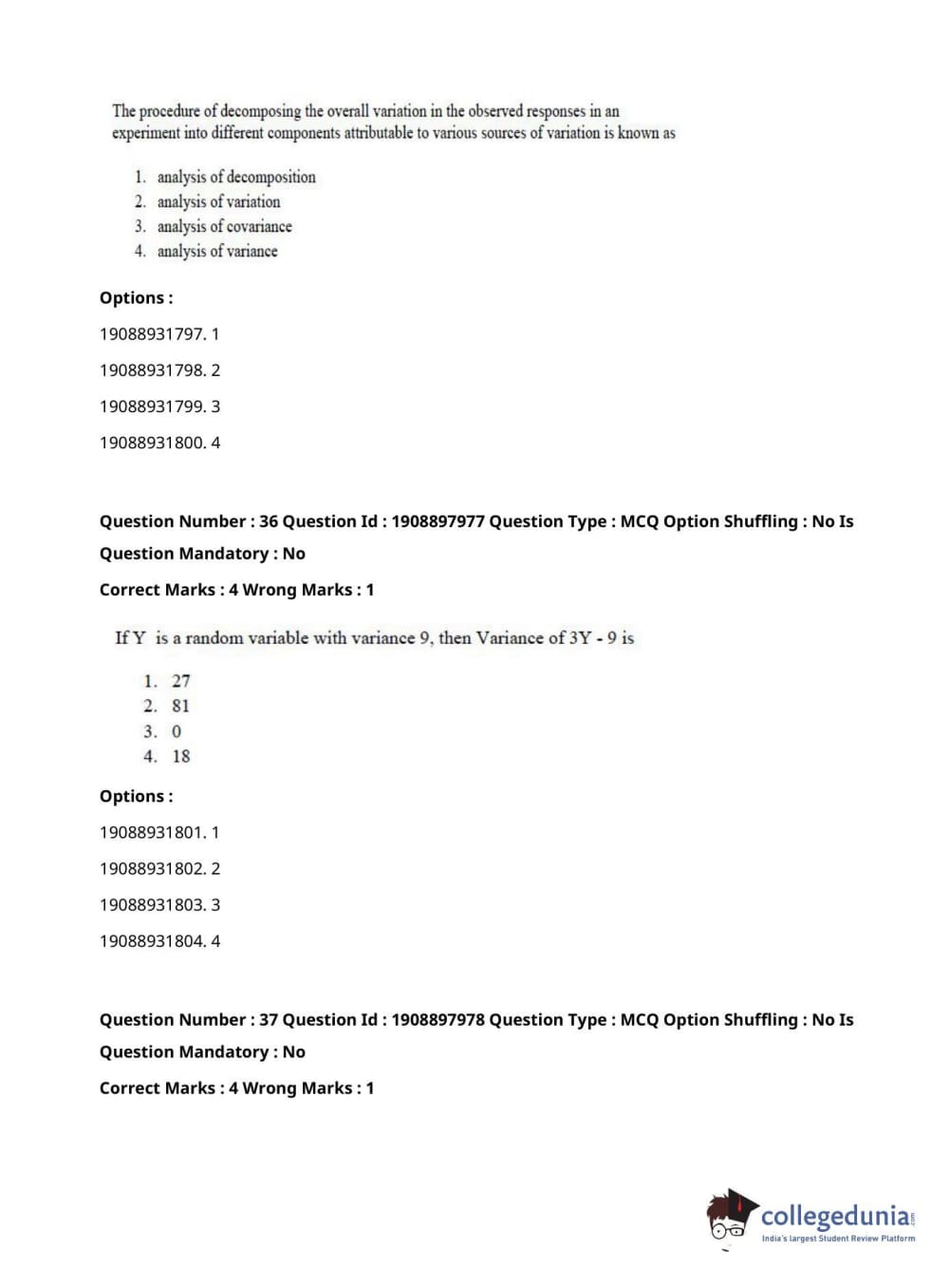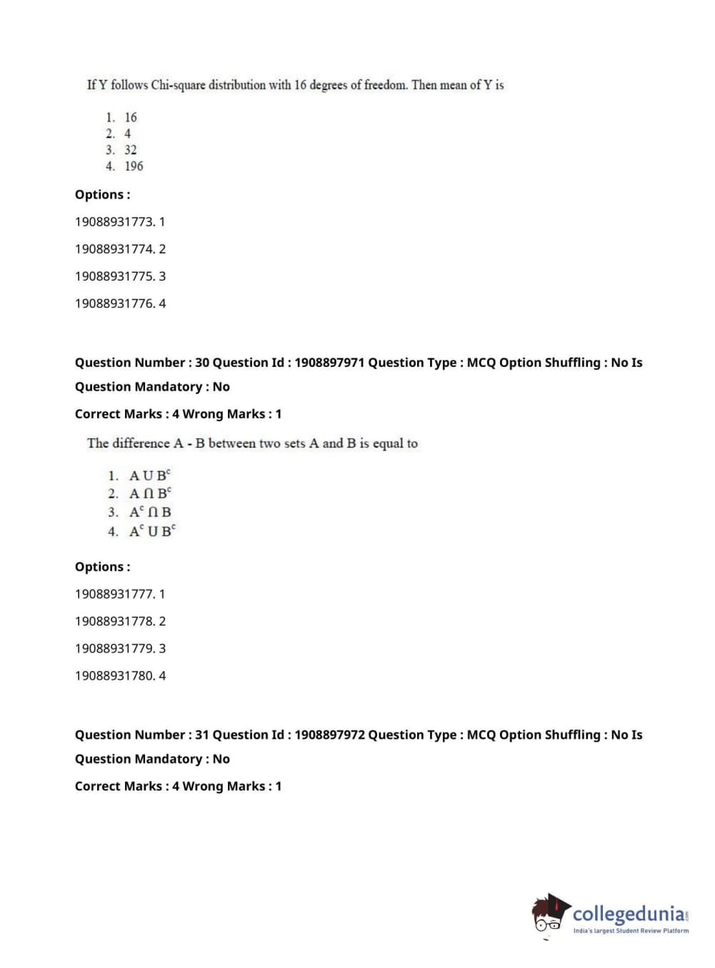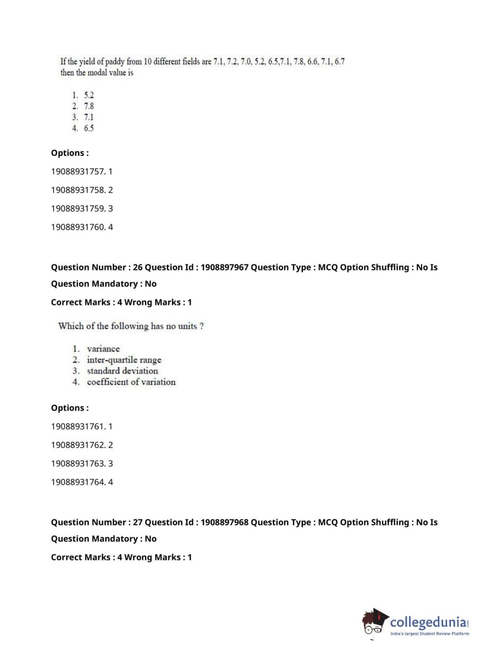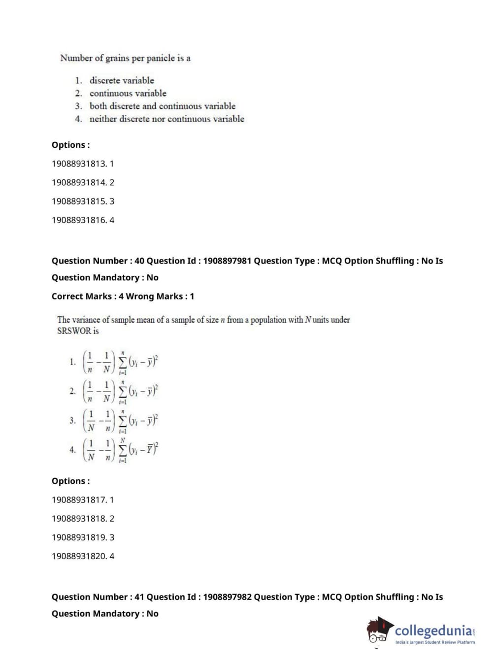| ICAR AIEEA 2021 PG - STATISTICAL SCIENCE Question Paper PDF | ICAR AIEEA 2021 PG - STATISTICAL SCIENCE Answer Key PDF |