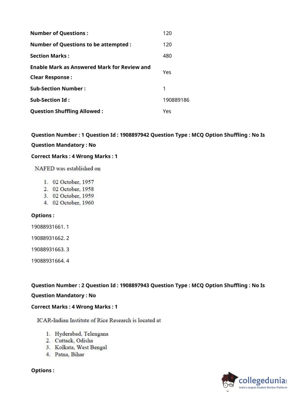 ICAR AIEEA 2021 PG - STATISTICAL SCIENCE Question paper with answer key pdf conducted on September 17, 2021 is available for download. The exam was successfully organized by National Testing Agency (NTA). The question paper comprised a total of 120 questions.