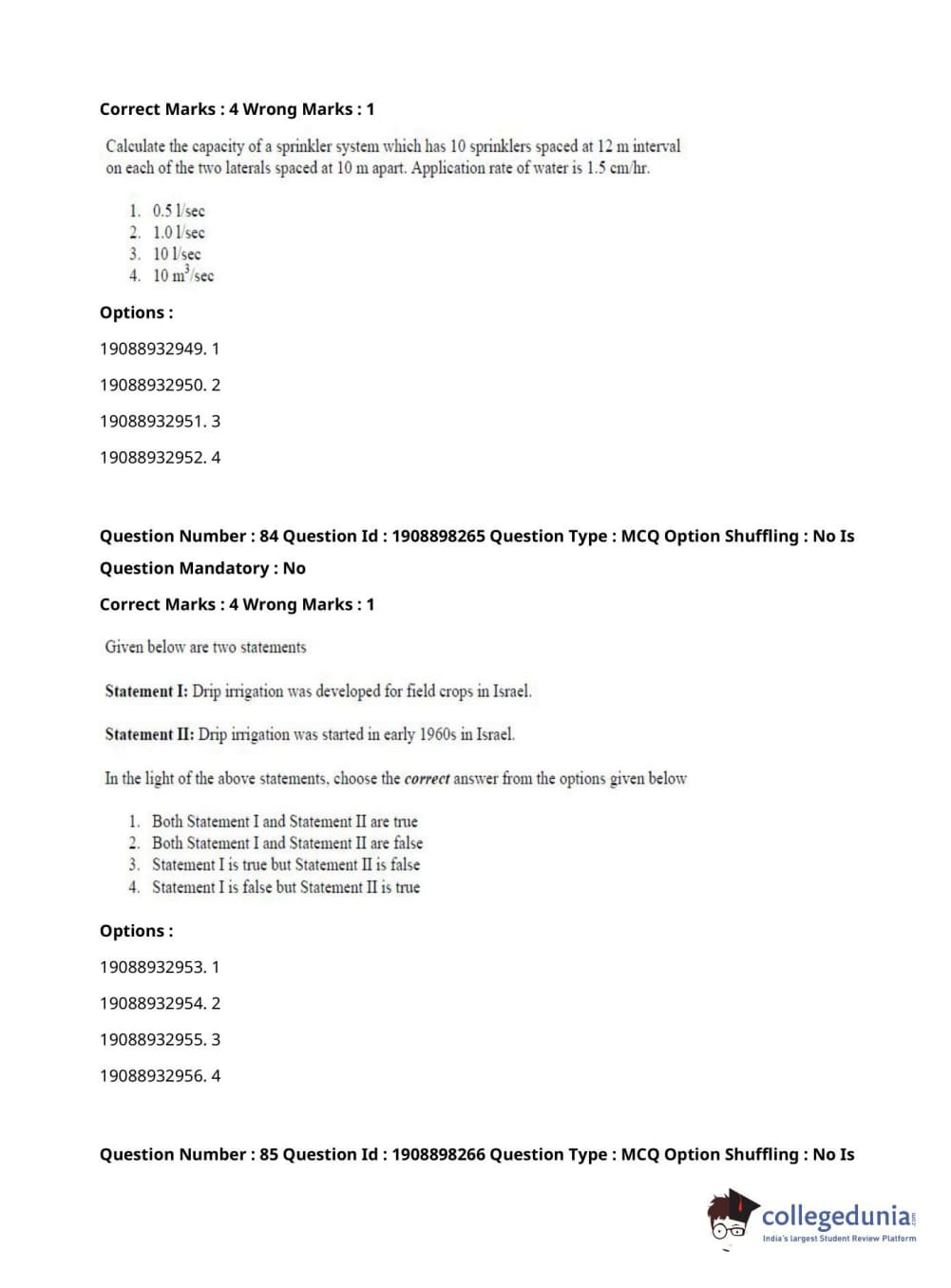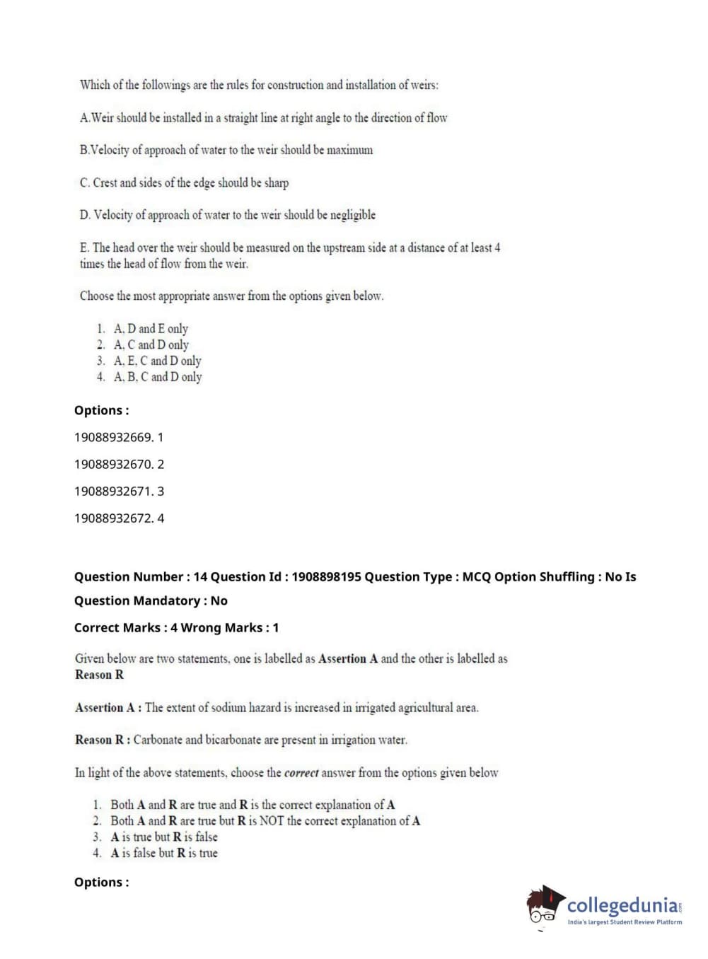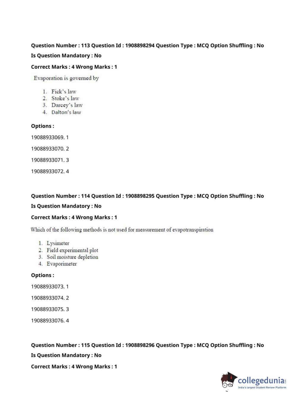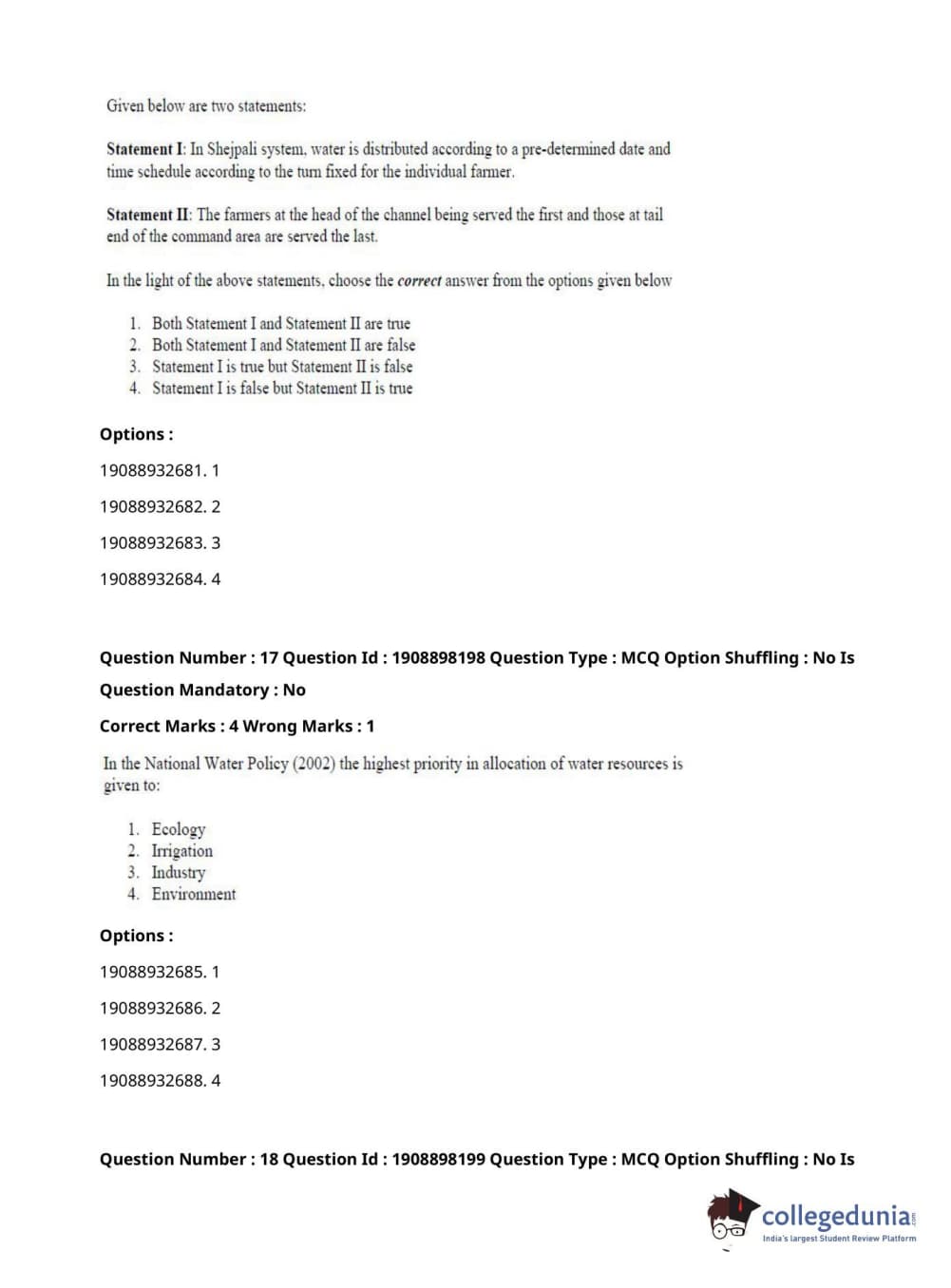 ICAR AIEEA 2021 PG - WATER SCIENCE AND TECHNOLOGY Question Paper with Answer Key PDFs