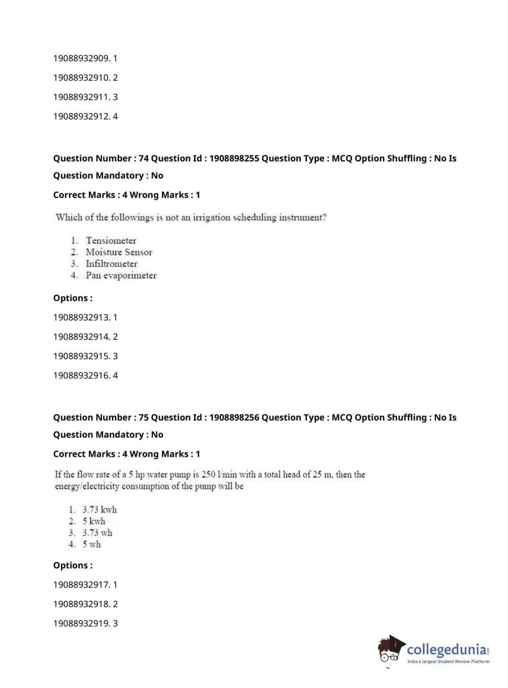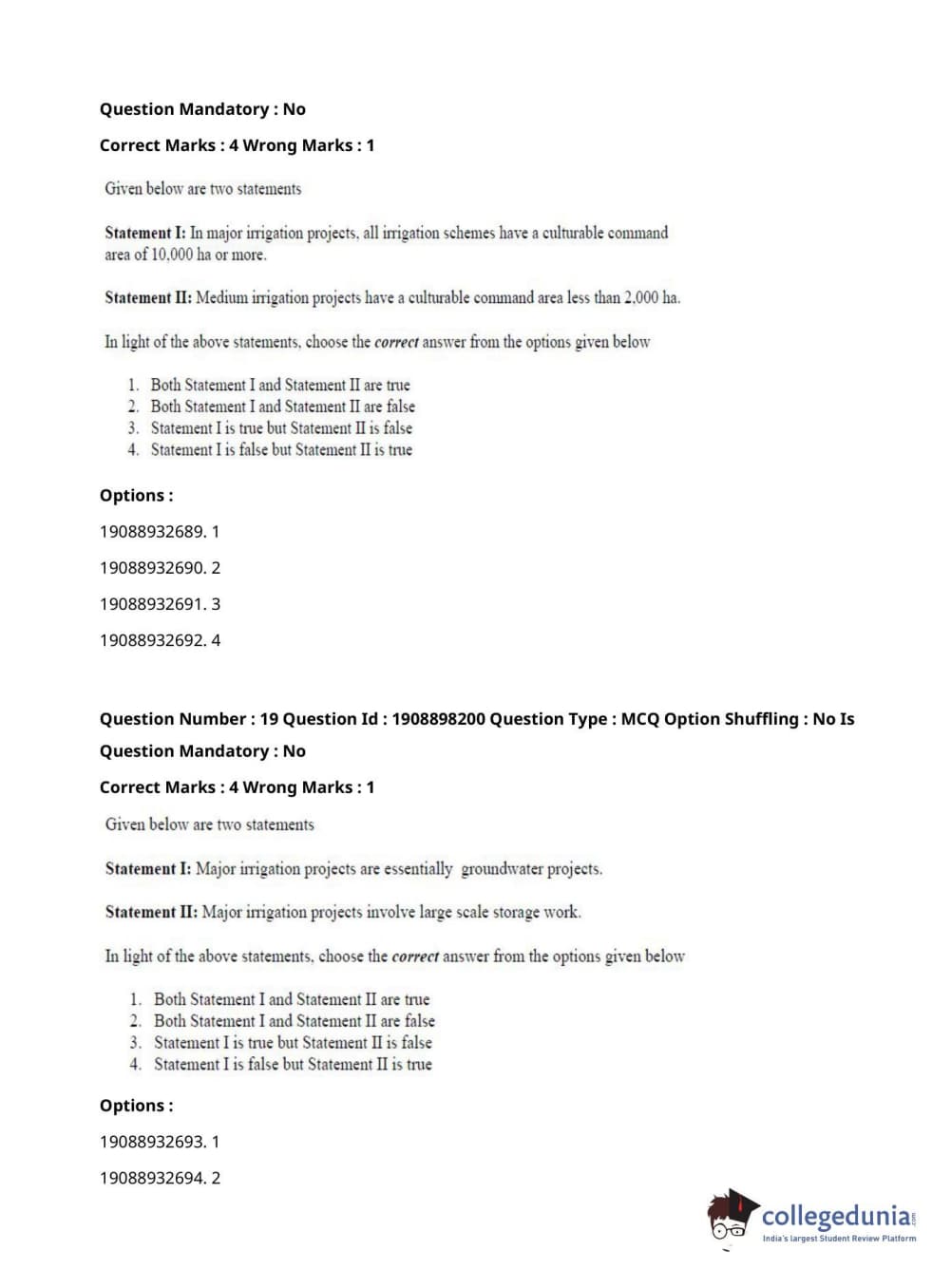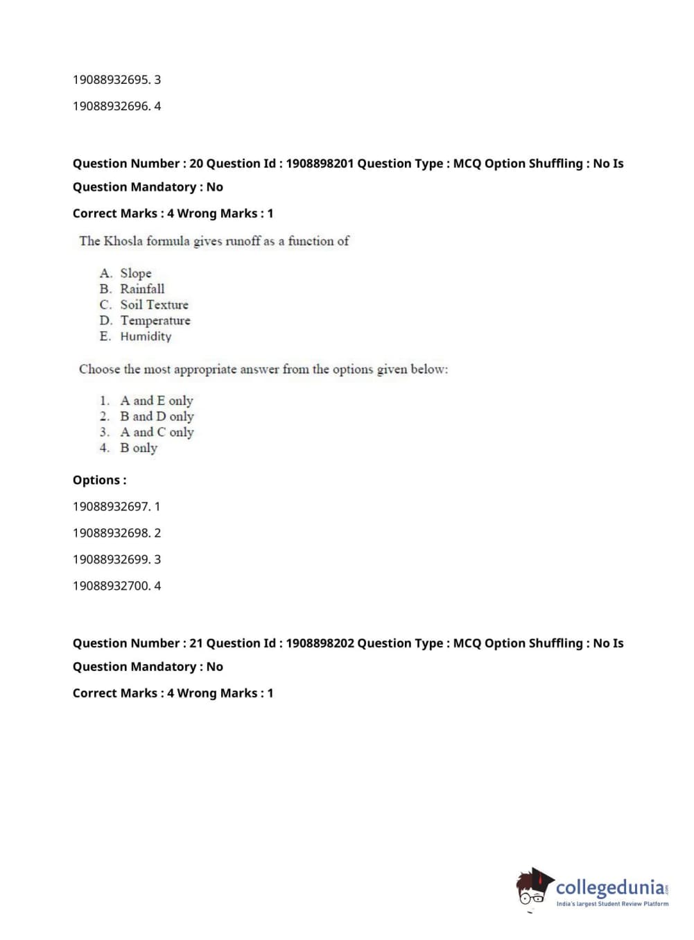 ICAR AIEEA 2021 PG - WATER SCIENCE AND TECHNOLOGY Question Paper with Answer Key PDFs