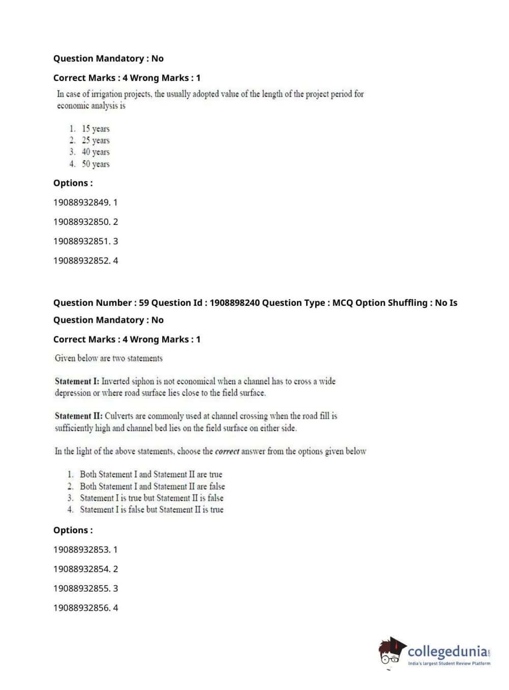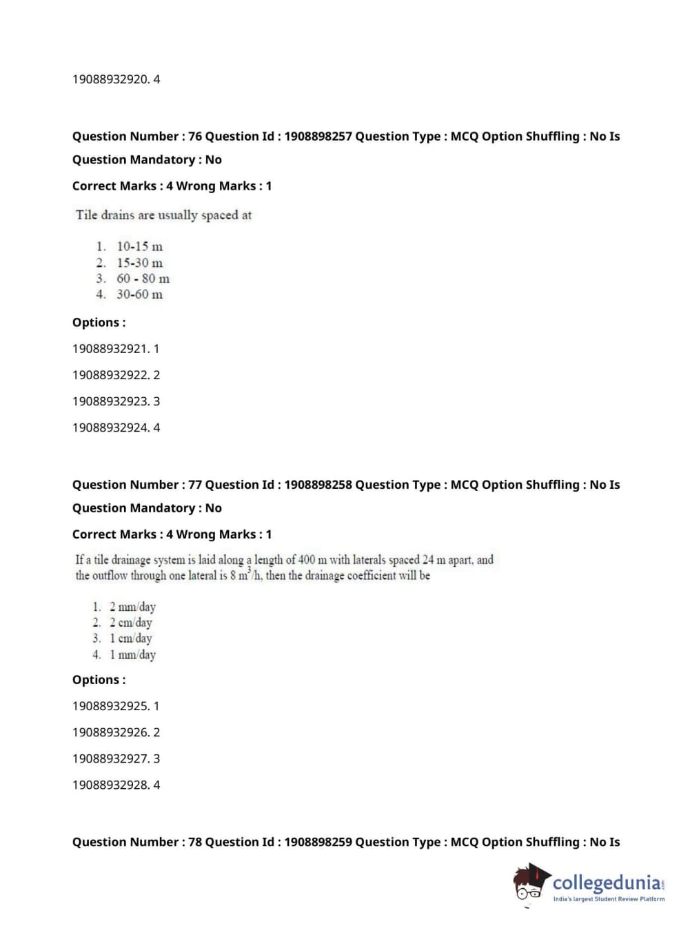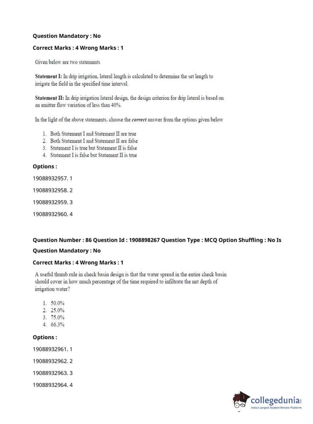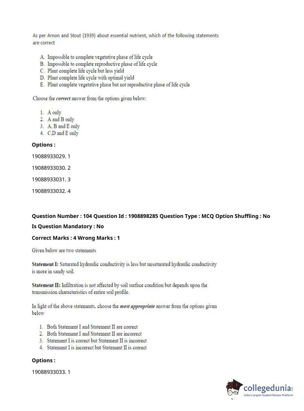 ICAR AIEEA 2021 PG - WATER SCIENCE AND TECHNOLOGY Question Paper with Answer Key PDFs