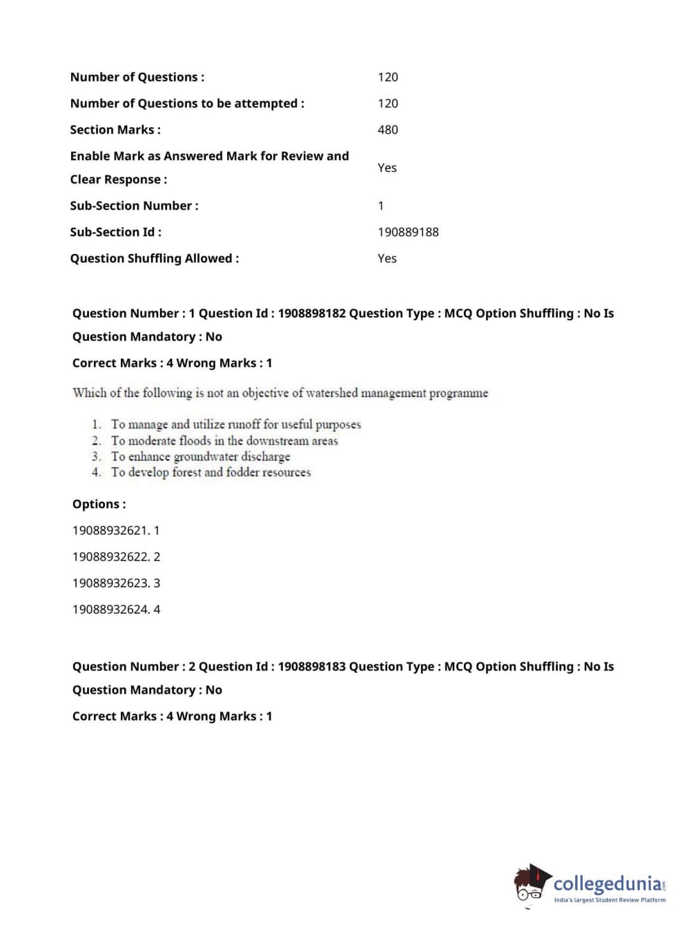 ICAR AIEEA 2021 PG - WATER SCIENCE AND TECHNOLOGY Question paper with answer key pdf conducted on September 17, 2021 is available for download. The exam was successfully organized by National Testing Agency (NTA). The question paper comprised a total of 120 questions.