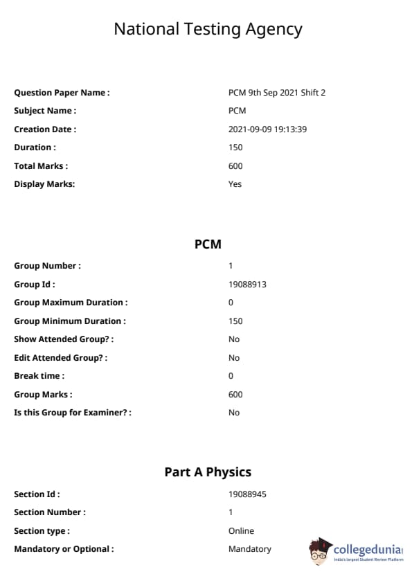 ICAR AIEEA 2021 UG - PCM Question paper with answer key pdf conducted on September 9, 2021 is available for download. The exam was successfully organized by National Testing Agency (NTA). In terms of difficulty level, ICAR AIEEA was of Moderate level. The question paper comprised a total of 150 questions divided among three sections.