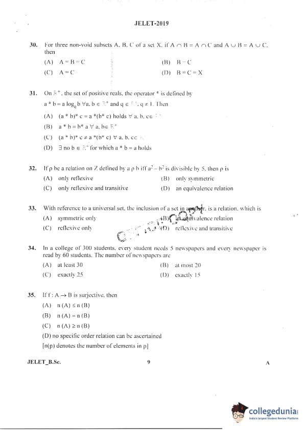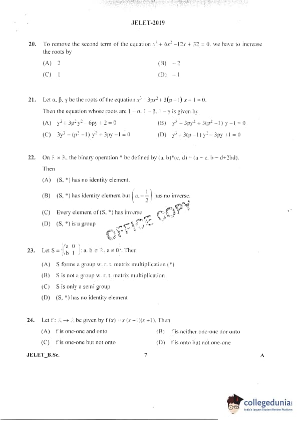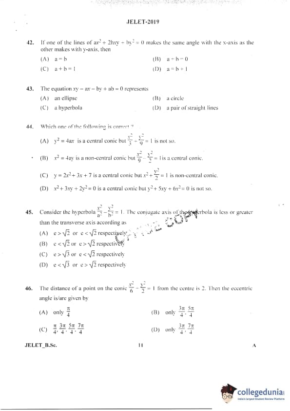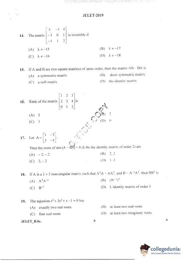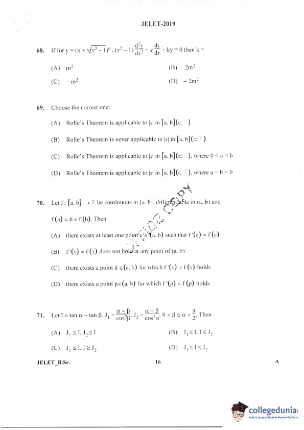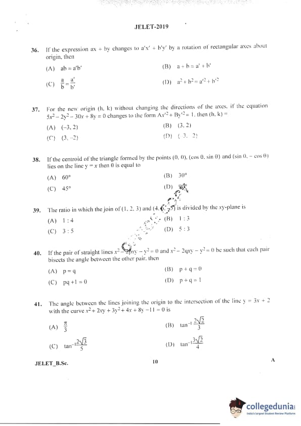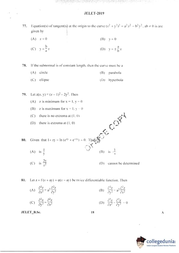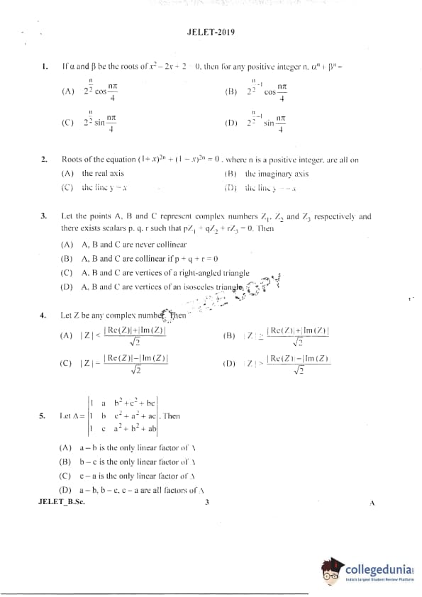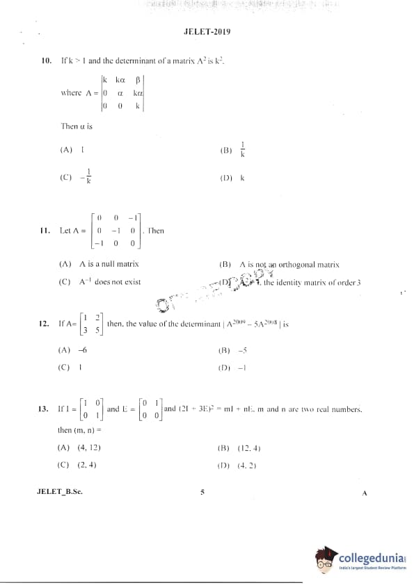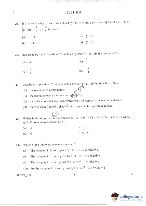 JELET 2019 BSc Question Paper with Answer Key PDFs