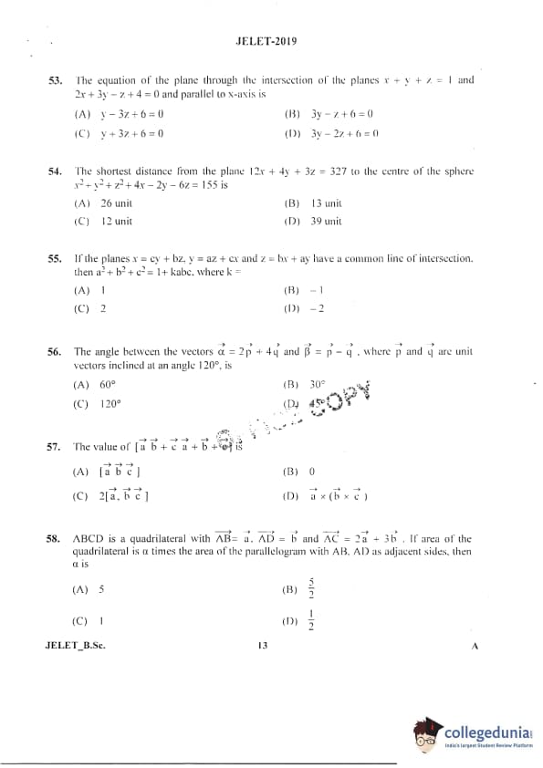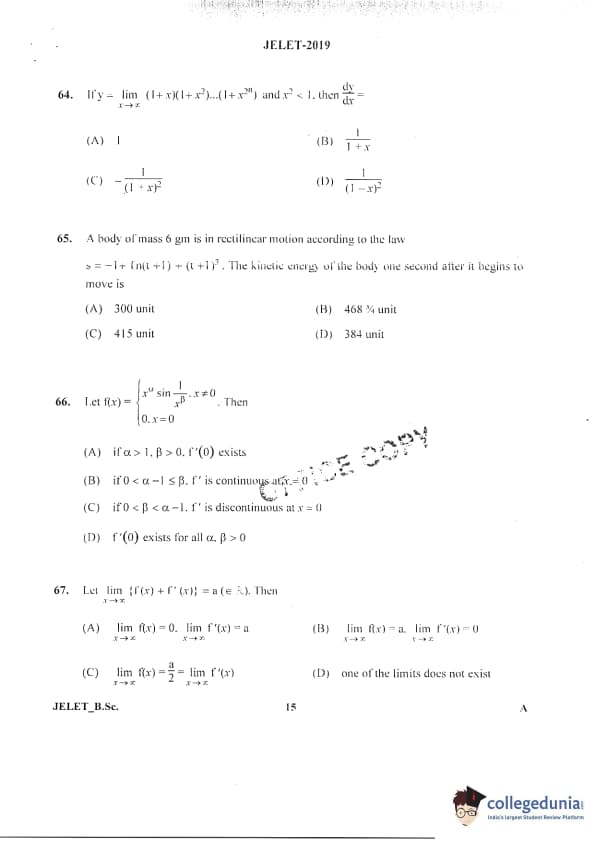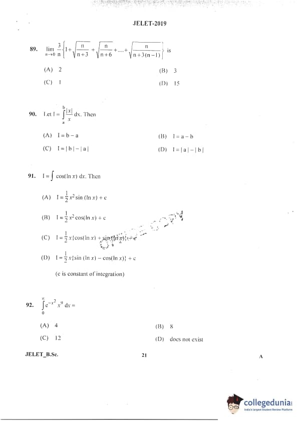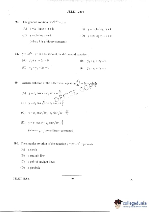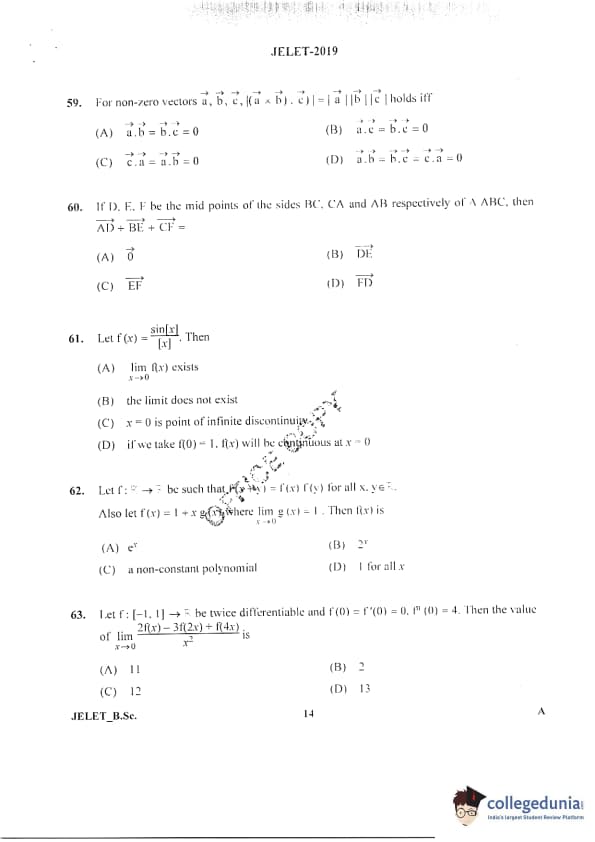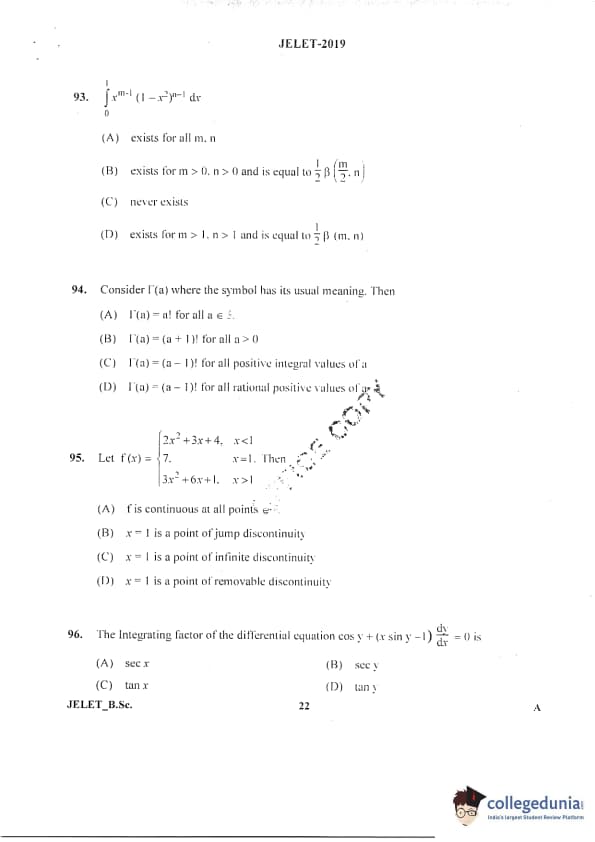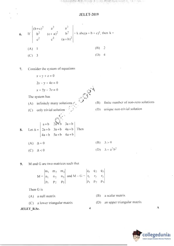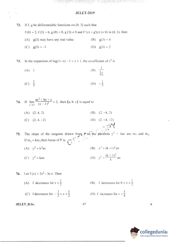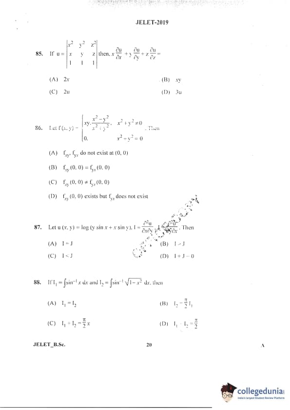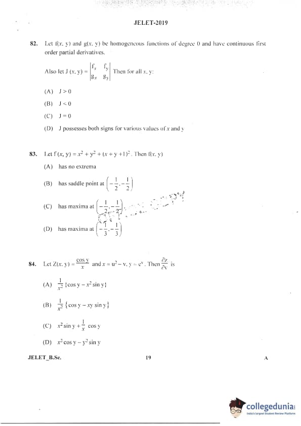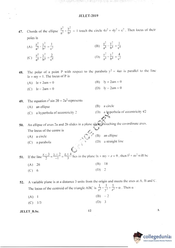 JELET 2019 BSc Question Paper with Answer Key PDFs