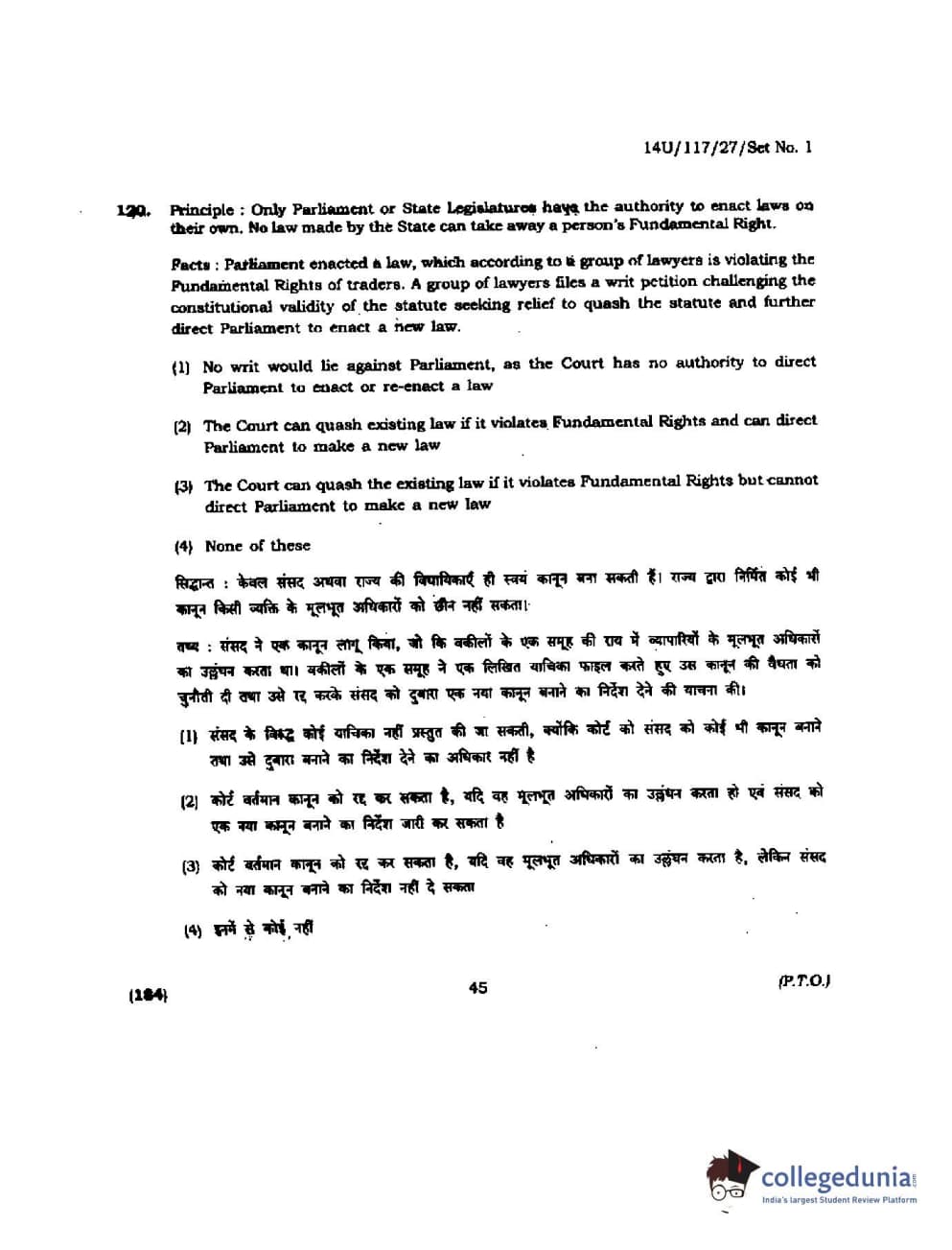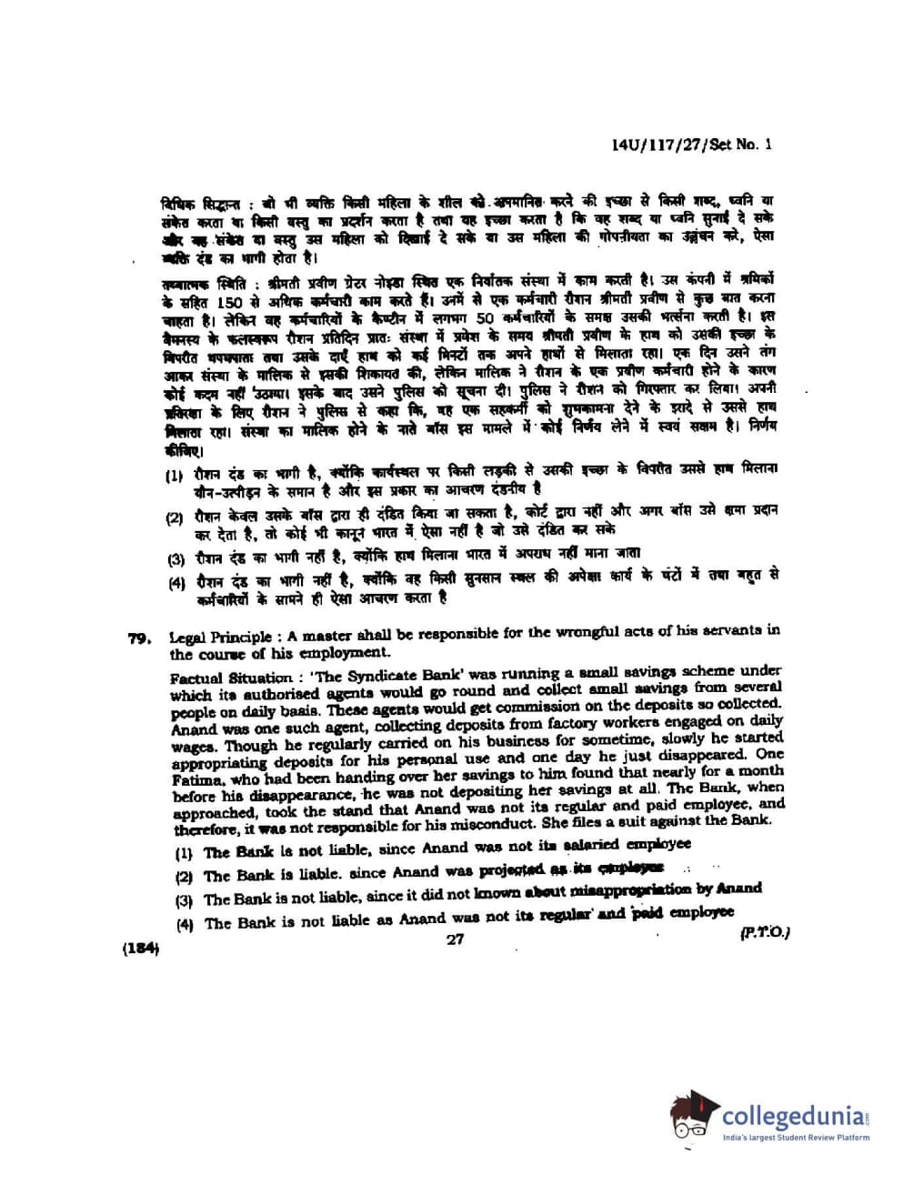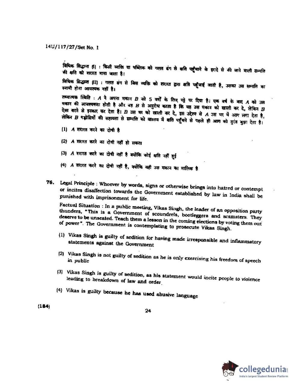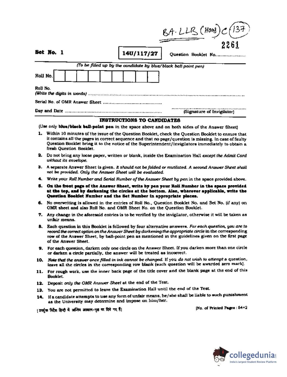 BHU UET 2014 B.A. LLB (Set-1) Question paper with answer key pdf is available for download. The exam was successfully organized by Banaras Hindu University (BHU). The question paper comprised a total of 150 questions.