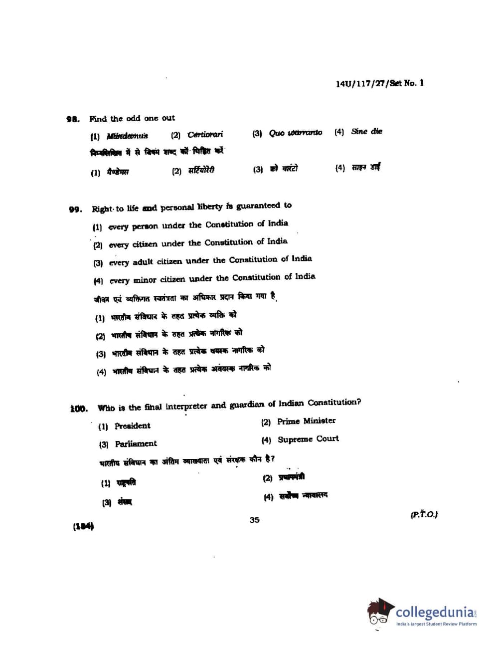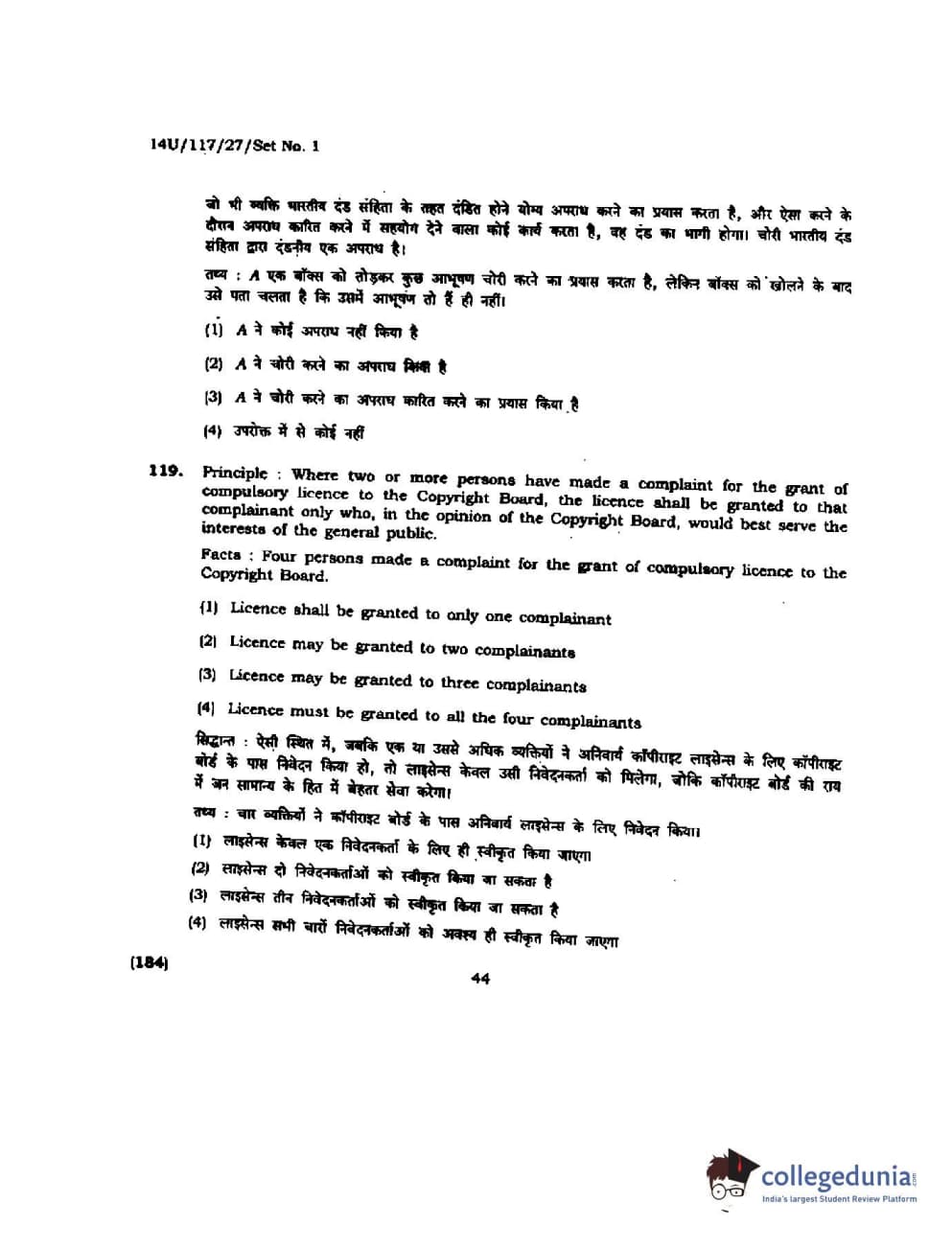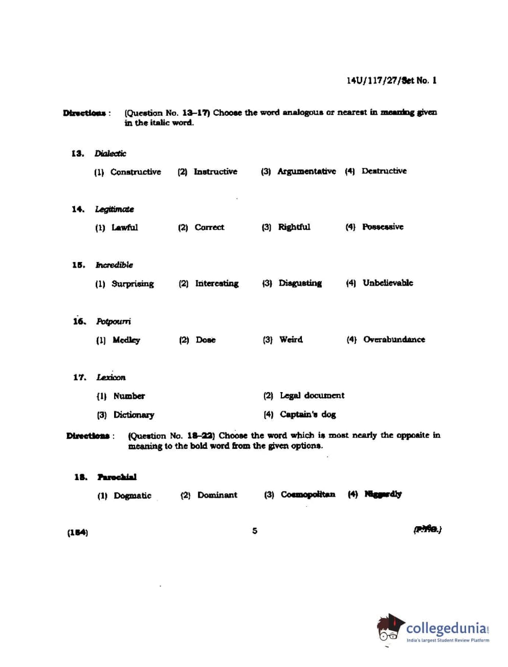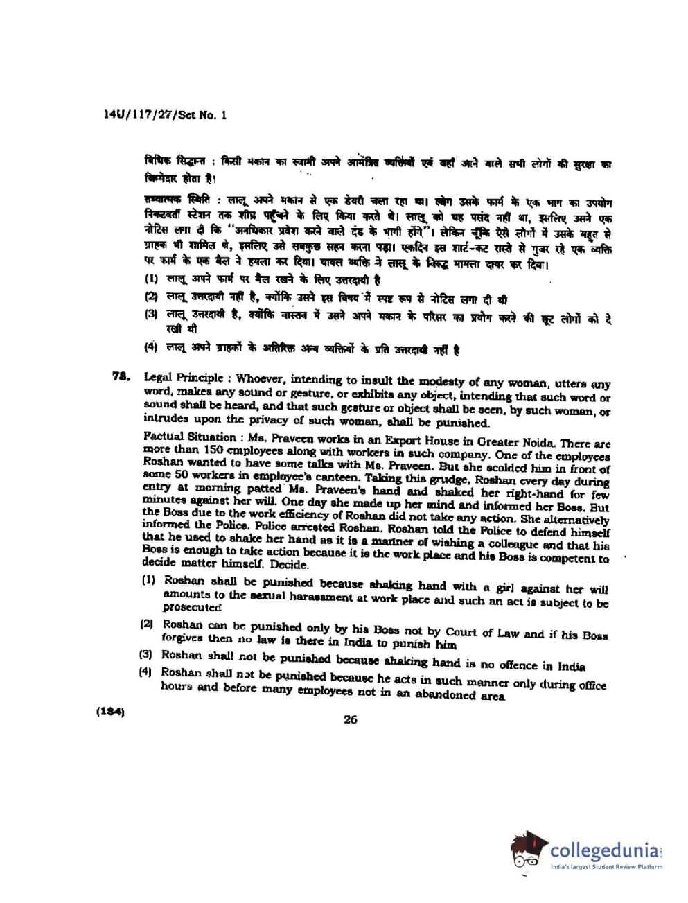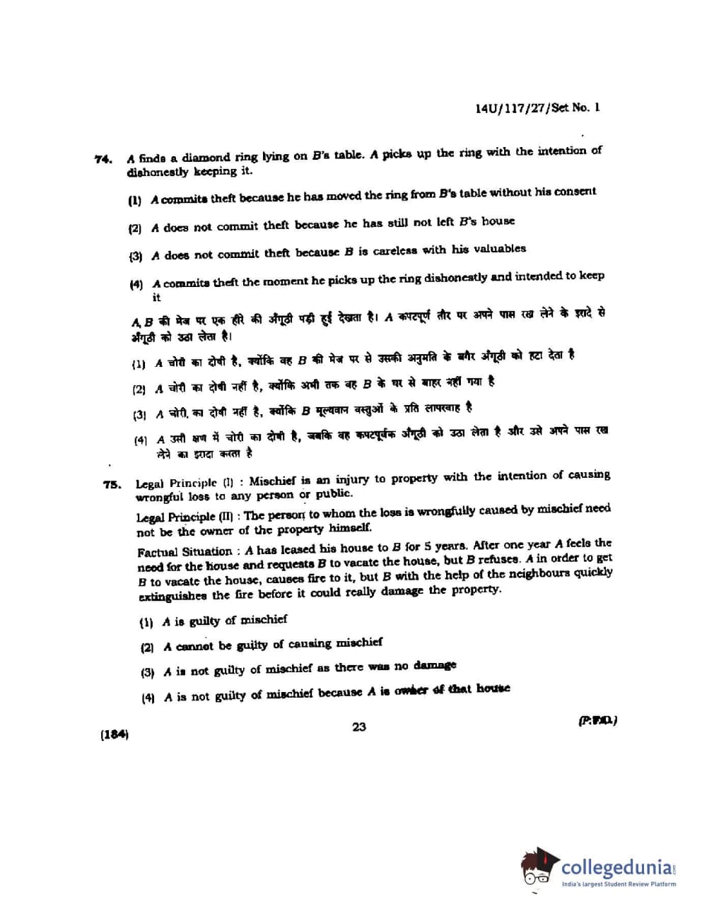 BHU UET 2014 B.A. LLB (Set-1) Question paper with answer key pdf is available for download. The exam was successfully organized by Banaras Hindu University (BHU). The question paper comprised a total of 150 questions.
