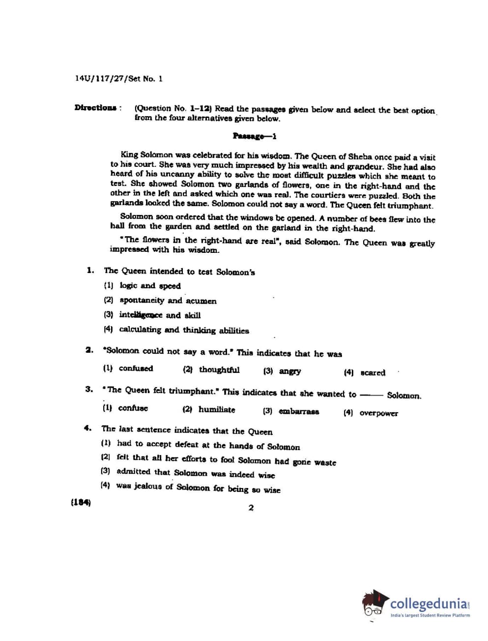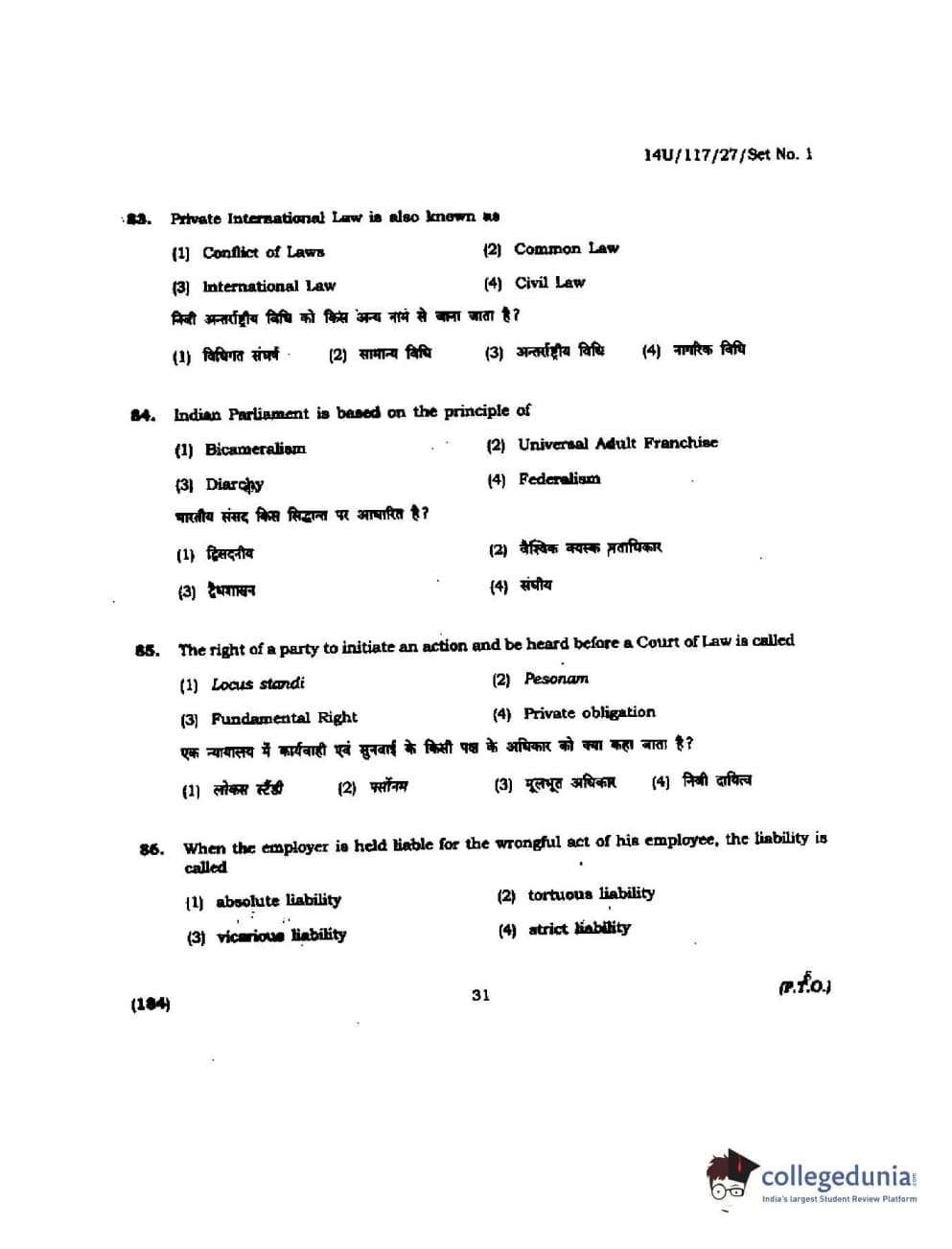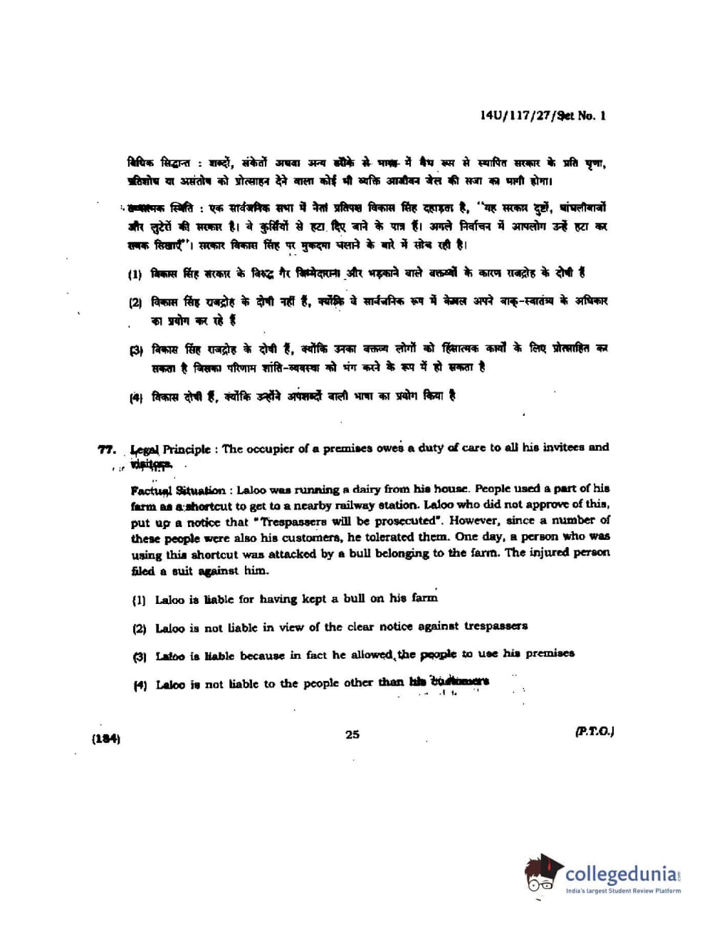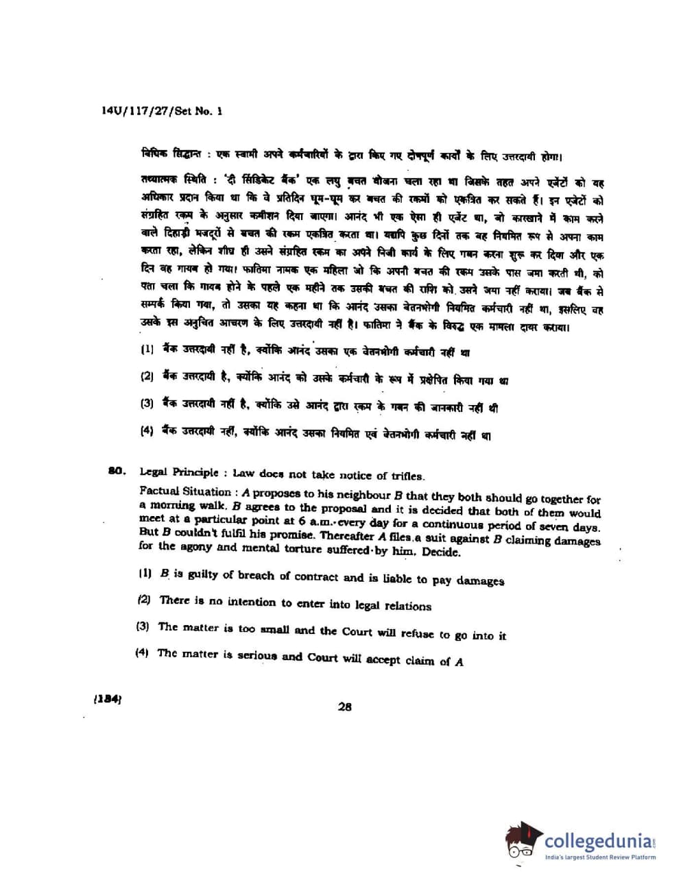 BHU UET 2014 B.A. LLB (Set-1) Question paper with answer key pdf is available for download. The exam was successfully organized by Banaras Hindu University (BHU). The question paper comprised a total of 150 questions.
