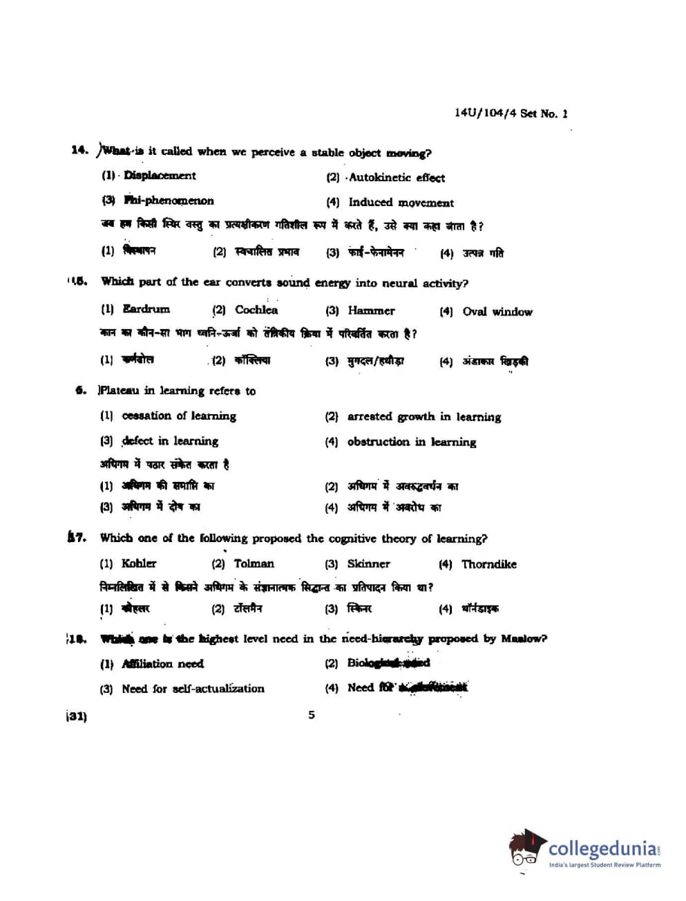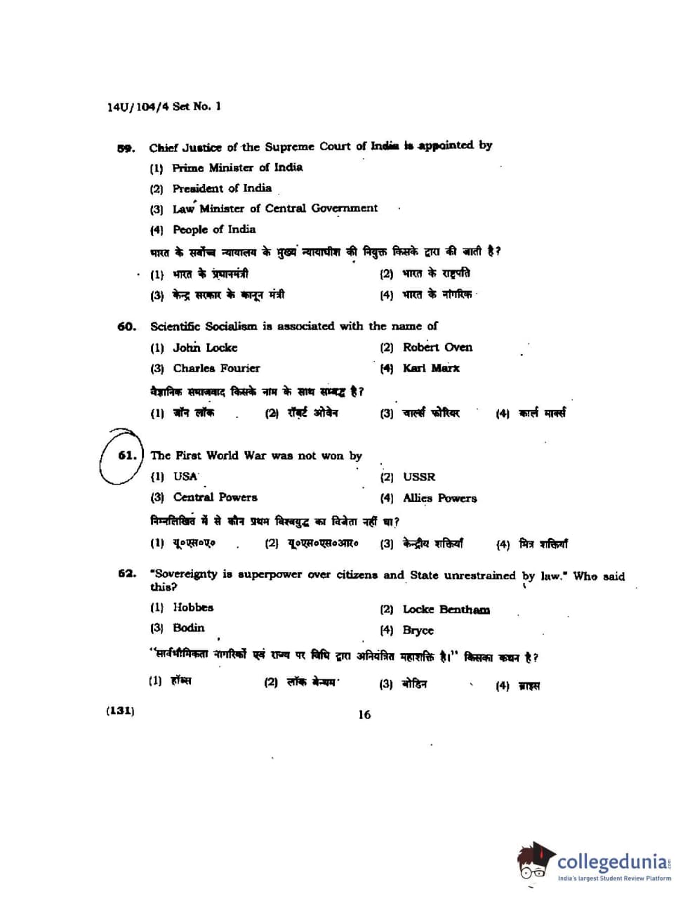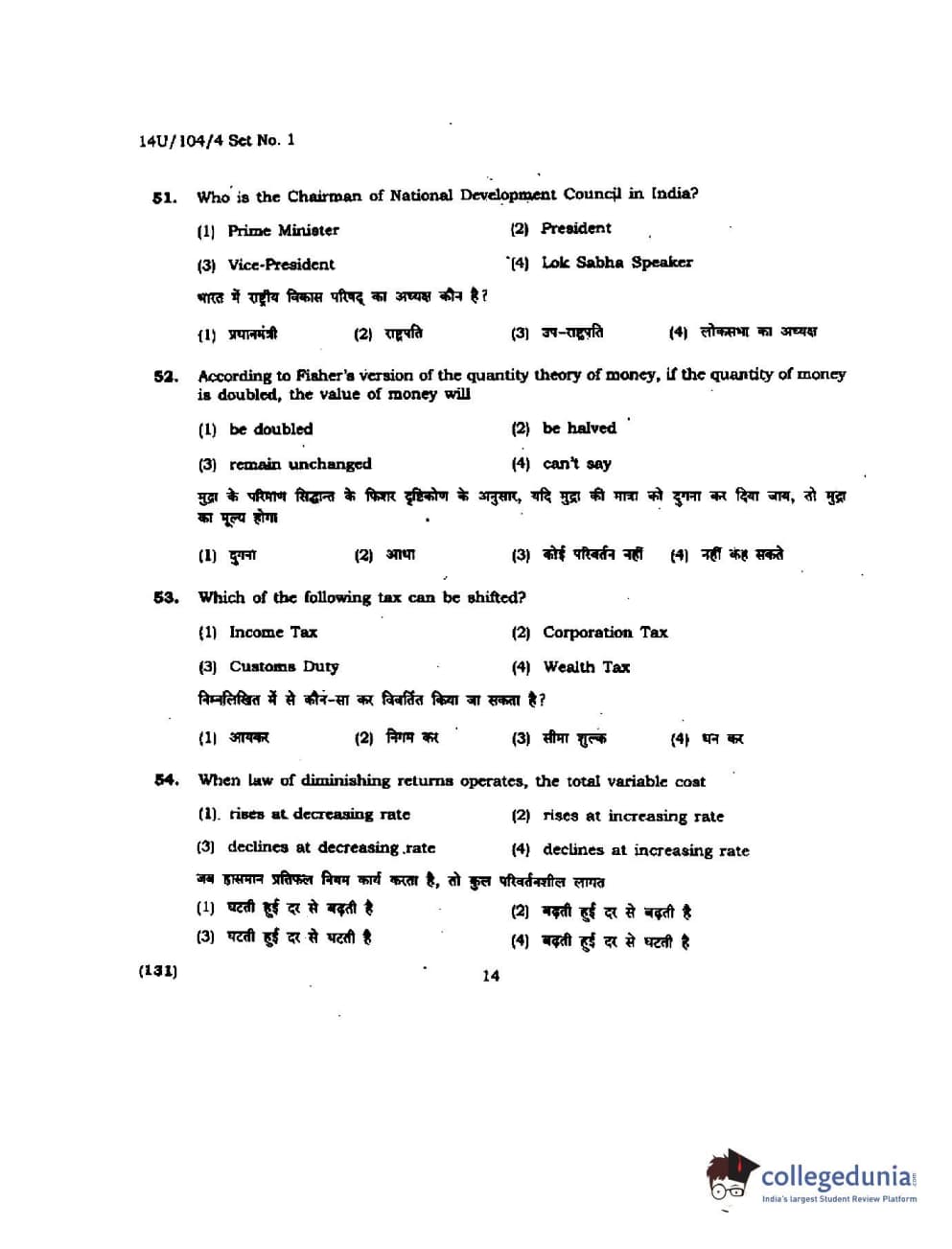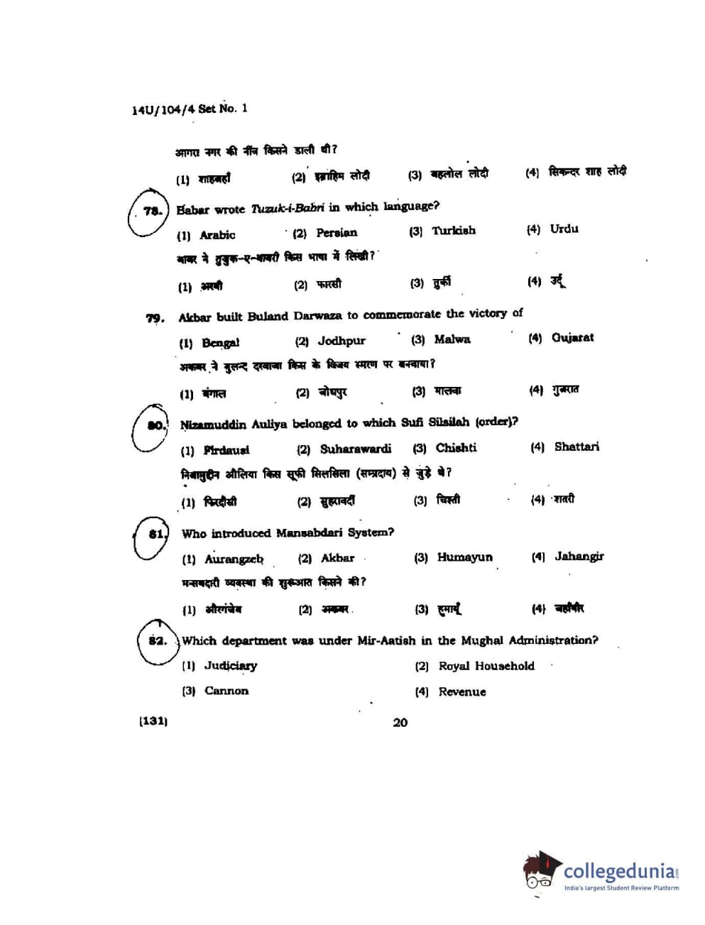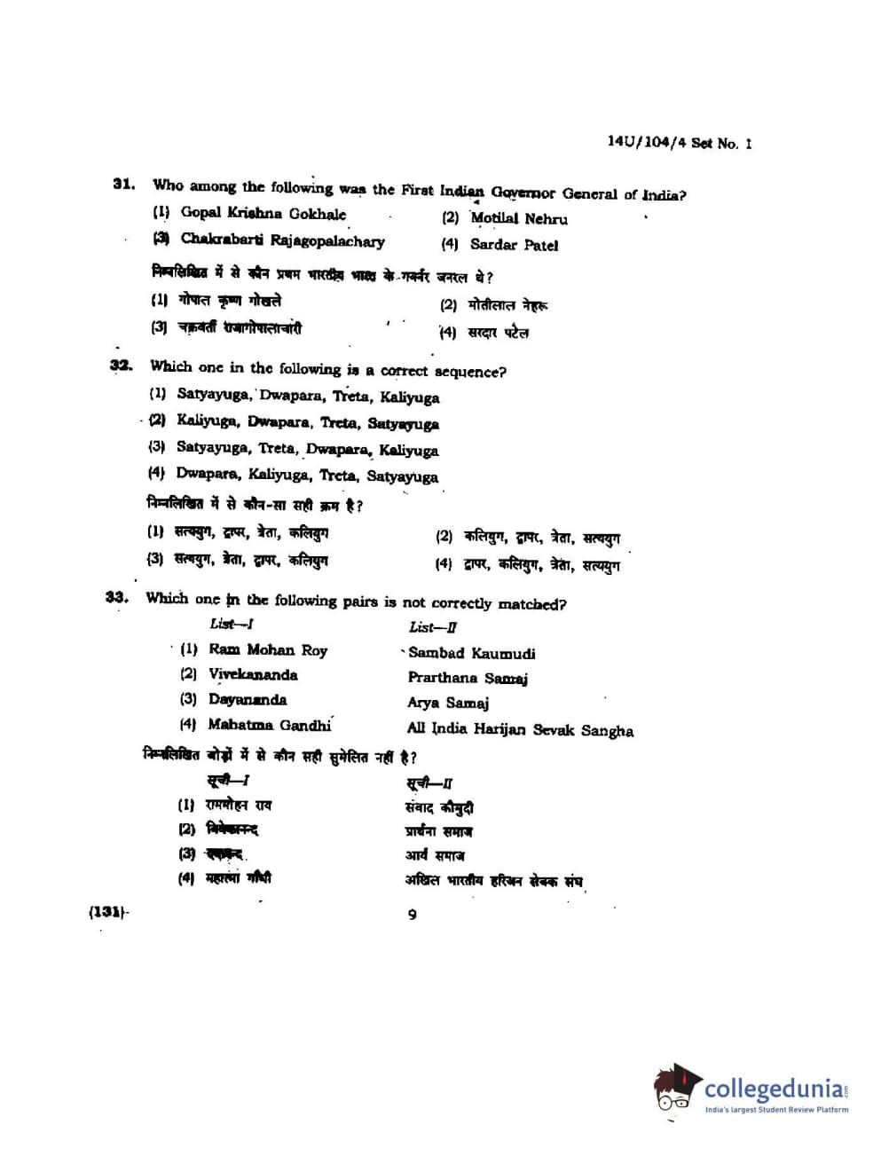 BHU UET 2014 B.A. Social Science Question Paper with Answer Key PDFs