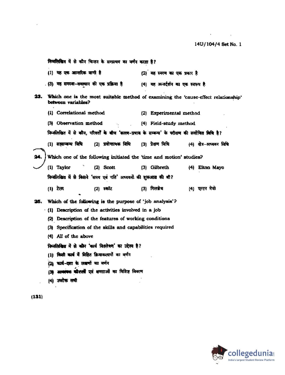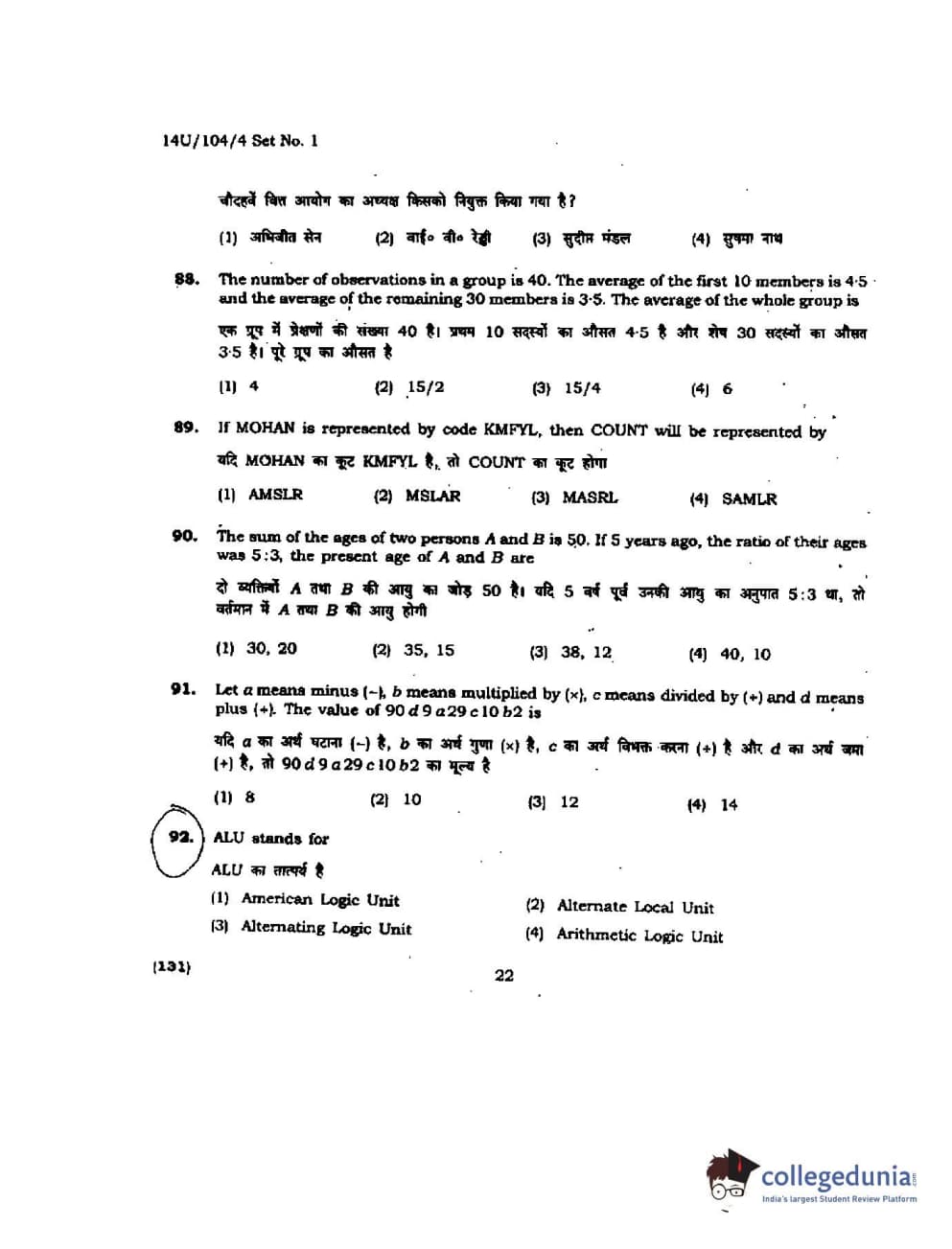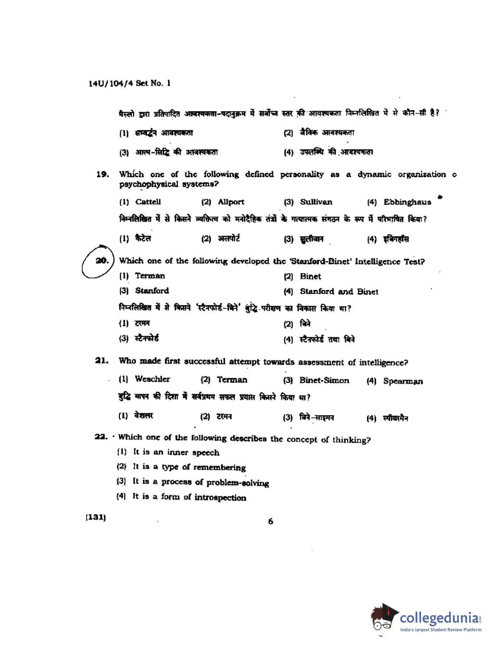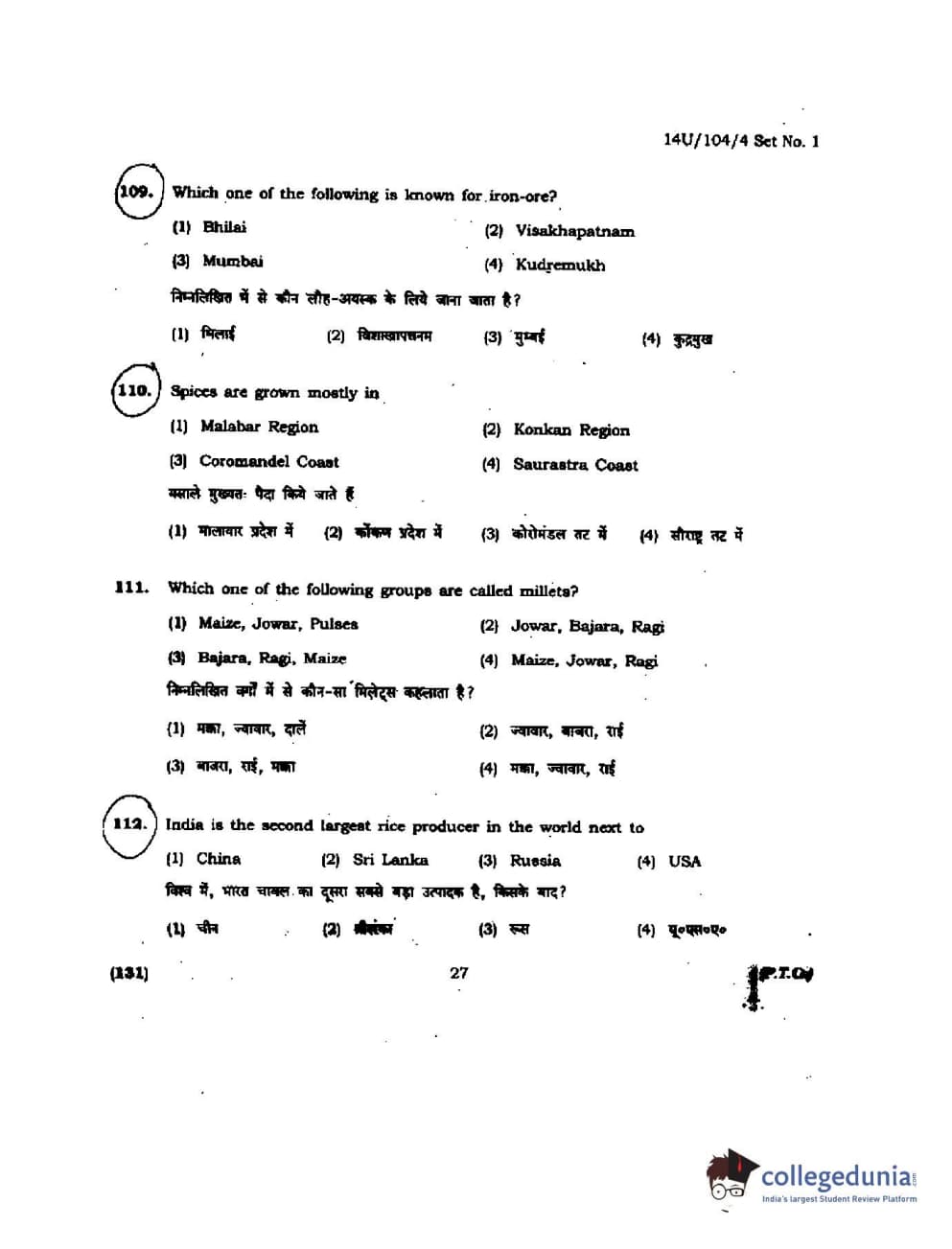 BHU UET 2014 B.A. Social Science Question Paper with Answer Key PDFs