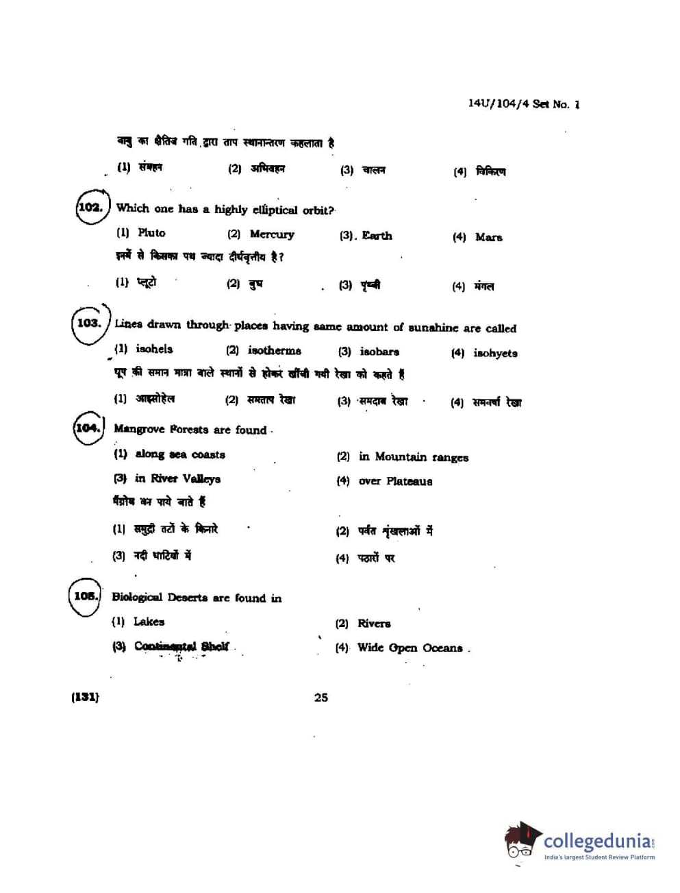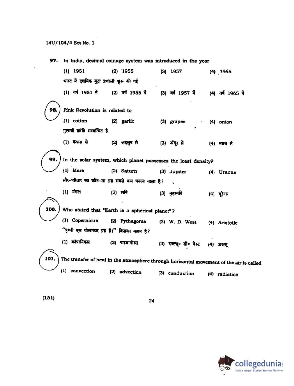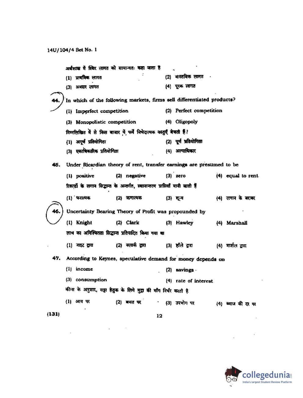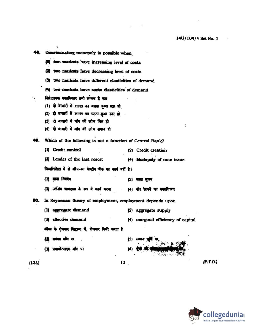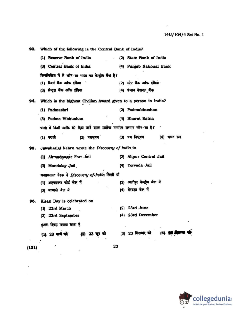 BHU UET 2014 B.A. Social Science Question Paper with Answer Key PDFs