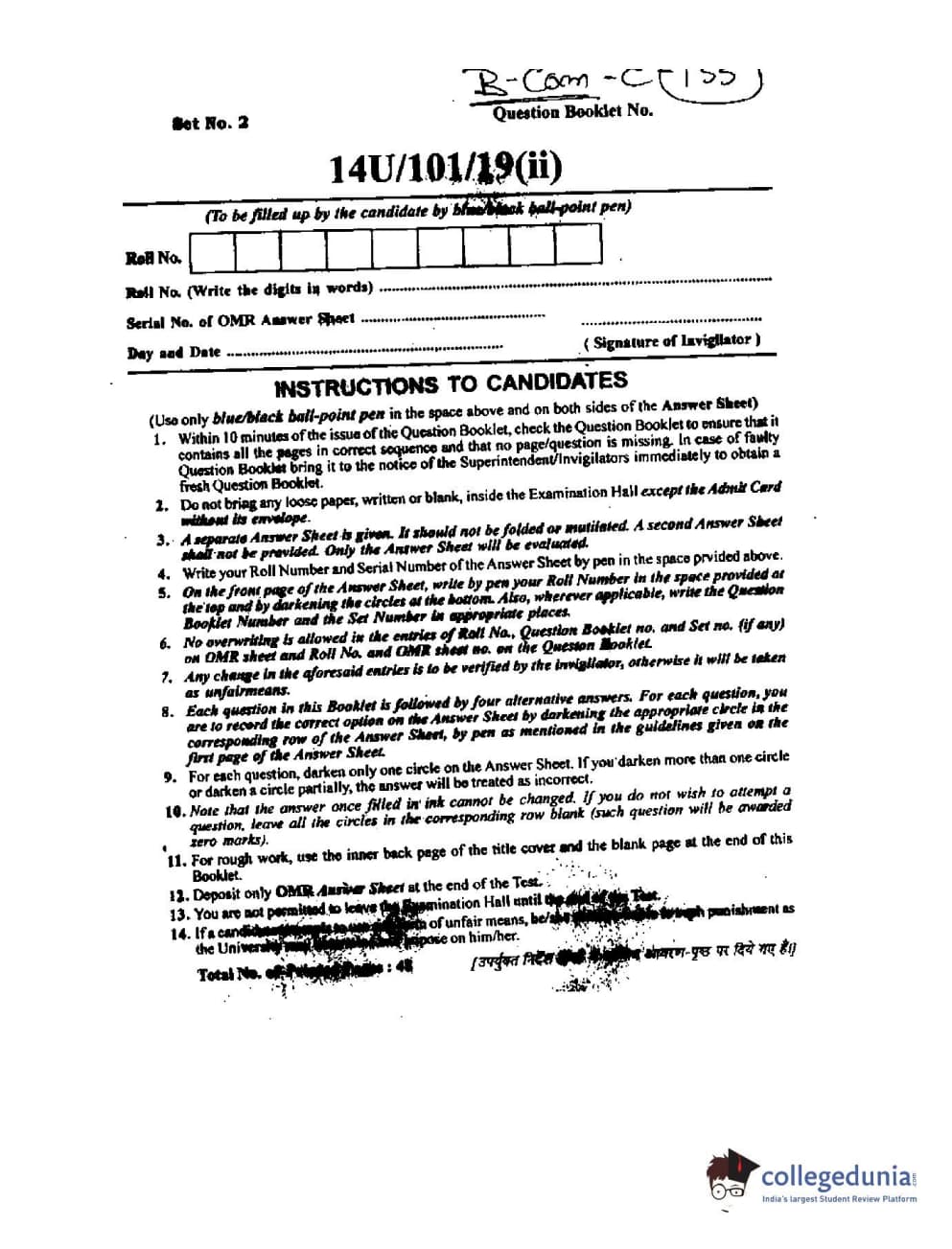 BHU UET 2014 B.Com (Set-2) Question paper with answer key pdf is available for download. The exam was successfully organized by Banaras Hindu University (BHU). The question paper comprised a total of 180 questions.