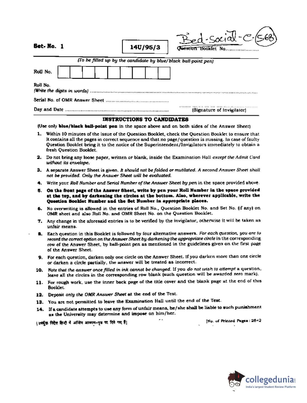 BHU UET 2014 B.Ed Humanities and Social Science Set-1 Question paper with answer key pdf is available for download. The exam was successfully organized by Banaras Hindu University (BHU). The question paper comprised a total of 180 questions.