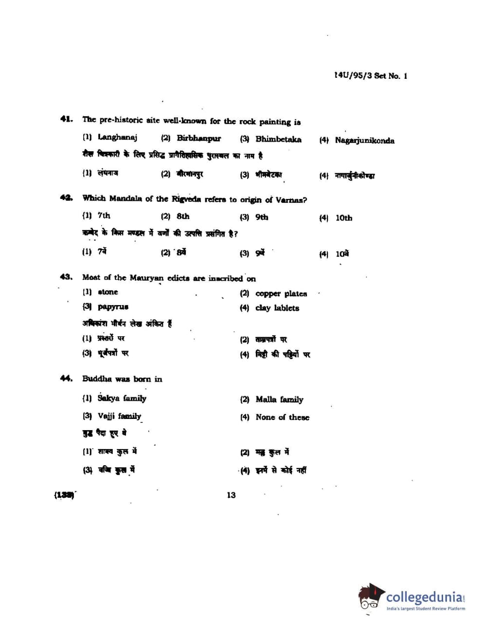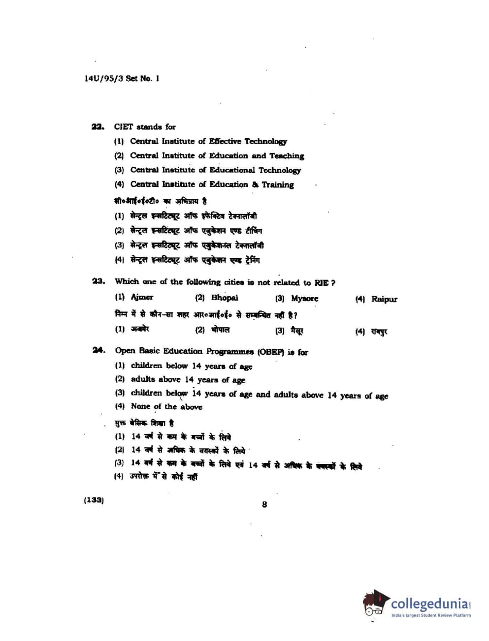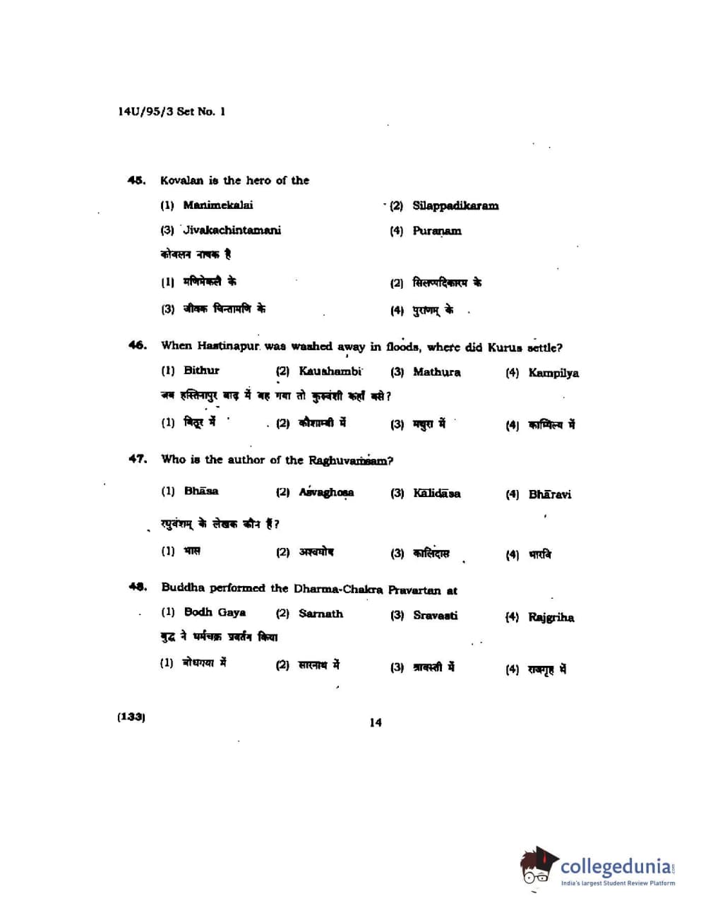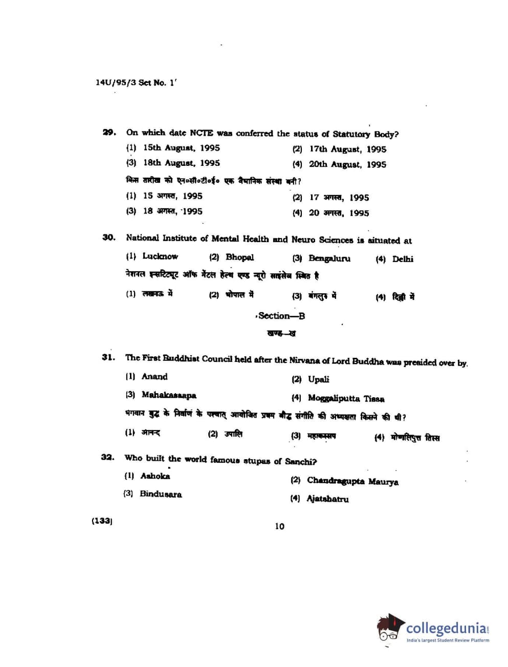 BHU UET 2014 B.Ed Humanities and Social Science Set-1 Question Paper with Answer Key PDFs