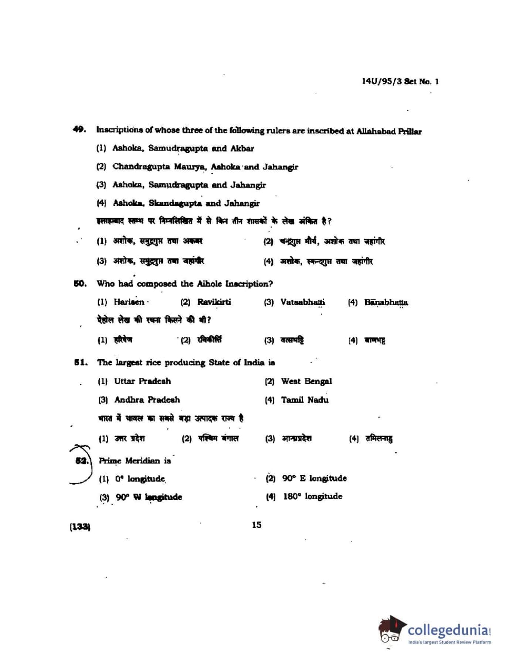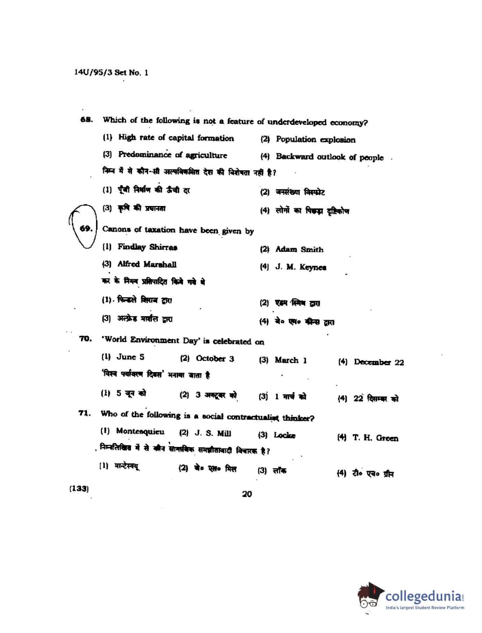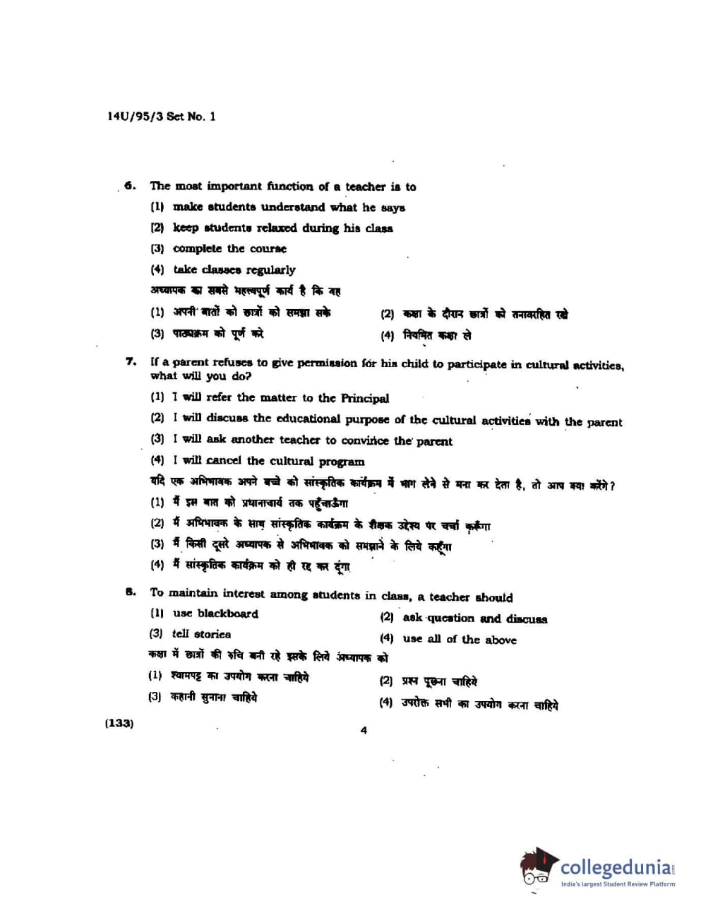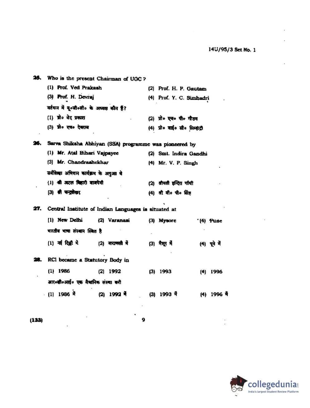 BHU UET 2014 B.Ed Humanities and Social Science Set-1 Question Paper with Answer Key PDFs