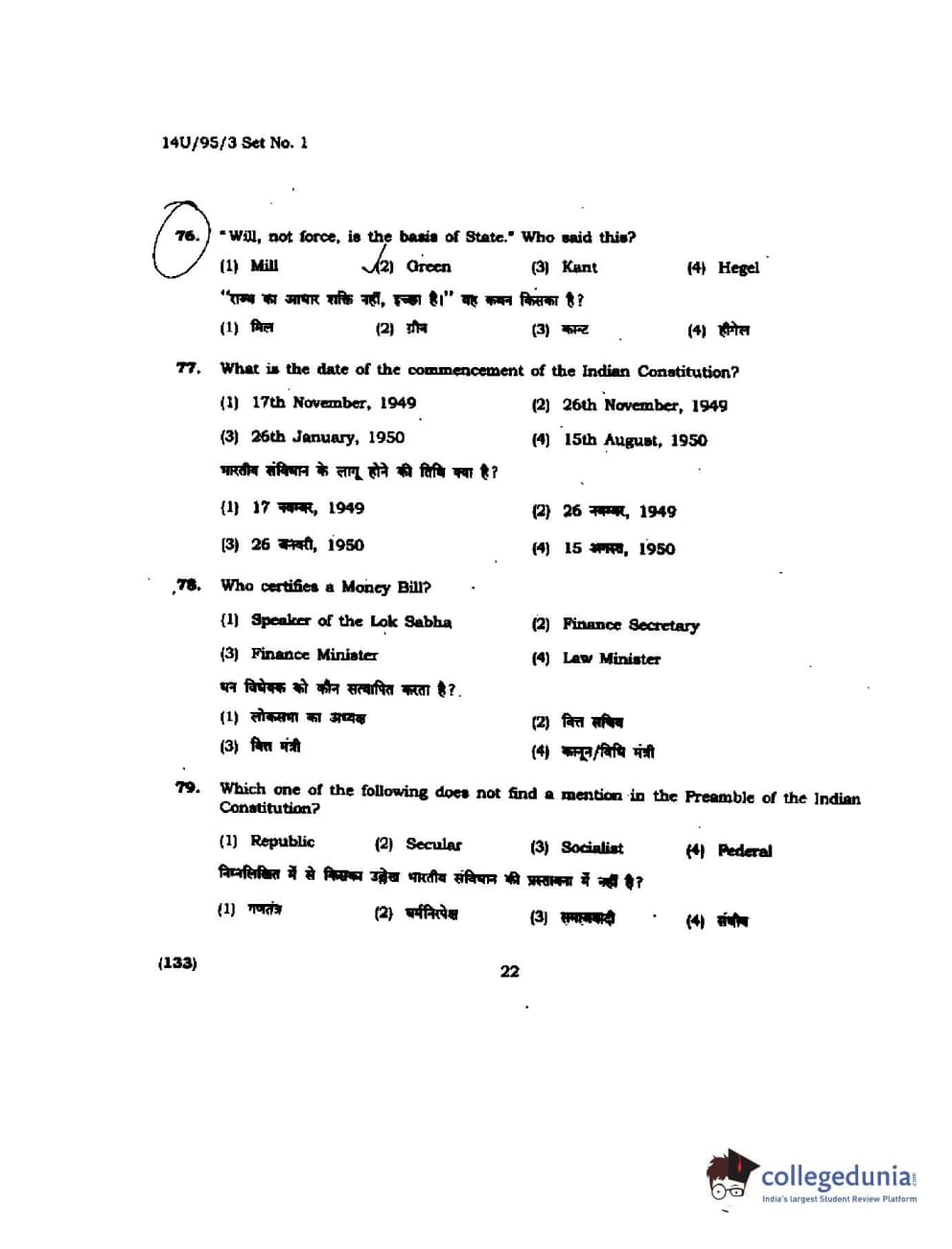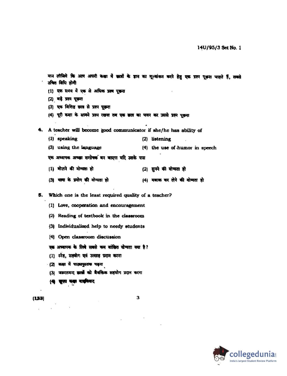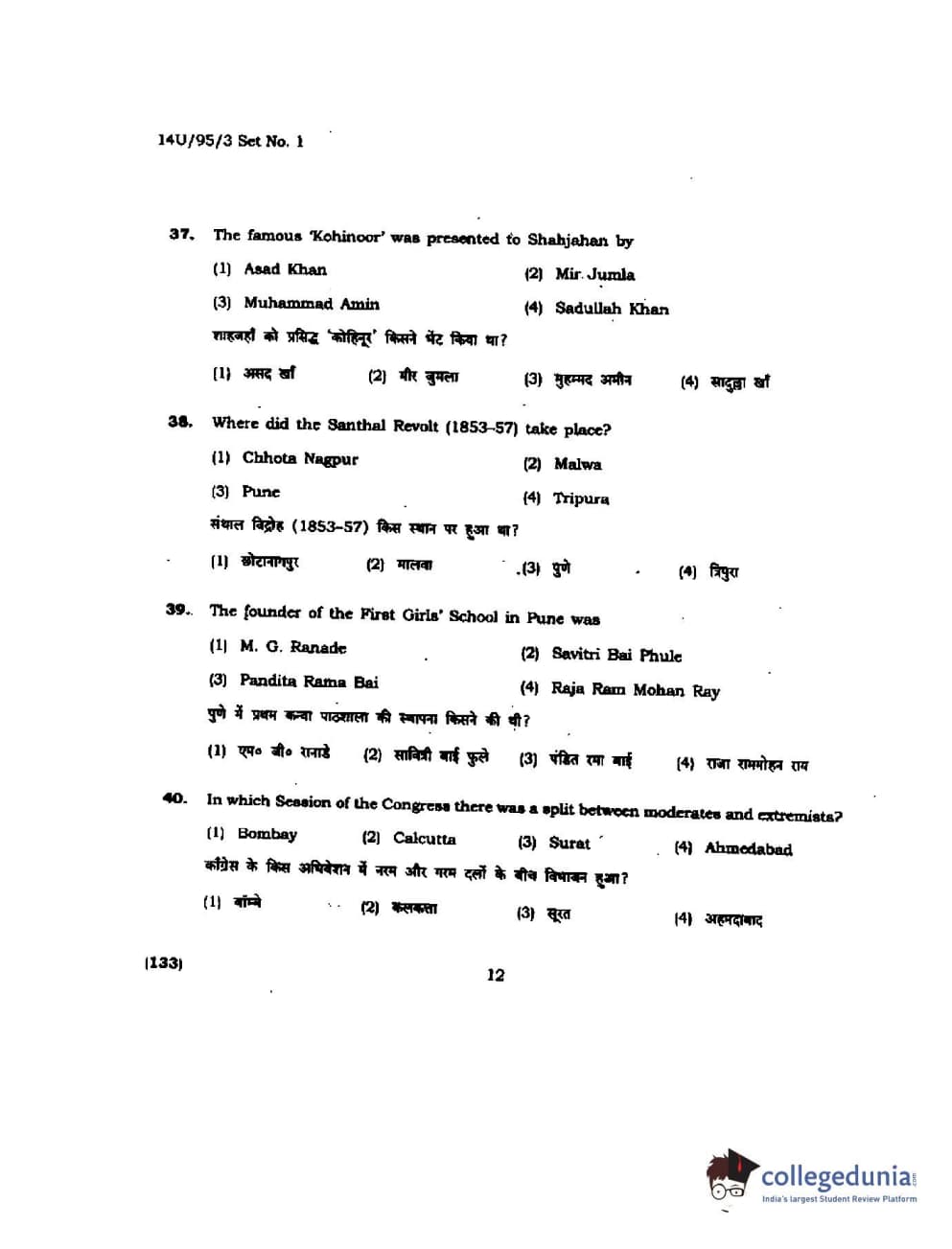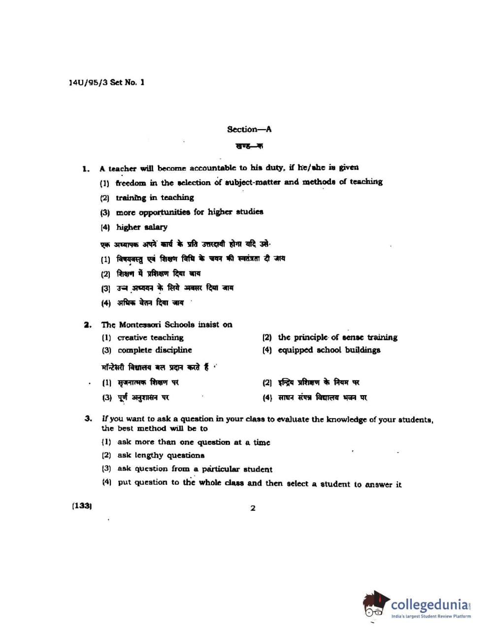 BHU UET 2014 B.Ed Humanities and Social Science Set-1 Question Paper with Answer Key PDFs