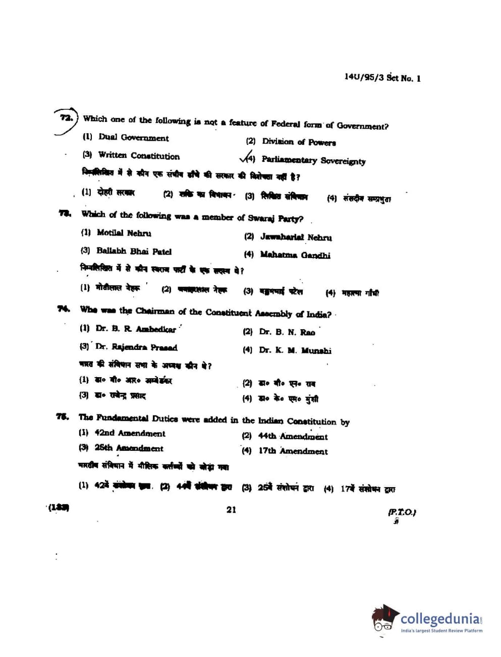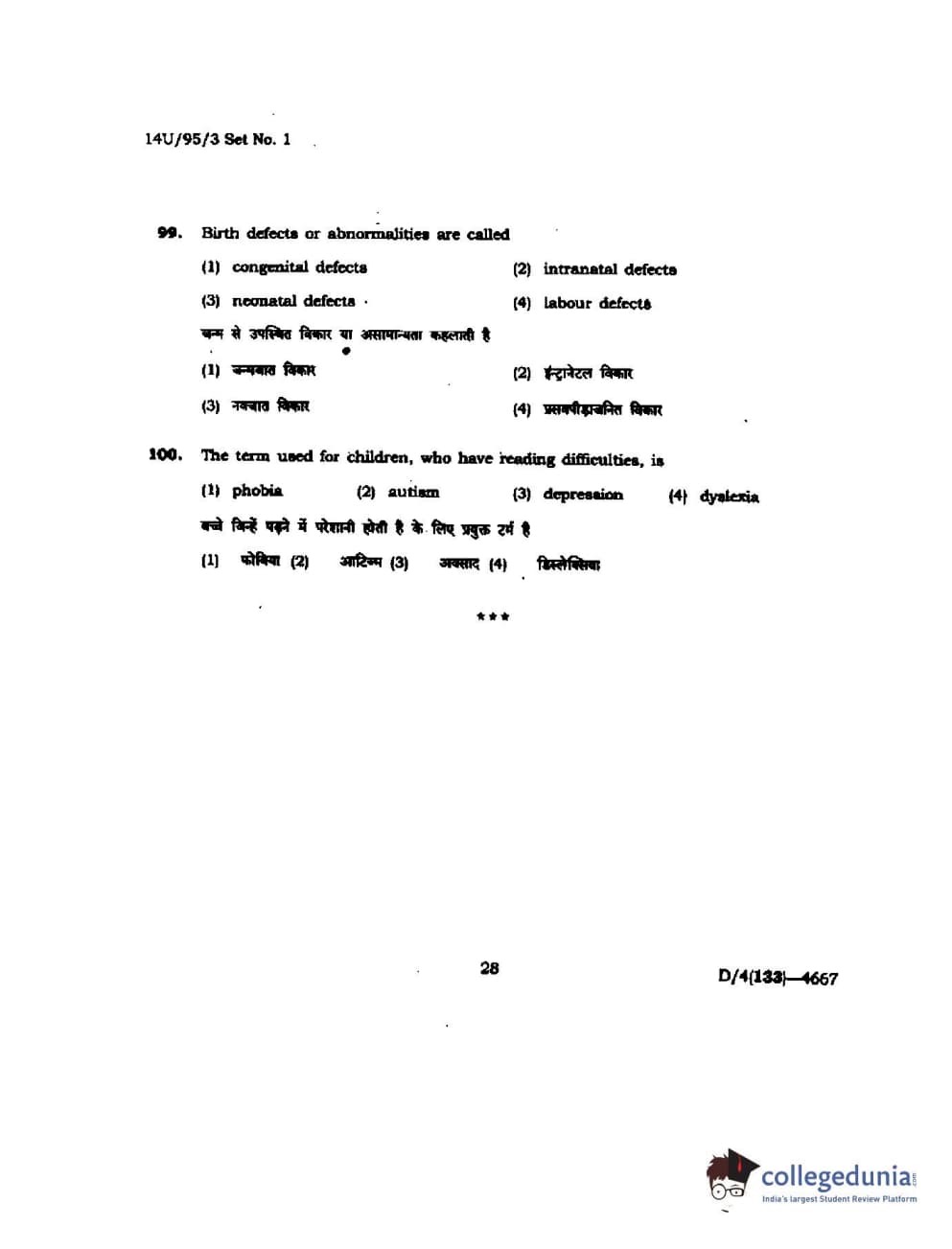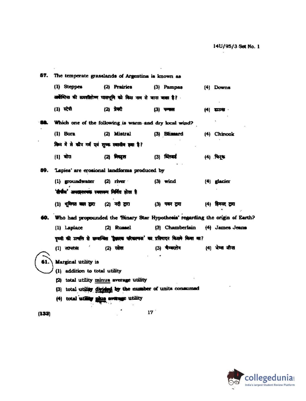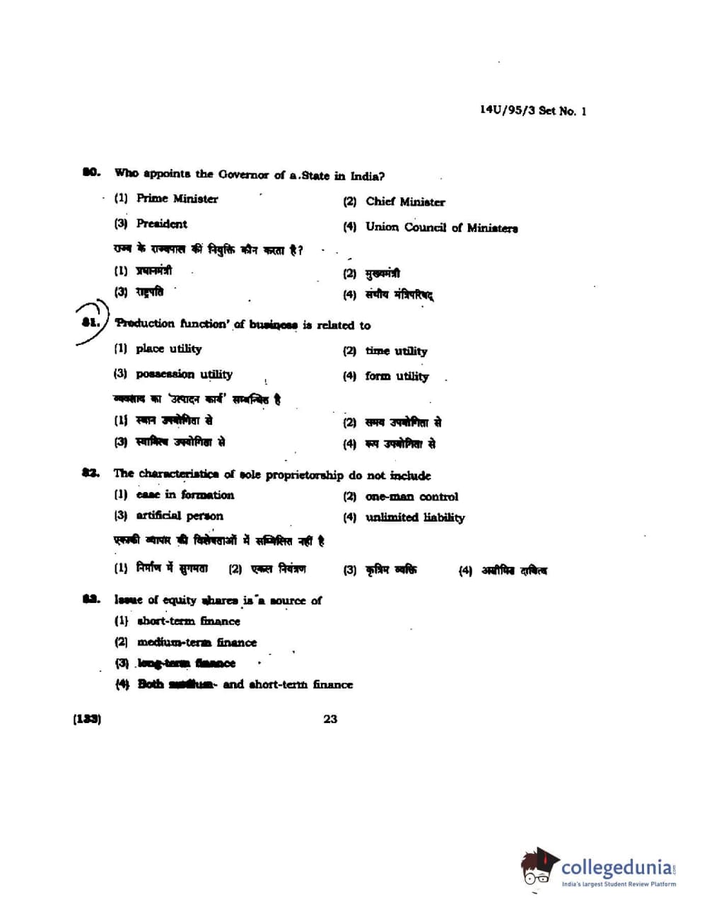 BHU UET 2014 B.Ed Humanities and Social Science Set-1 Question Paper with Answer Key PDFs
