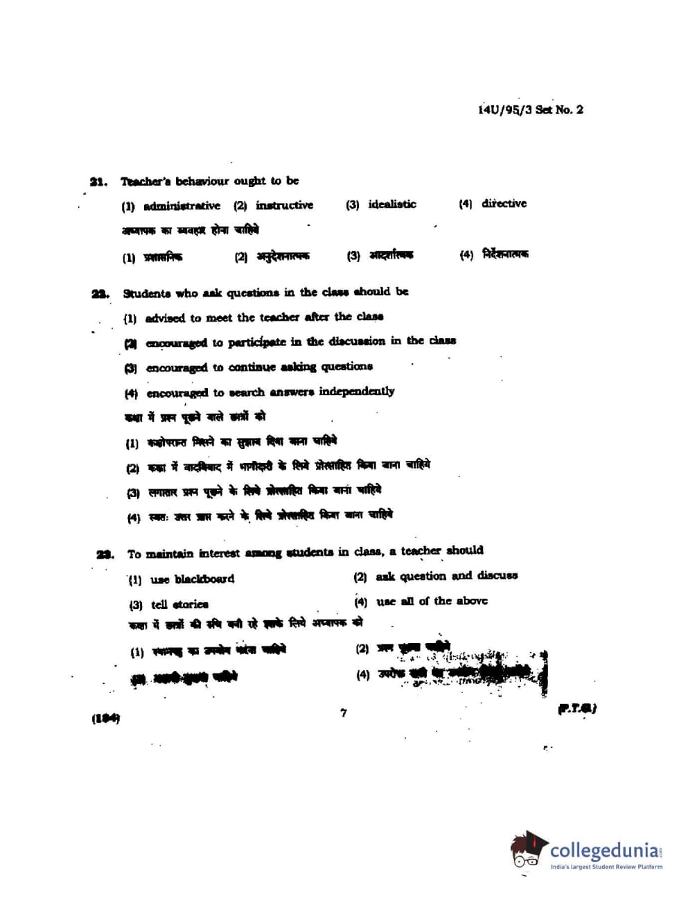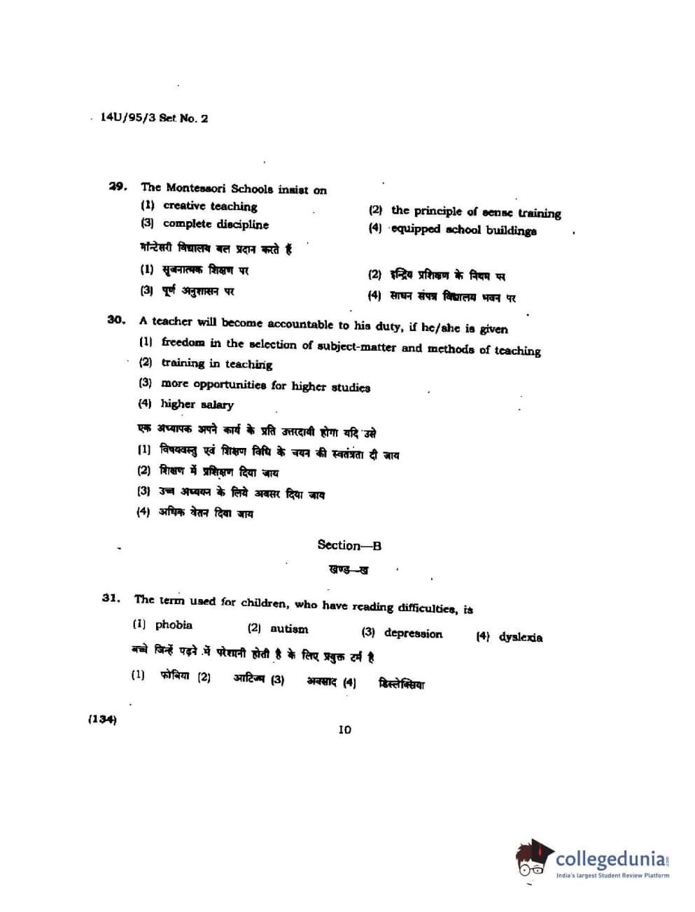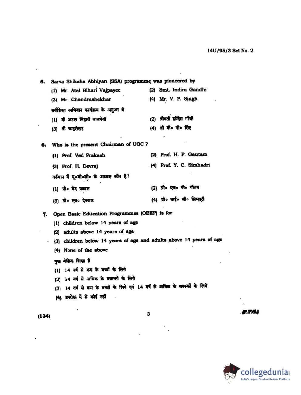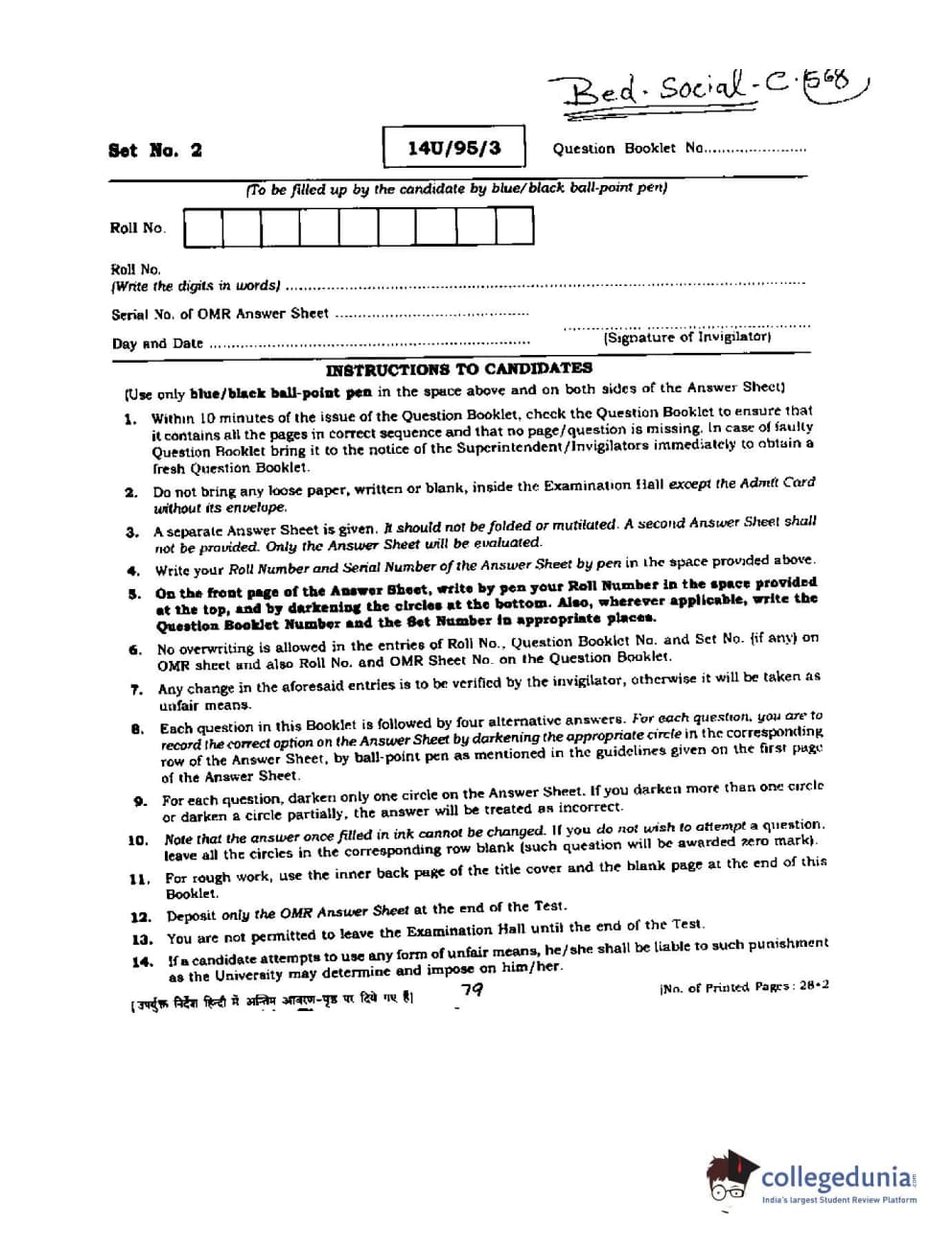 BHU UET 2014 B.Ed Humanities and Social Science Set-2 Question Paper with Answer Key PDFs
