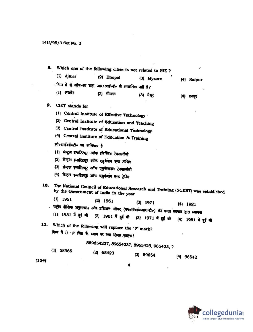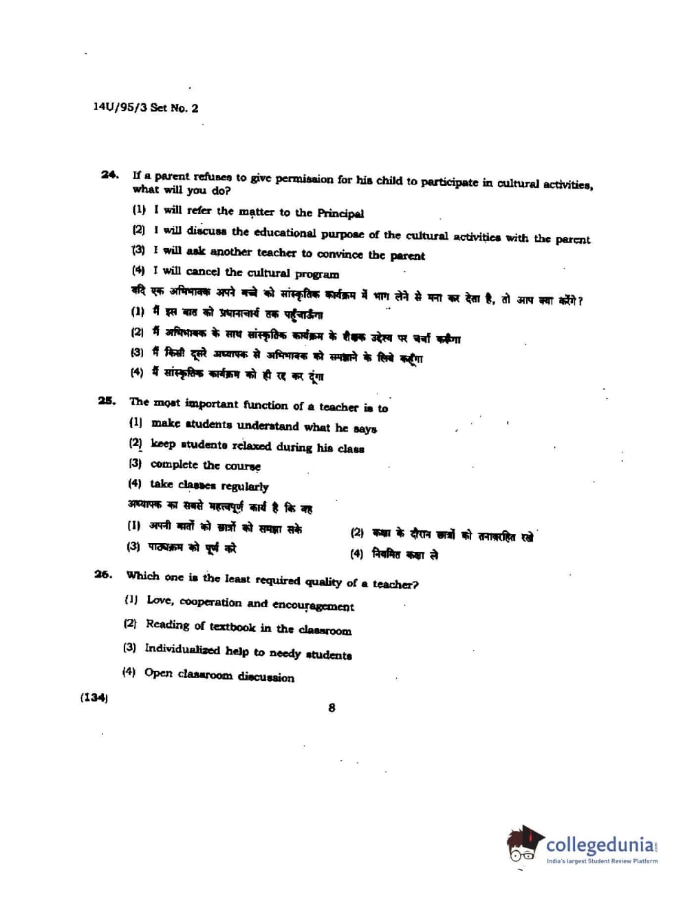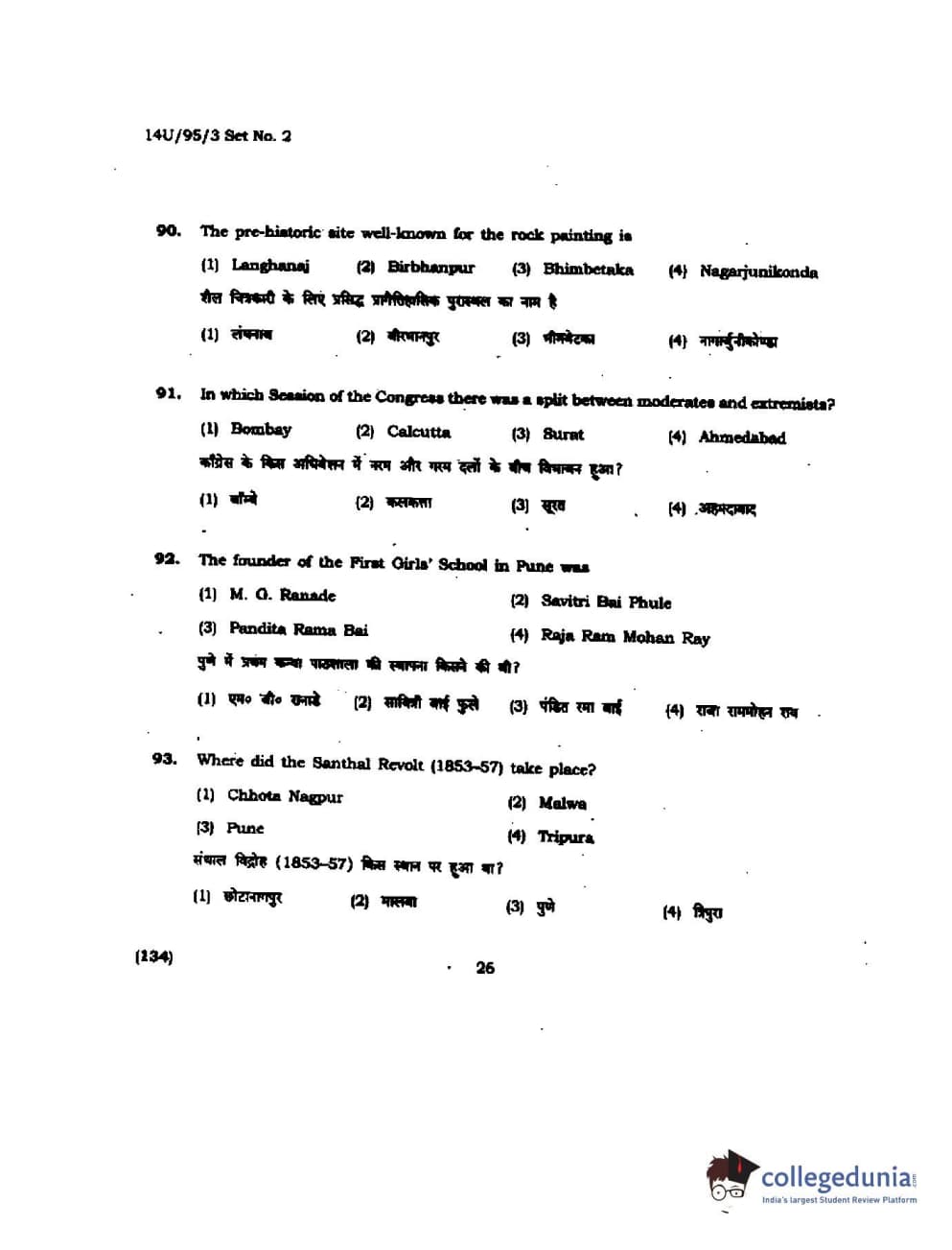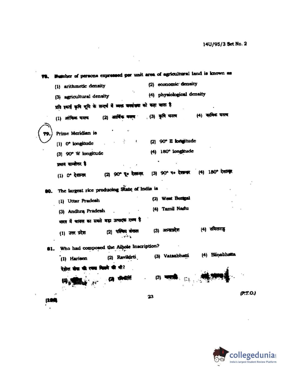 BHU UET 2014 B.Ed Humanities and Social Science Set-2 Question Paper with Answer Key PDFs