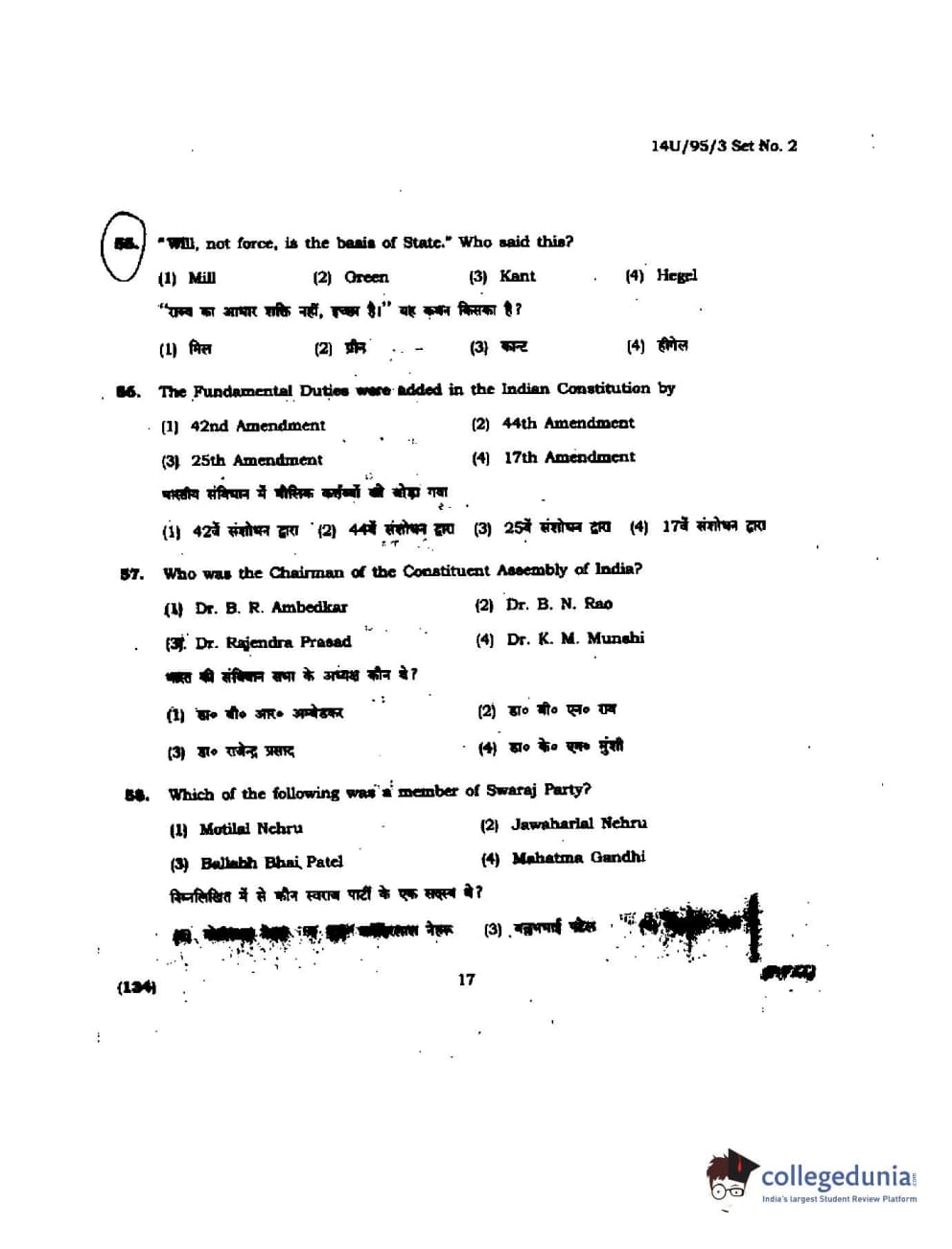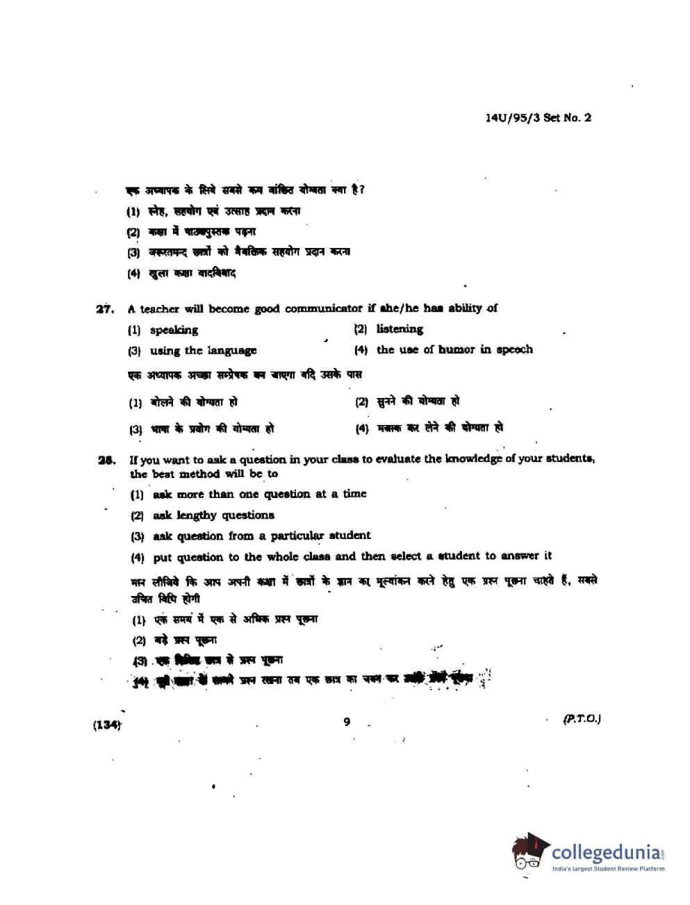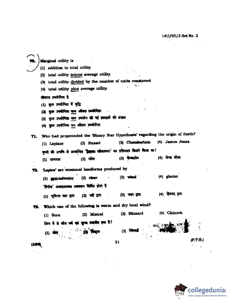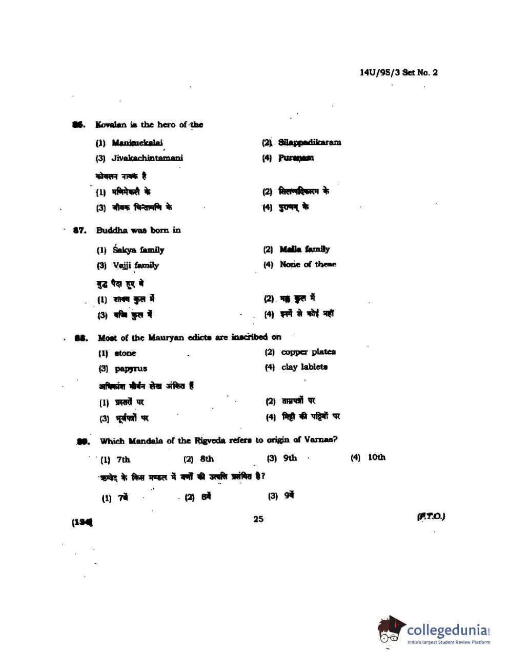 BHU UET 2014 B.Ed Humanities and Social Science Set-2 Question Paper with Answer Key PDFs