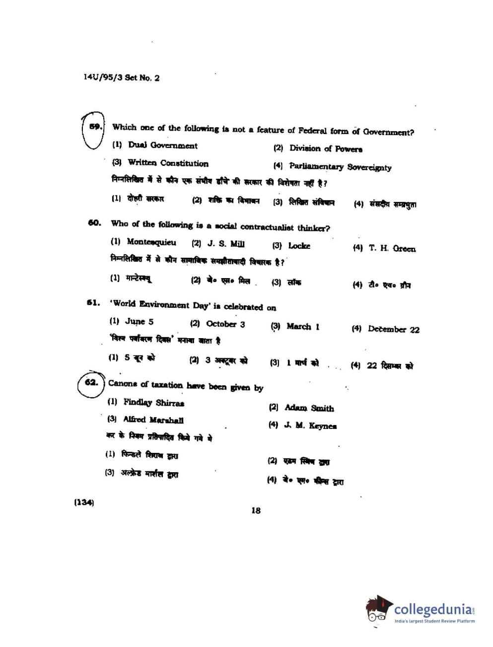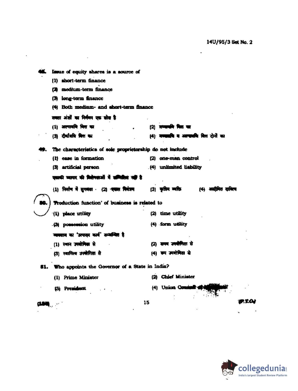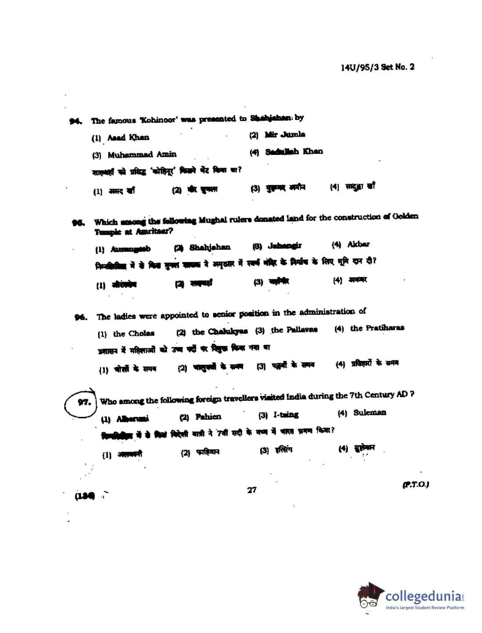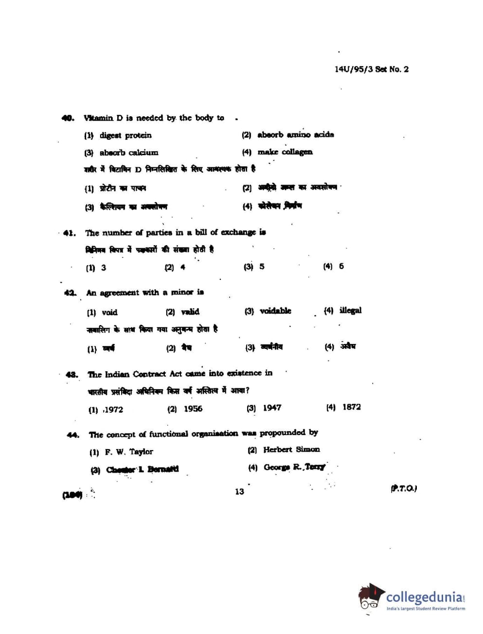 BHU UET 2014 B.Ed Humanities and Social Science Set-2 Question Paper with Answer Key PDFs
