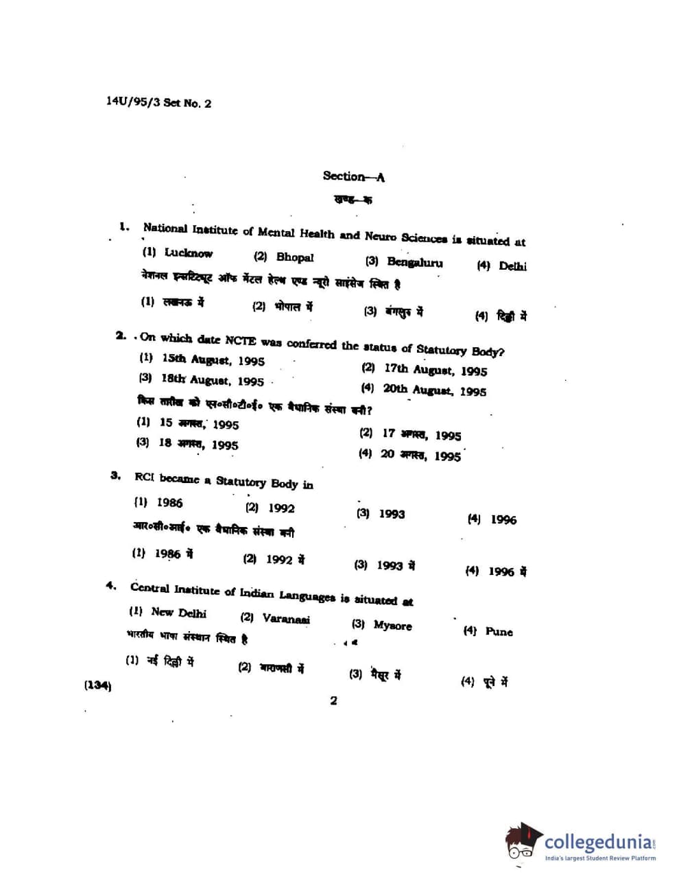 | BHU UET 2014 B.Ed Humanities and Social Science Set-2 Question Paper PDF | BHU UET 2014 B.Ed Humanities and Social Science Set-2 Answer Key PDF |