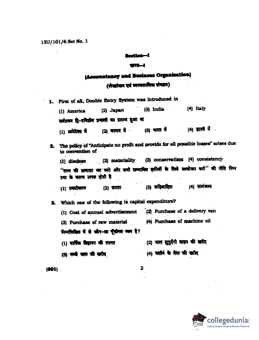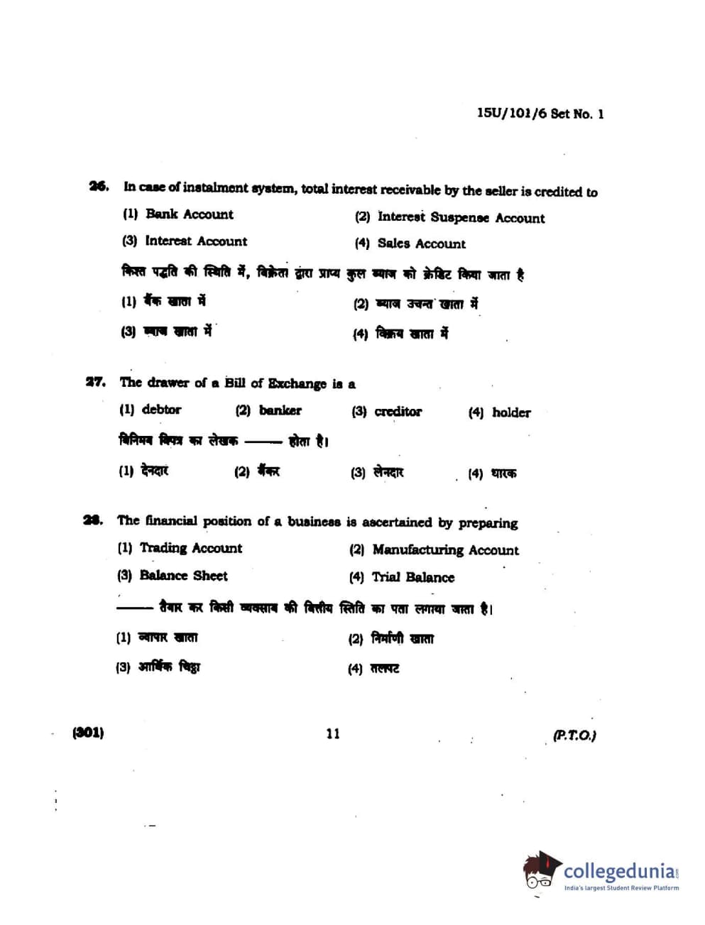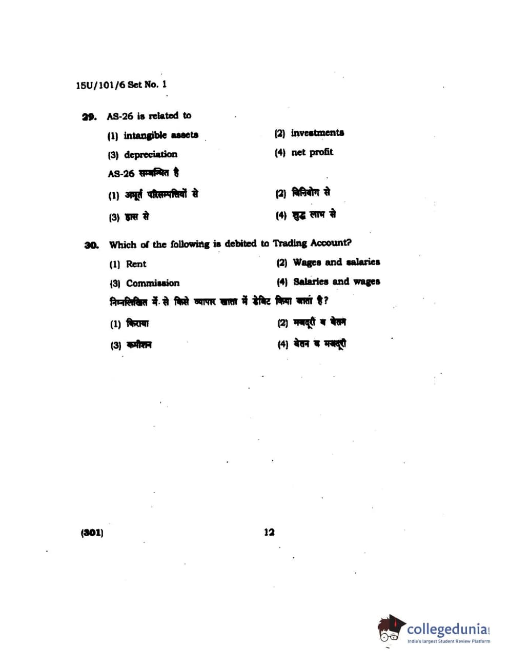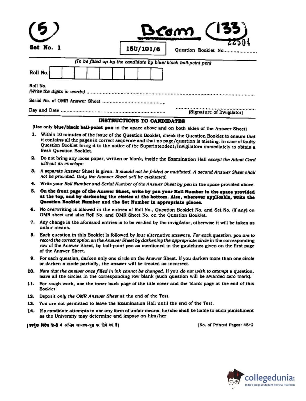 BHU UET 2015 B.Com Question Paper with Answer Key PDFs