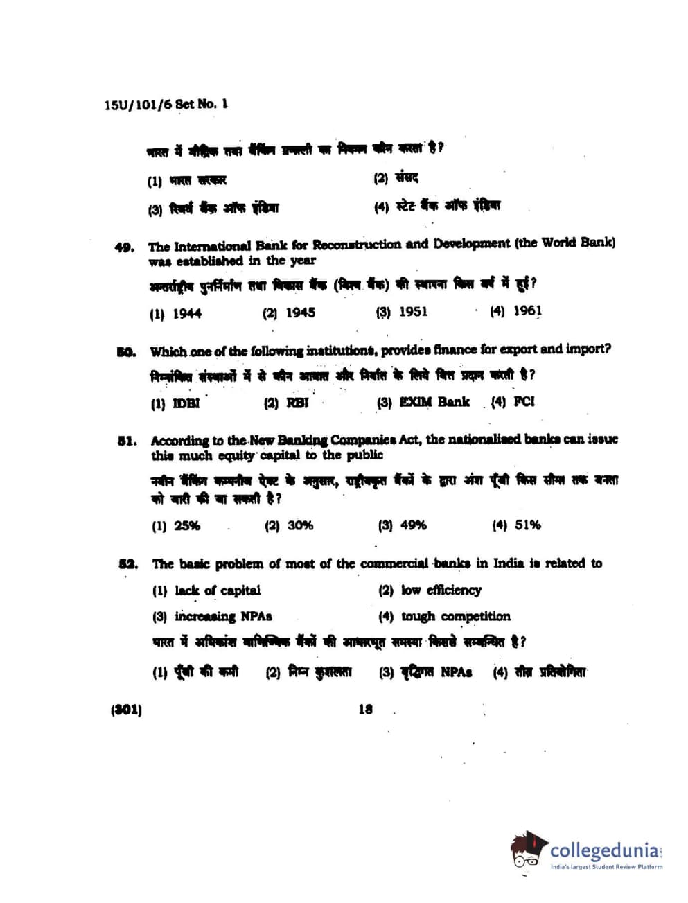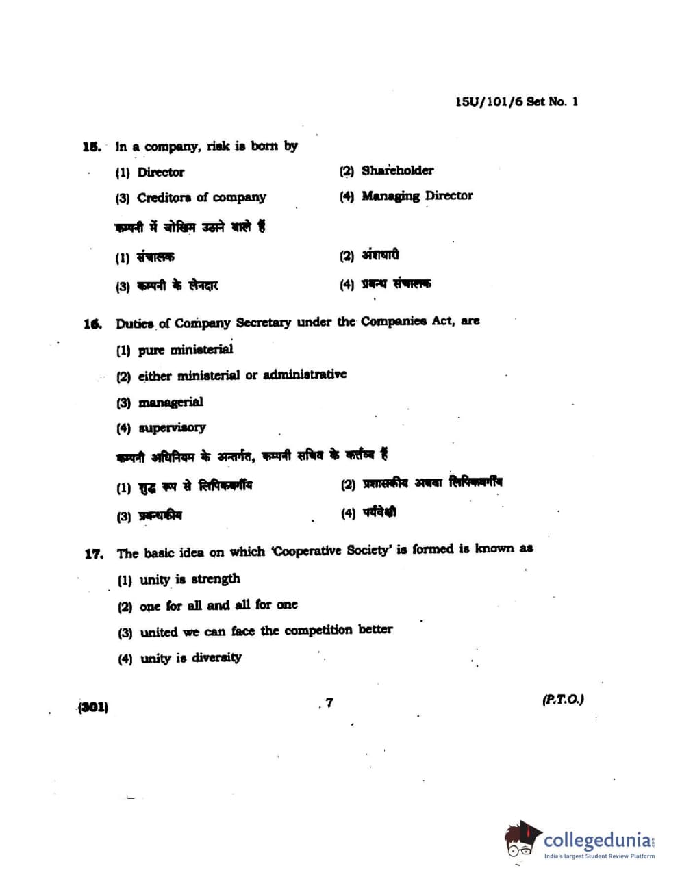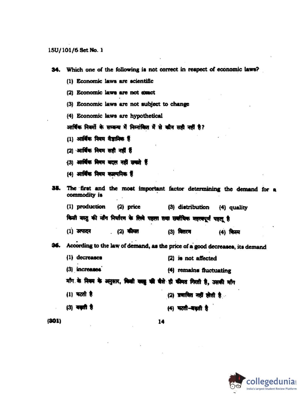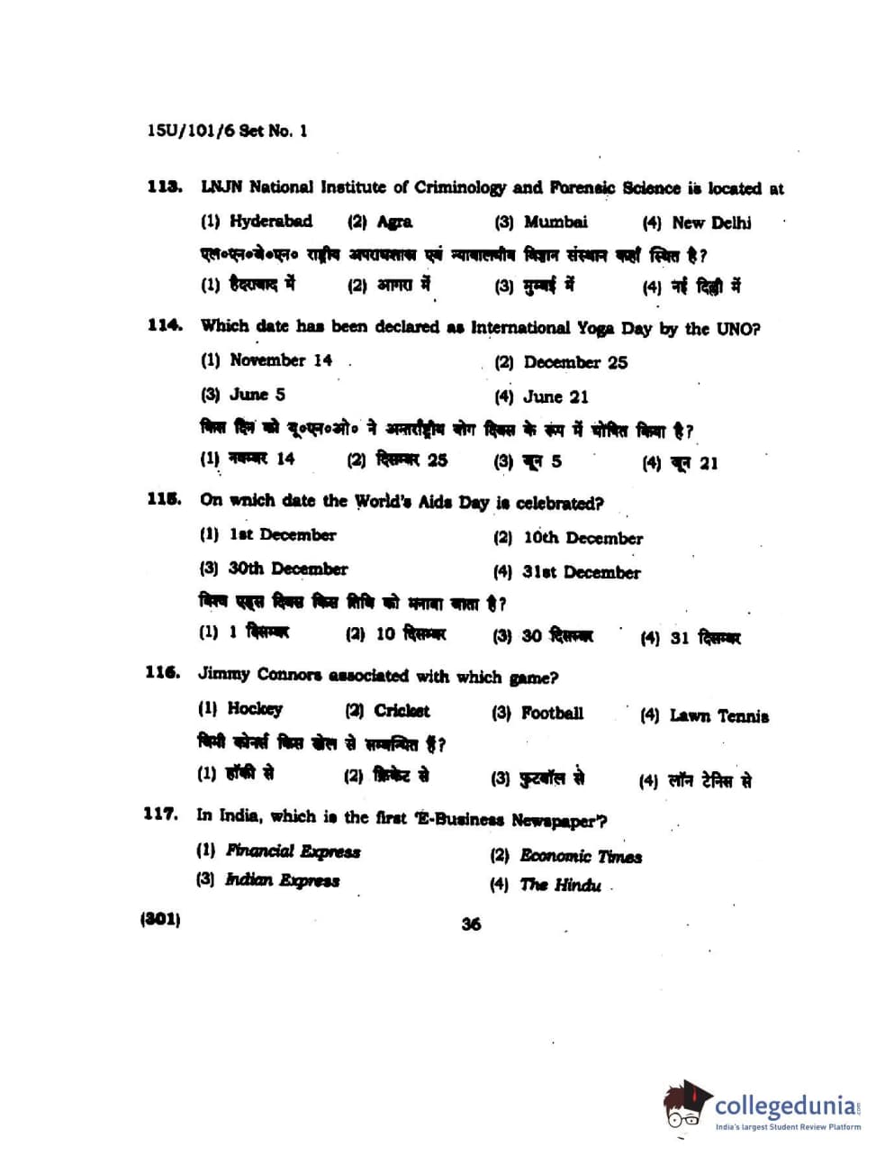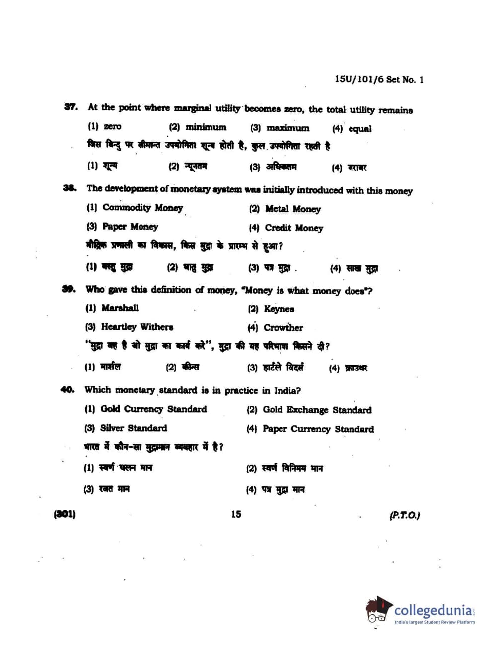 BHU UET 2015 B.Com Question Paper with Answer Key PDFs