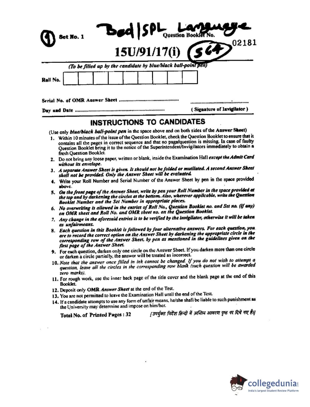 BHU UET 2015 B.Ed Language Question paper with answer key pdf is available for download. The exam was successfully organized by Banaras Hindu University (BHU). The question paper comprised a total of 100 questions.