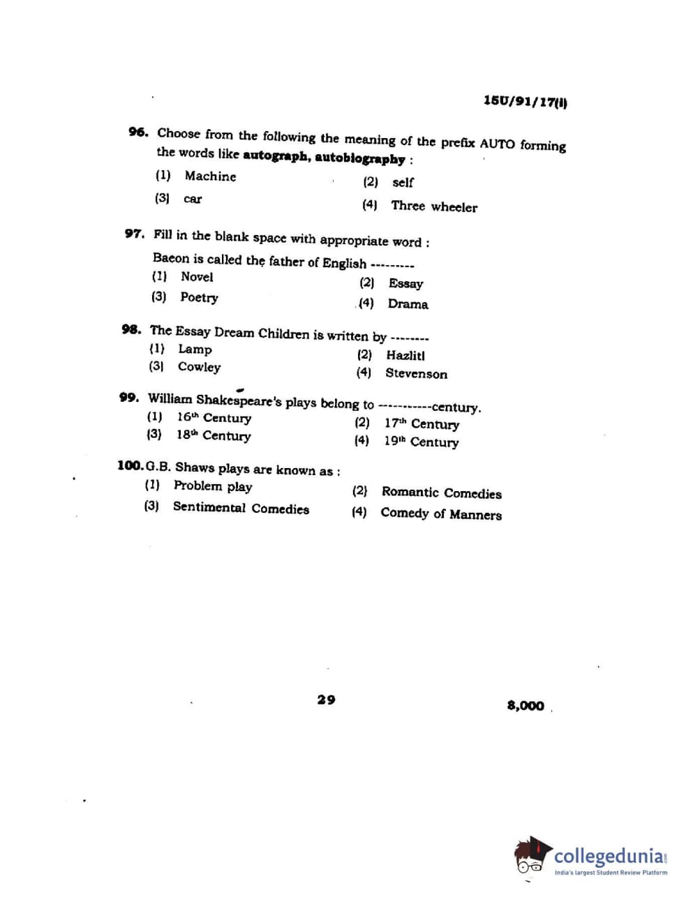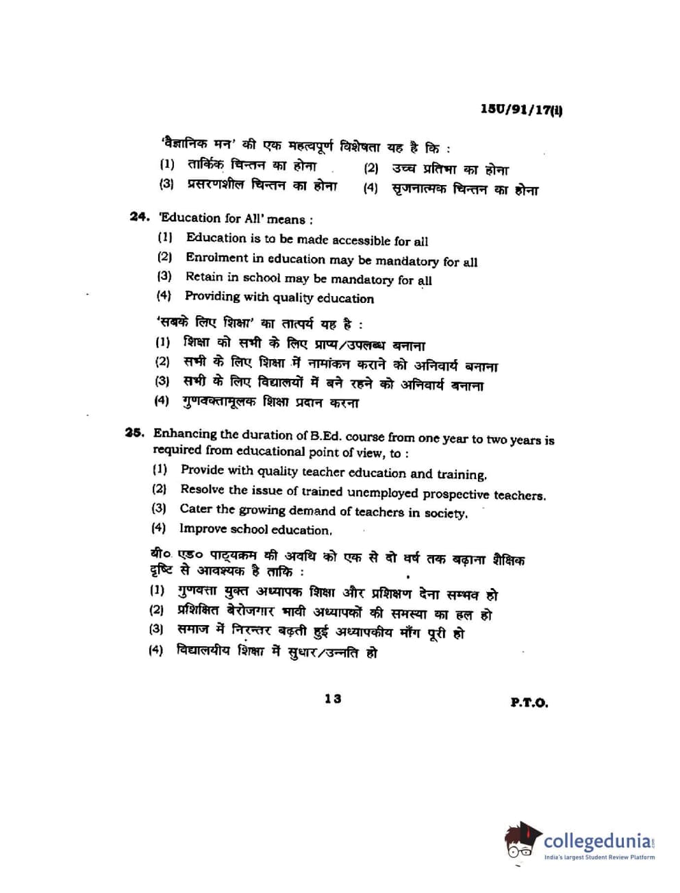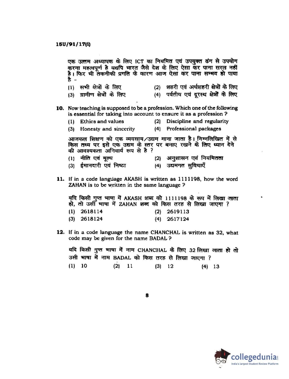 BHU UET 2015 B.Ed Language Question Paper with Answer Key PDFs