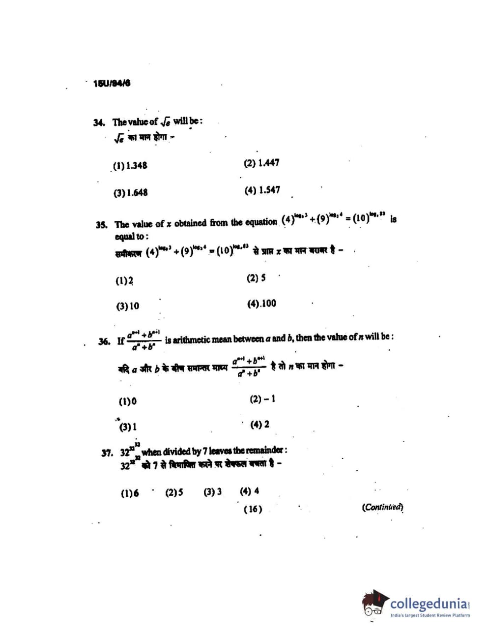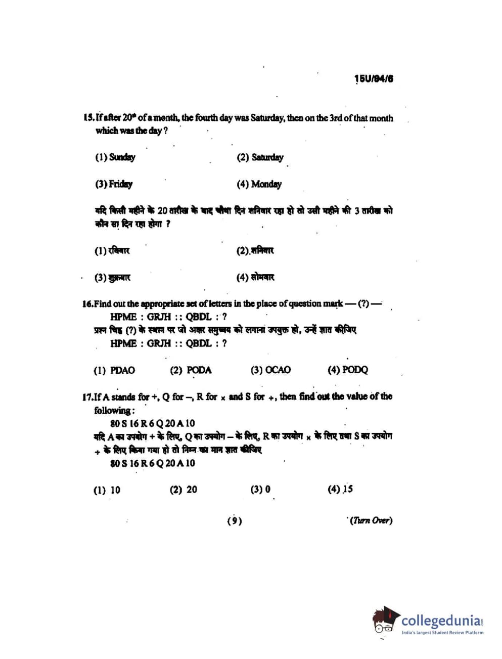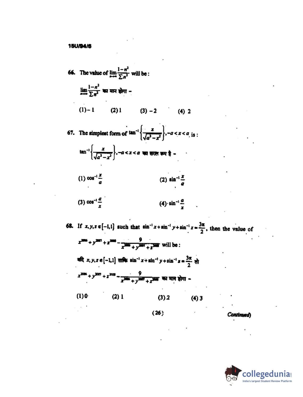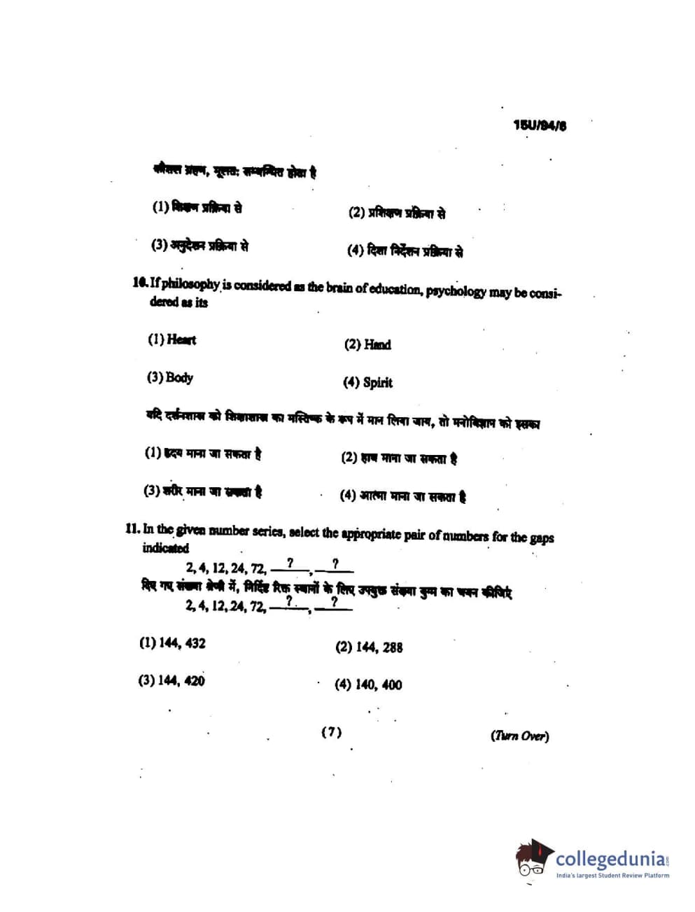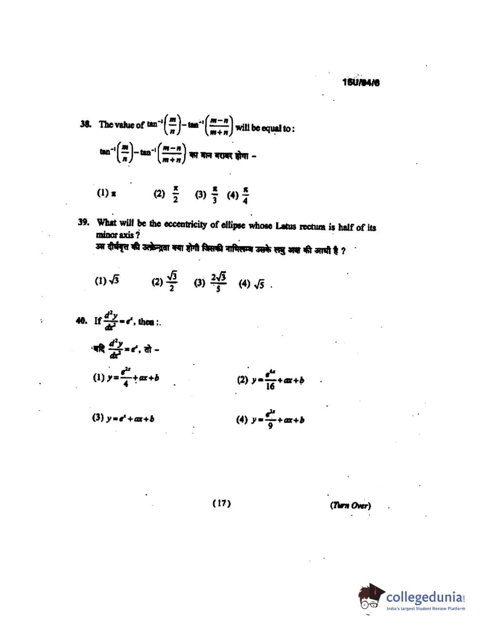BHU UET 2015 B.Ed Mathematics Question Paper with Answer Key PDFs