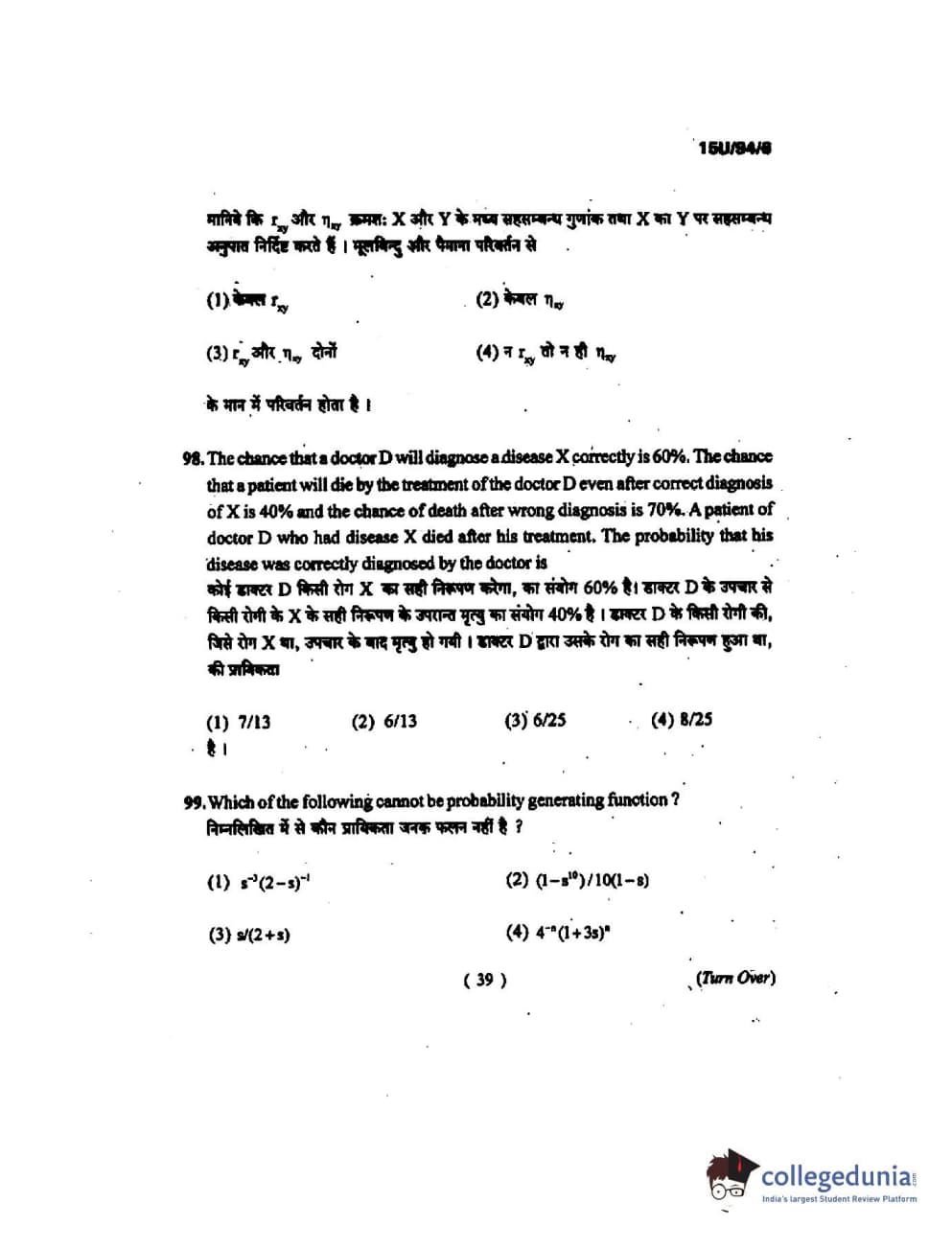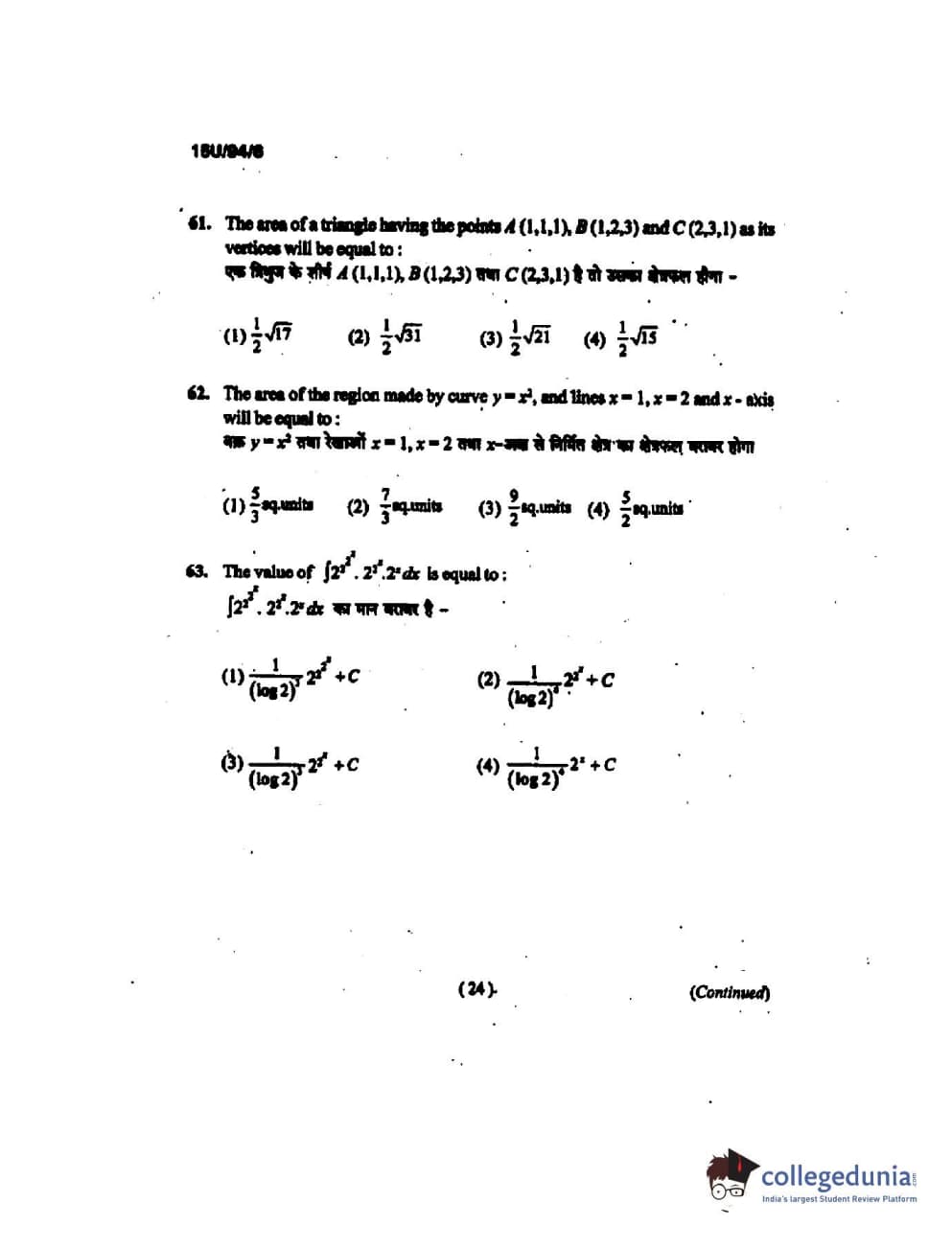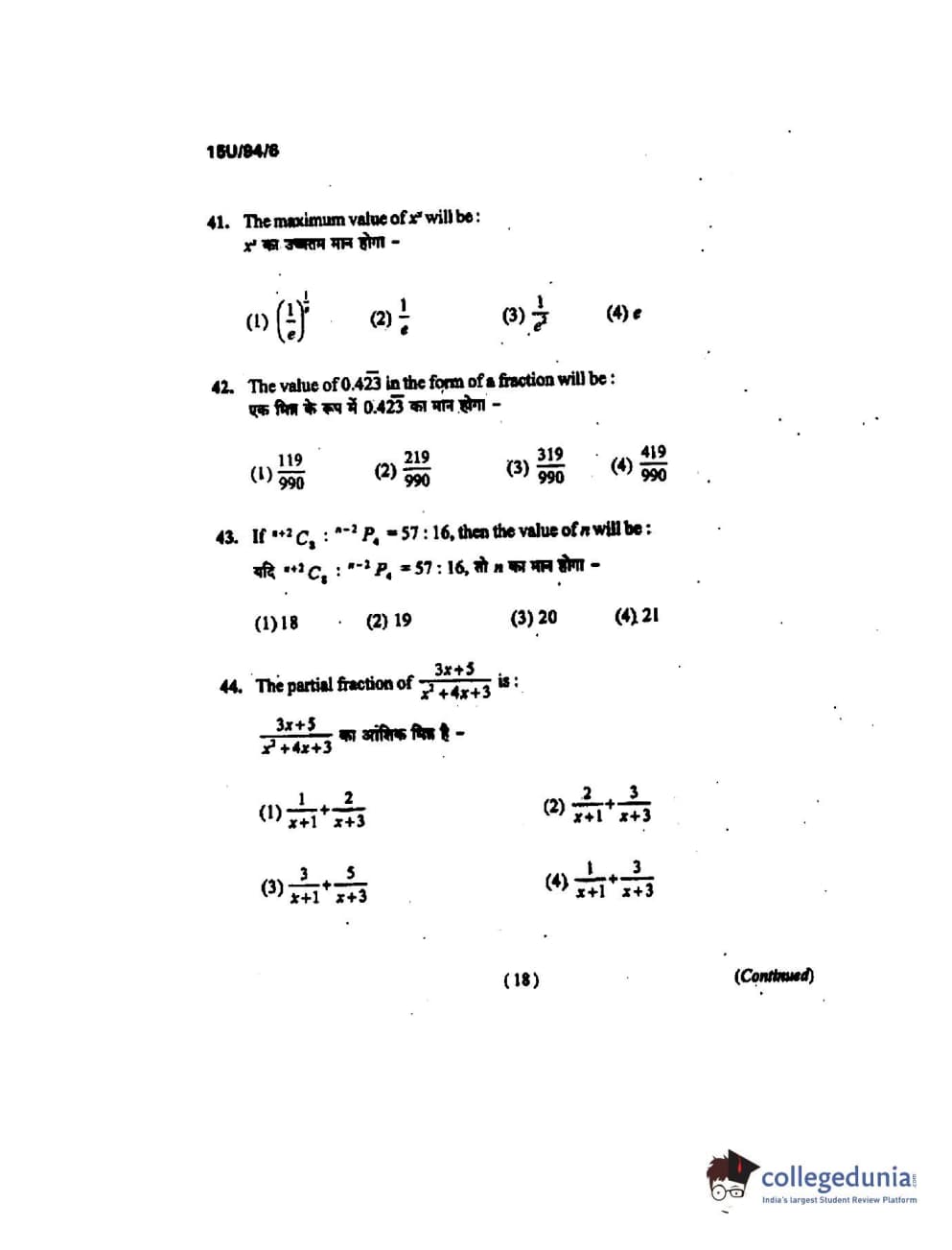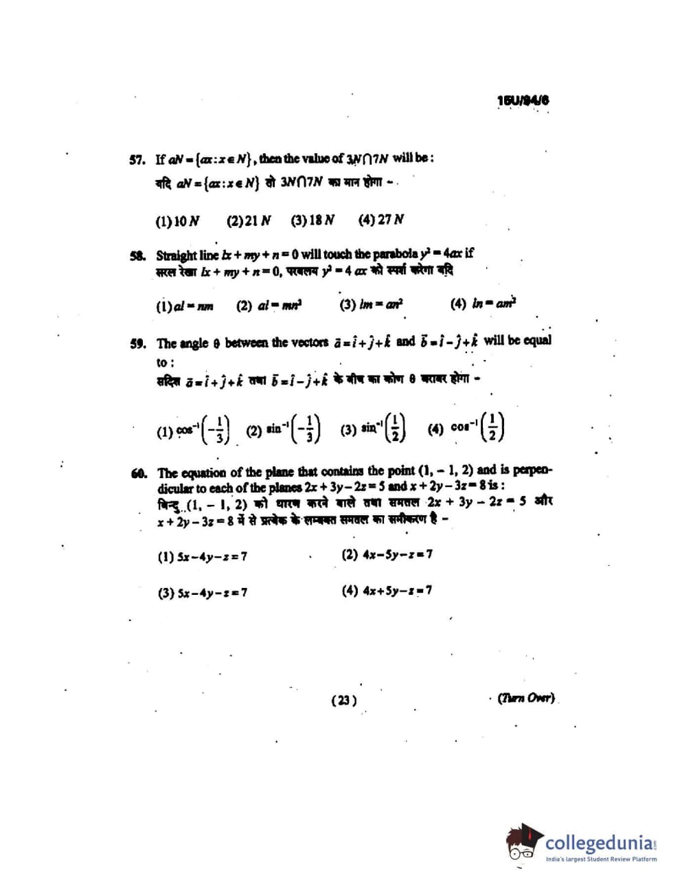 BHU UET 2015 B.Ed Mathematics Question Paper with Answer Key PDFs