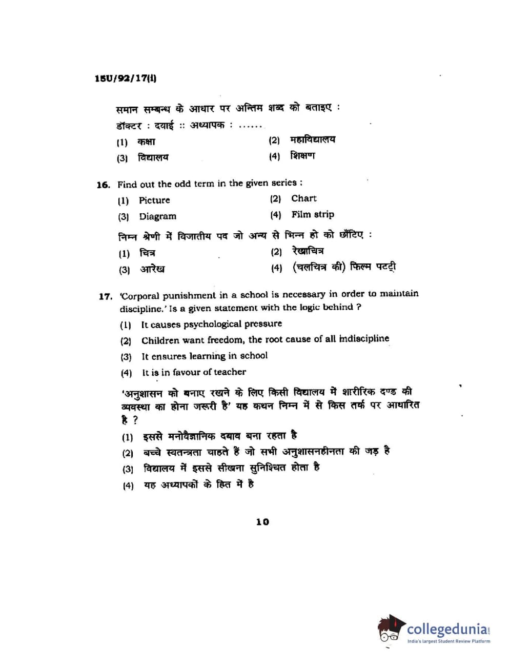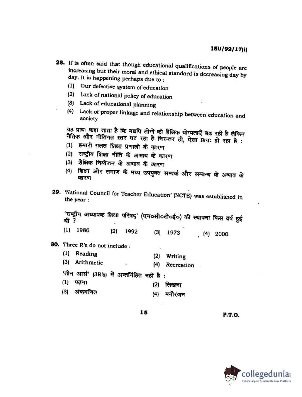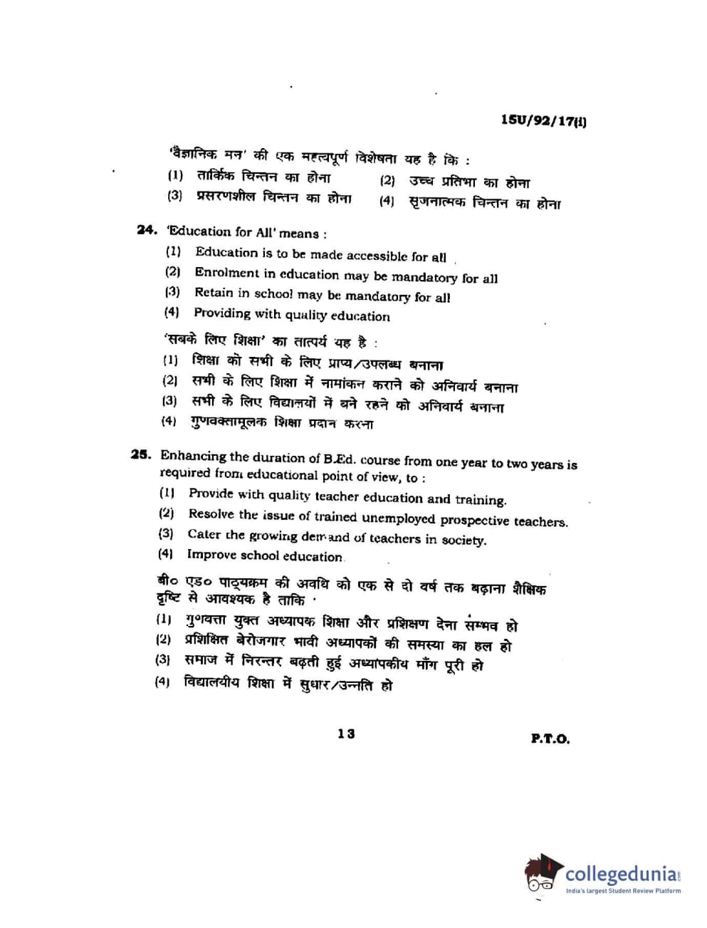 BHU UET 2015 B.Ed Science Question Paper with Answer Key PDFs