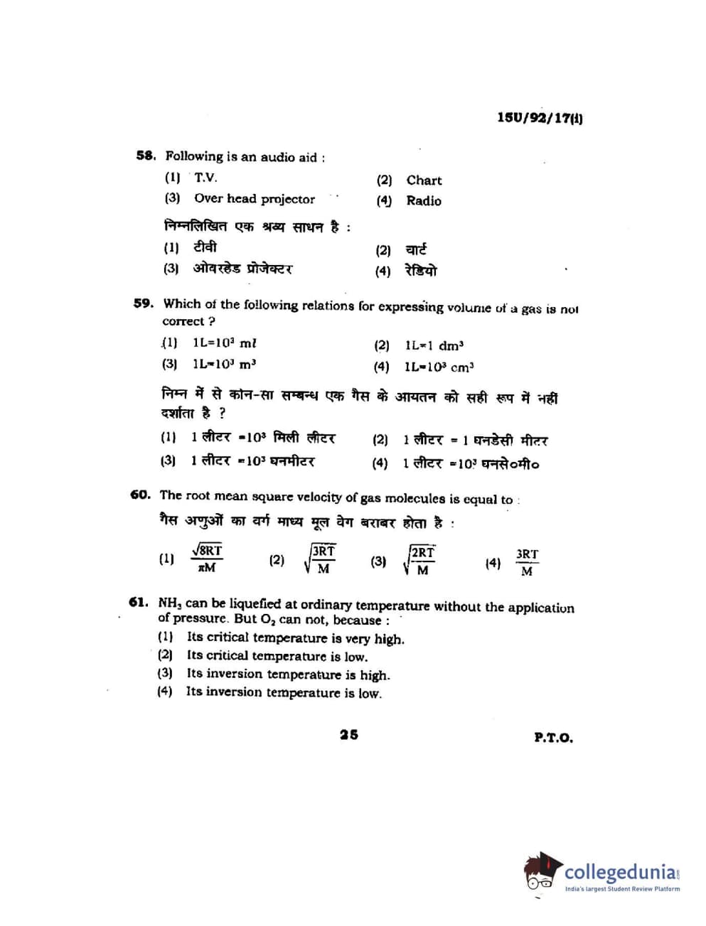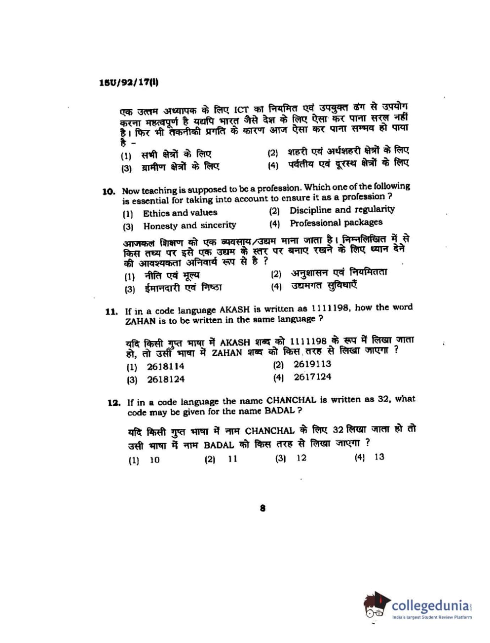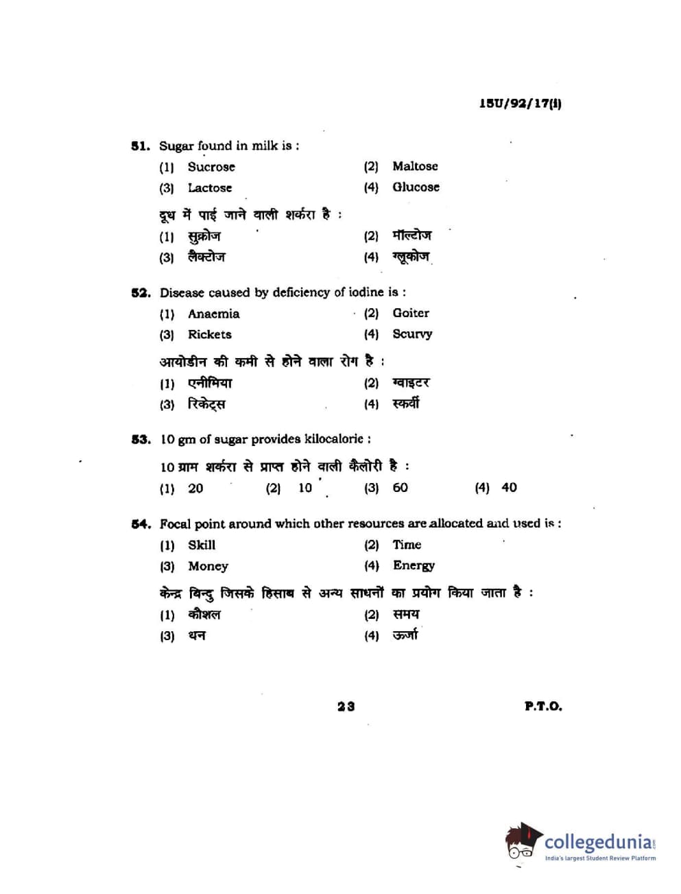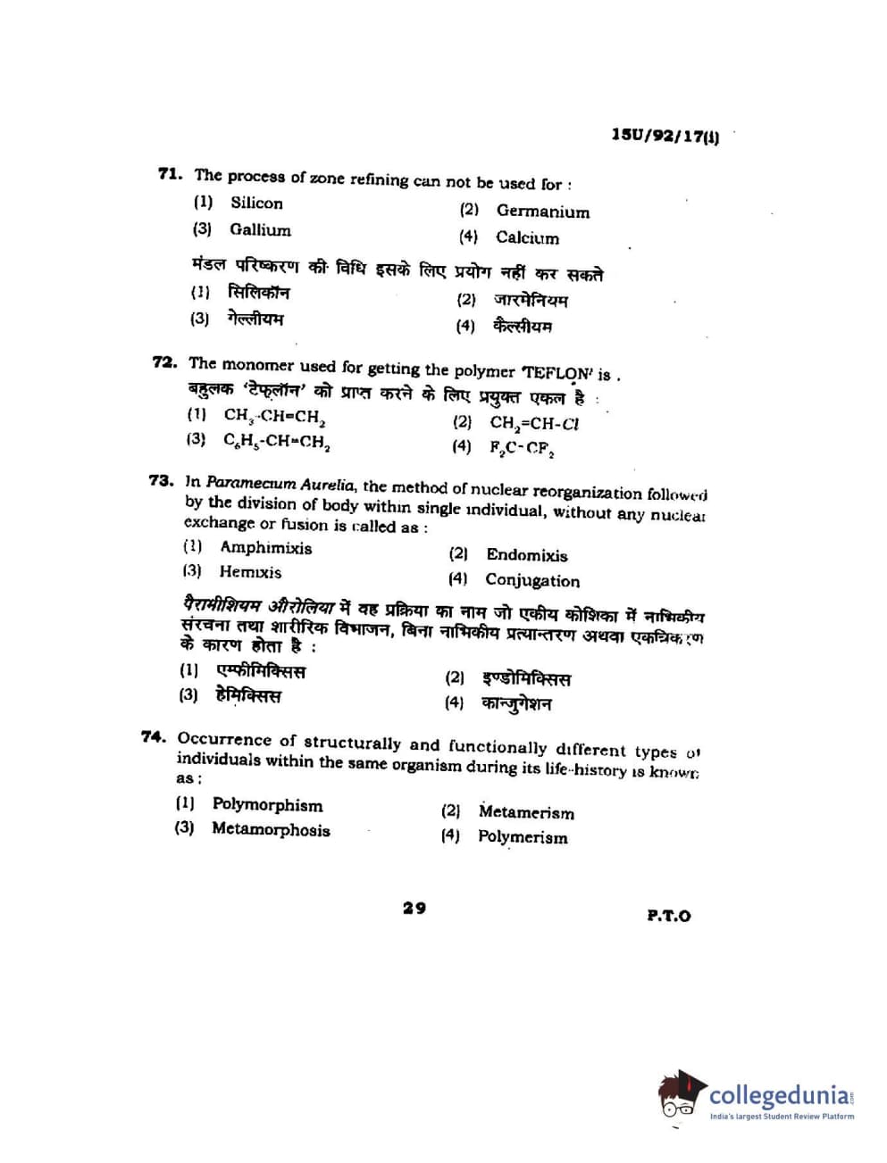 BHU UET 2015 B.Ed Science Question Paper with Answer Key PDFs
