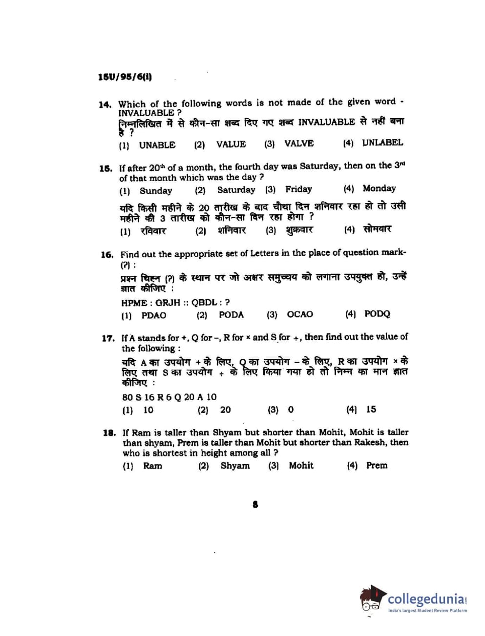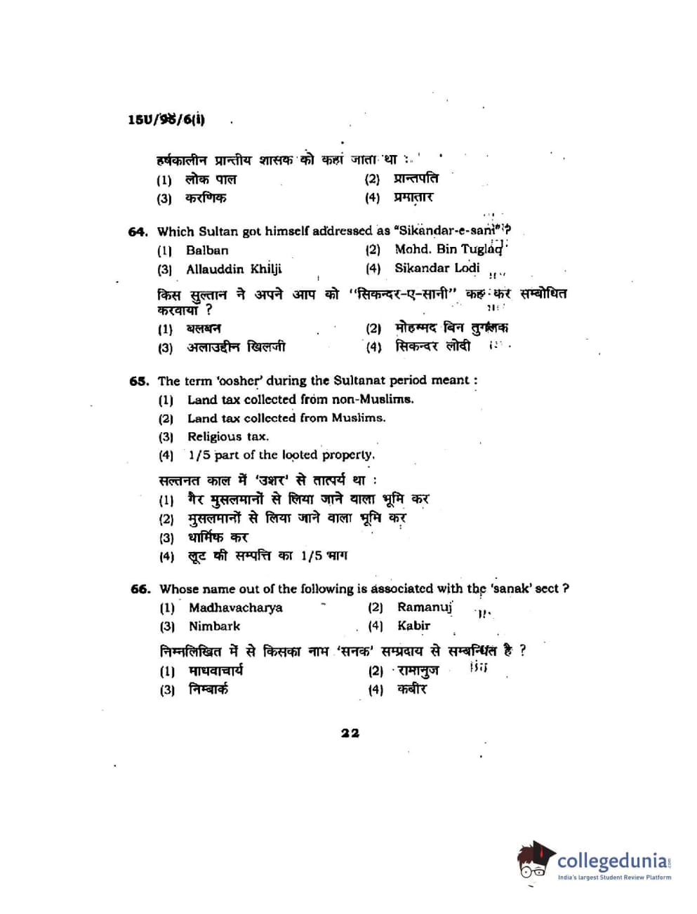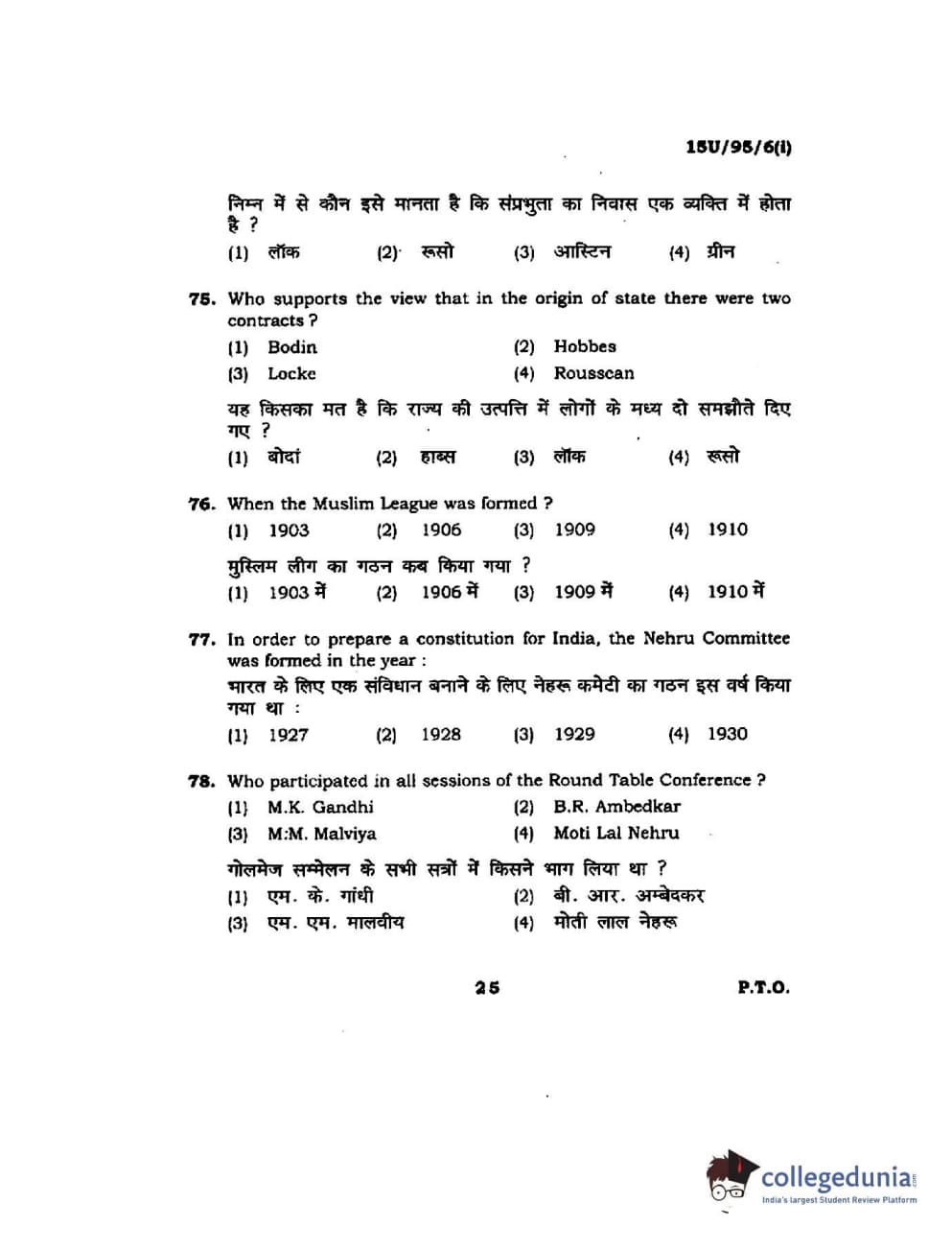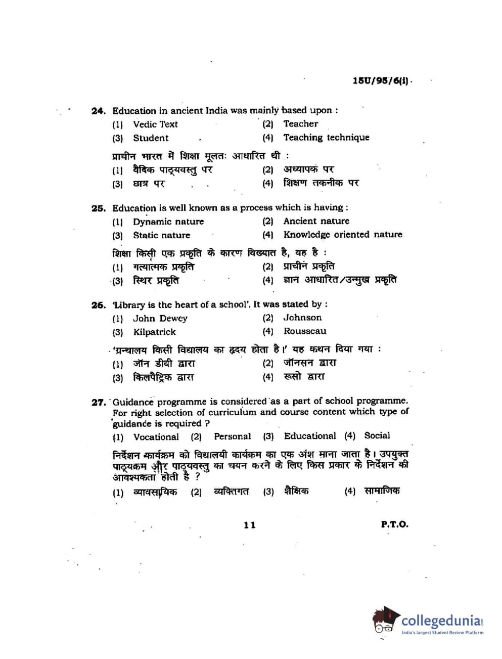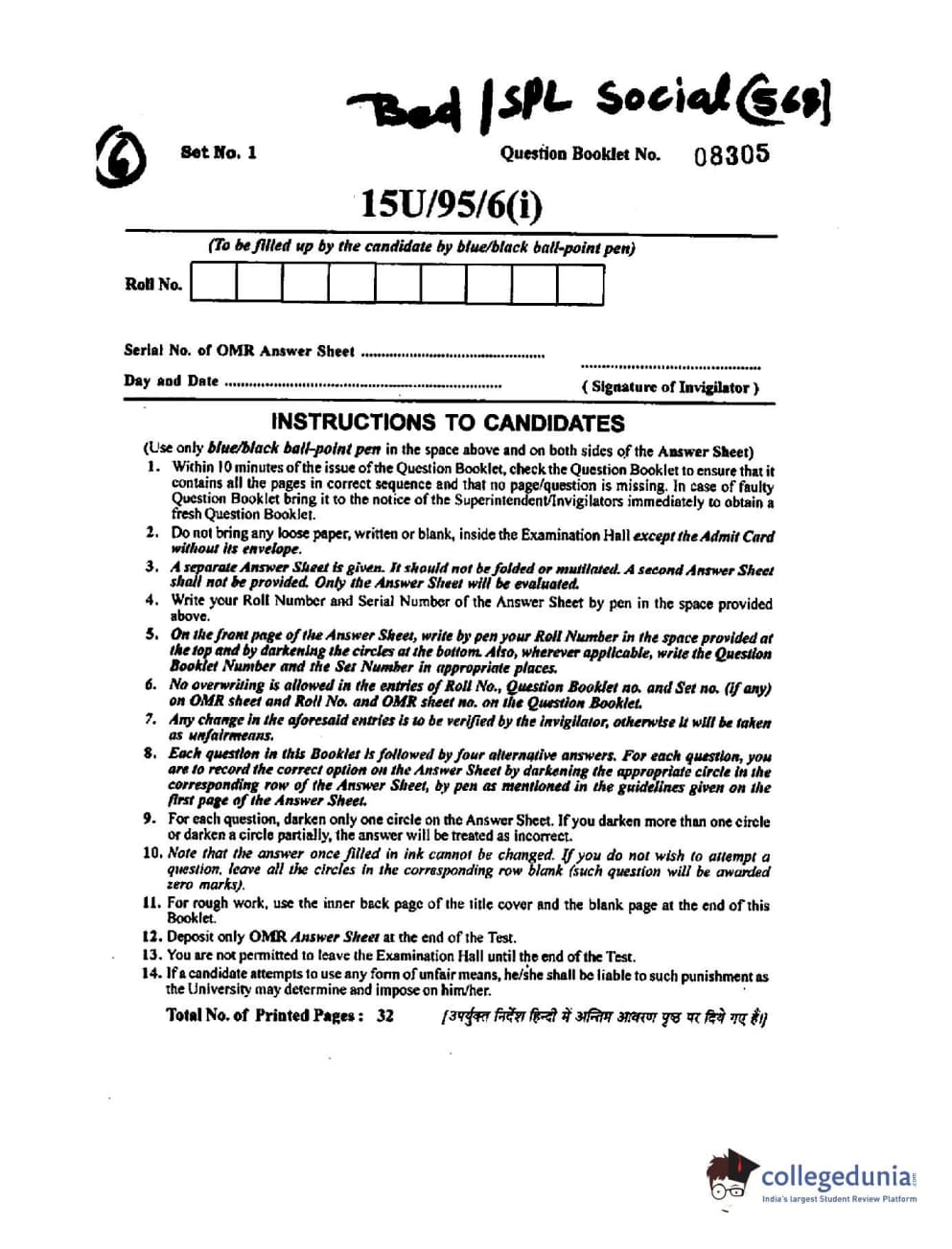 BHU UET 2015 B.Ed Social Question Paper with Answer Key PDFs