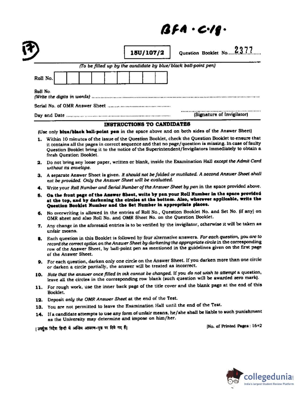 BHU UET 2015 B.F.A Question paper with answer key pdf is available for download. The exam was successfully organized by Banaras Hindu University (BHU). The question paper comprised a total of 50 questions.