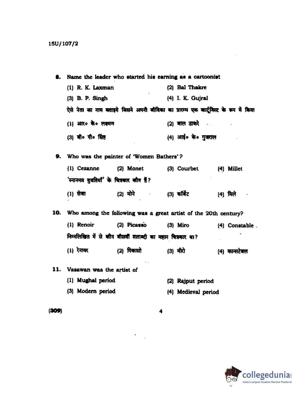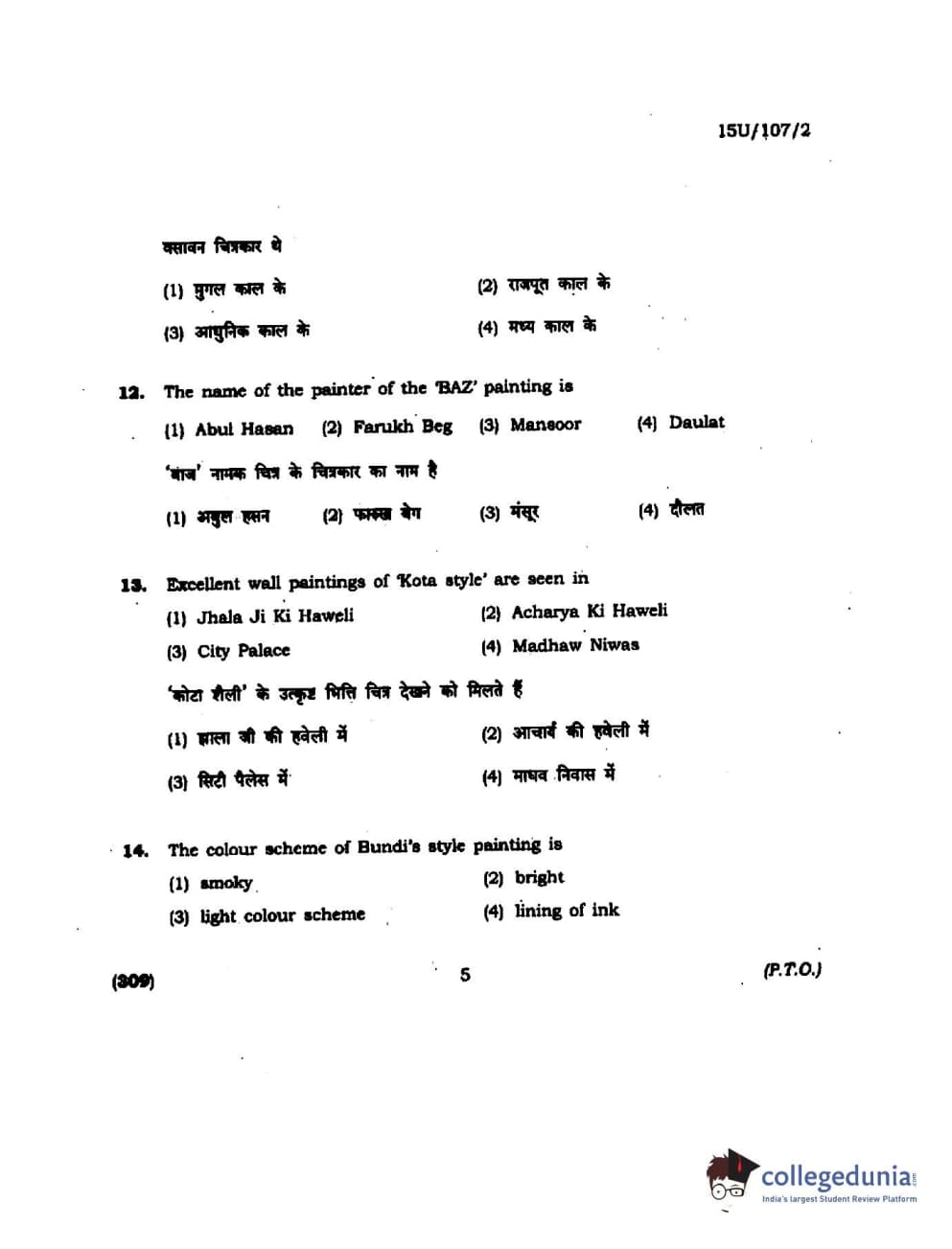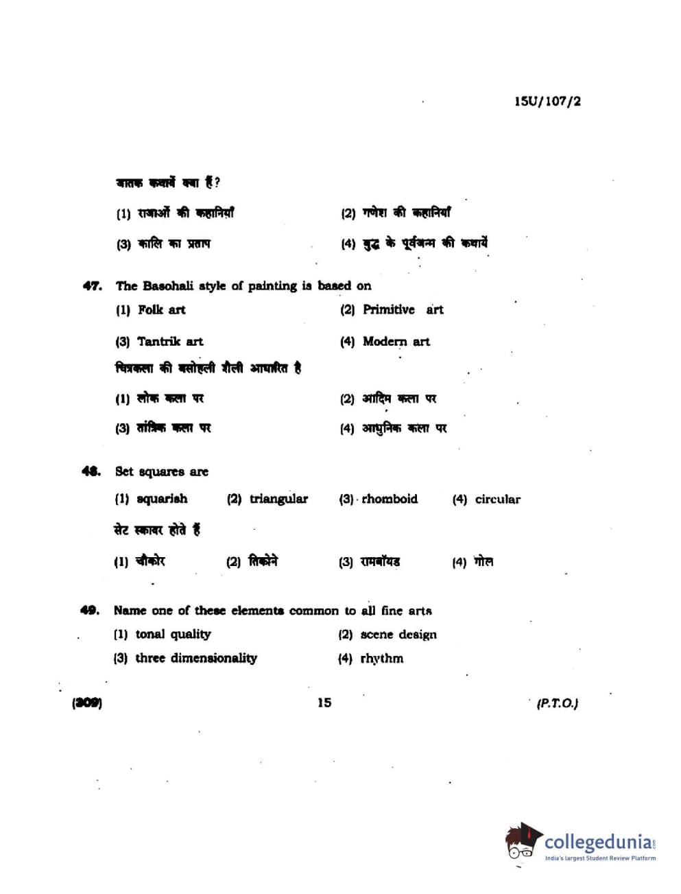 BHU UET 2015 B.F.A Question Paper with Answer Key PDFs