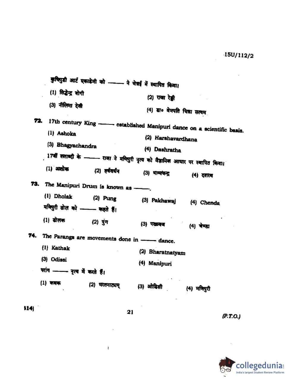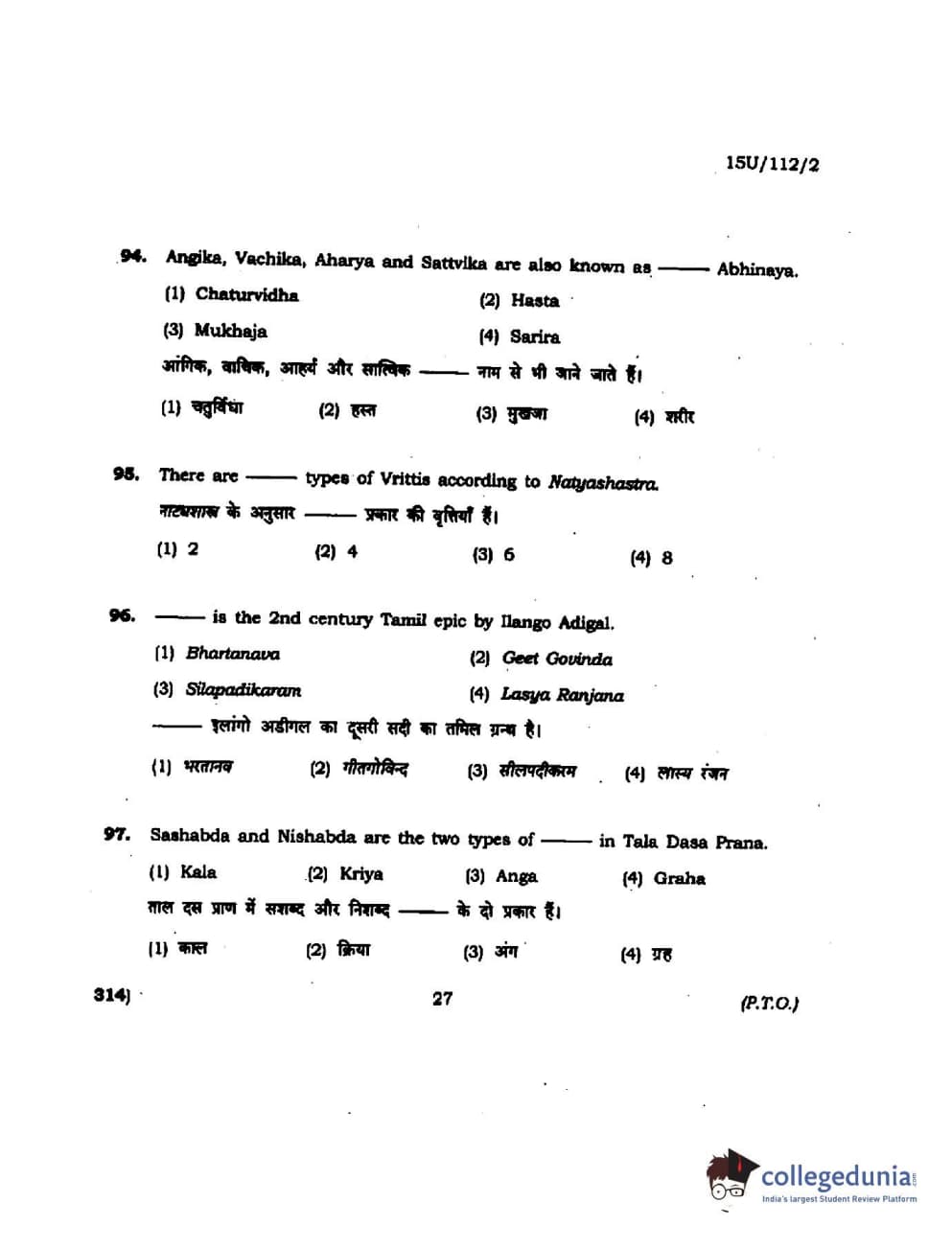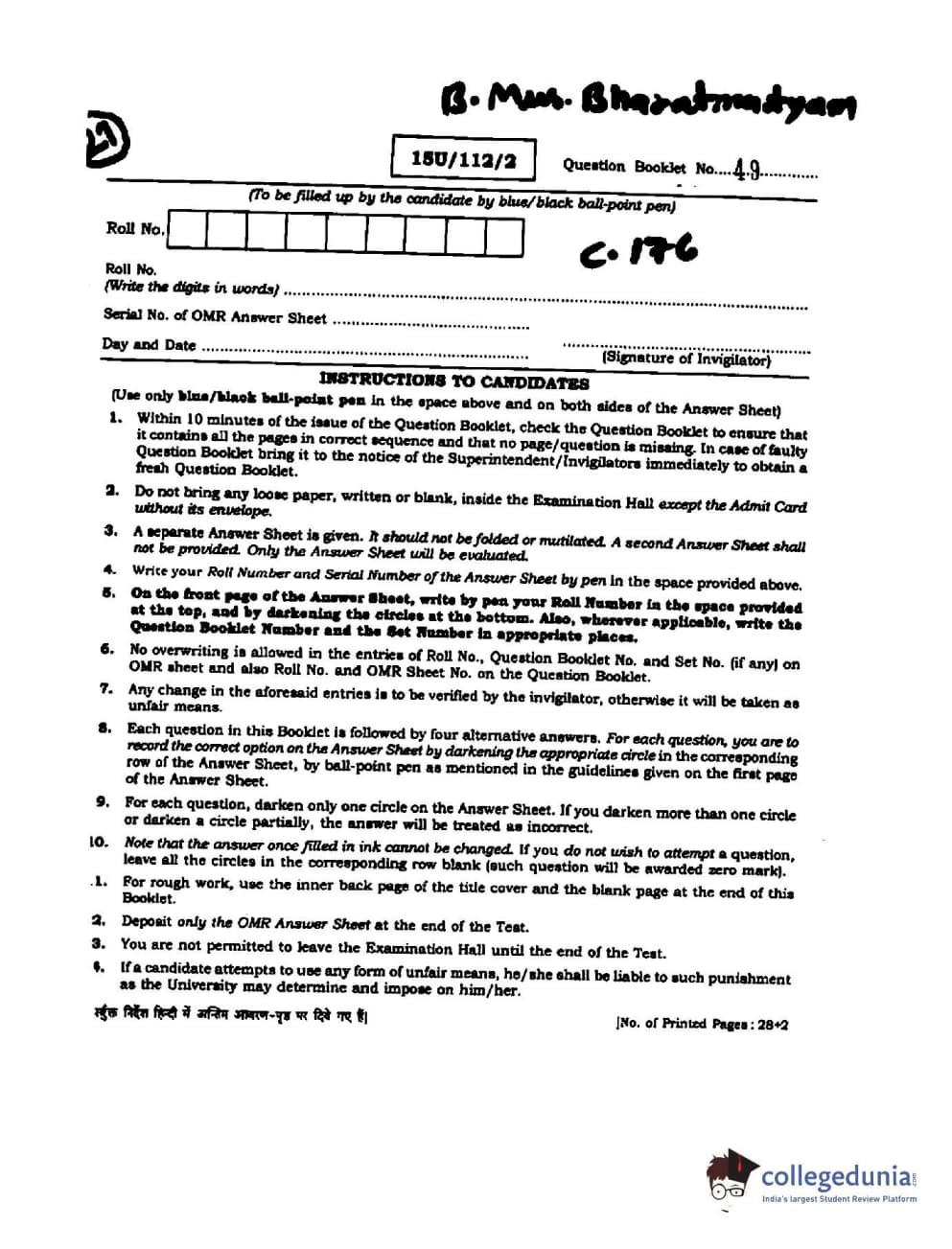 BHU UET 2015 B.Mus Bharatnattyam Question paper with answer key pdf is available for download. The exam was successfully organized by Banaras Hindu University (BHU). The question paper comprised a total of 100 questions.