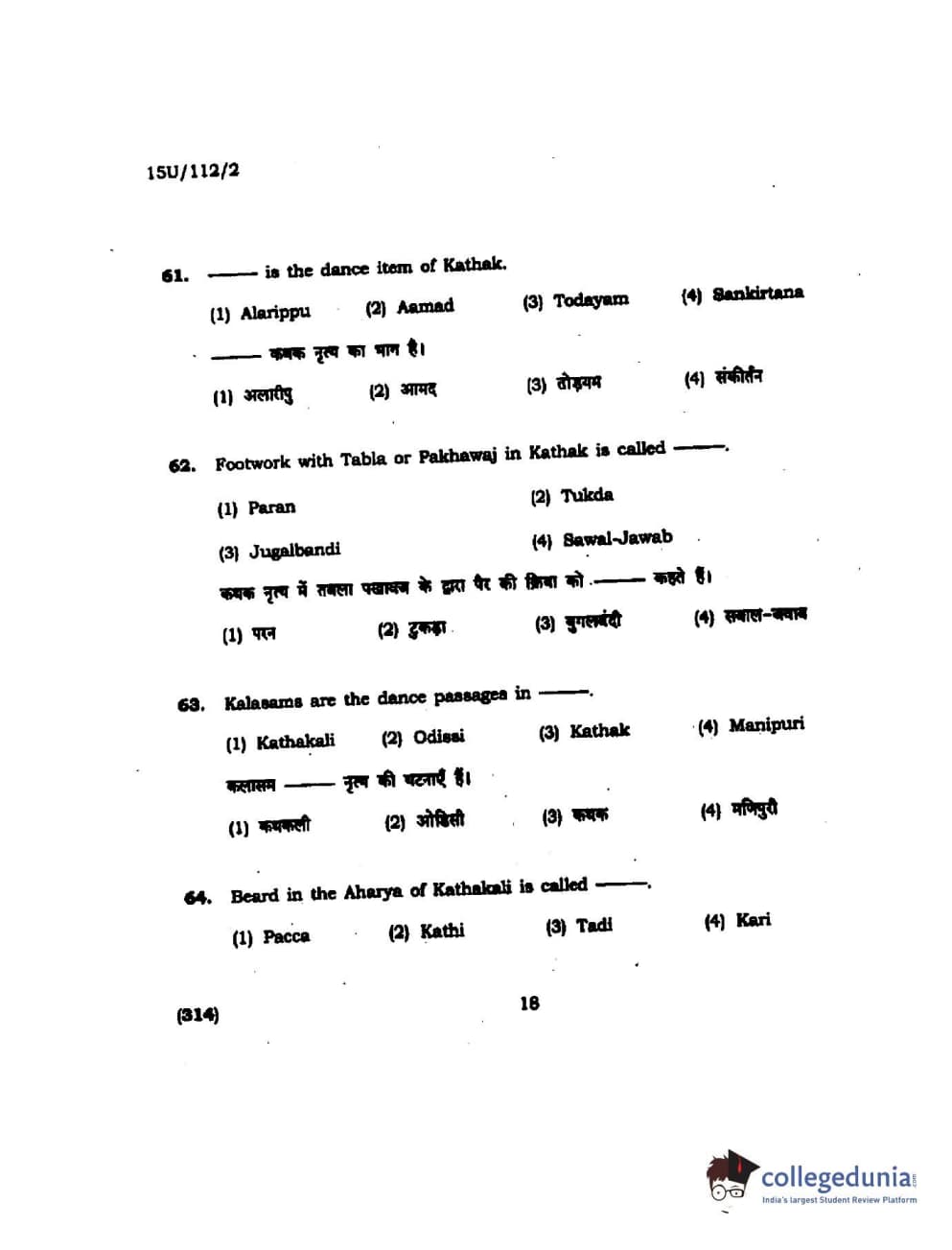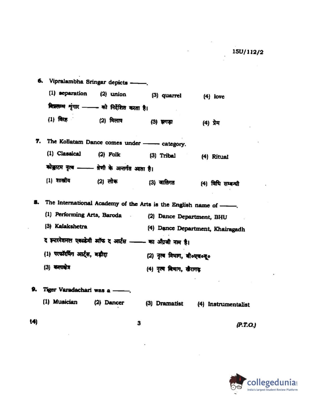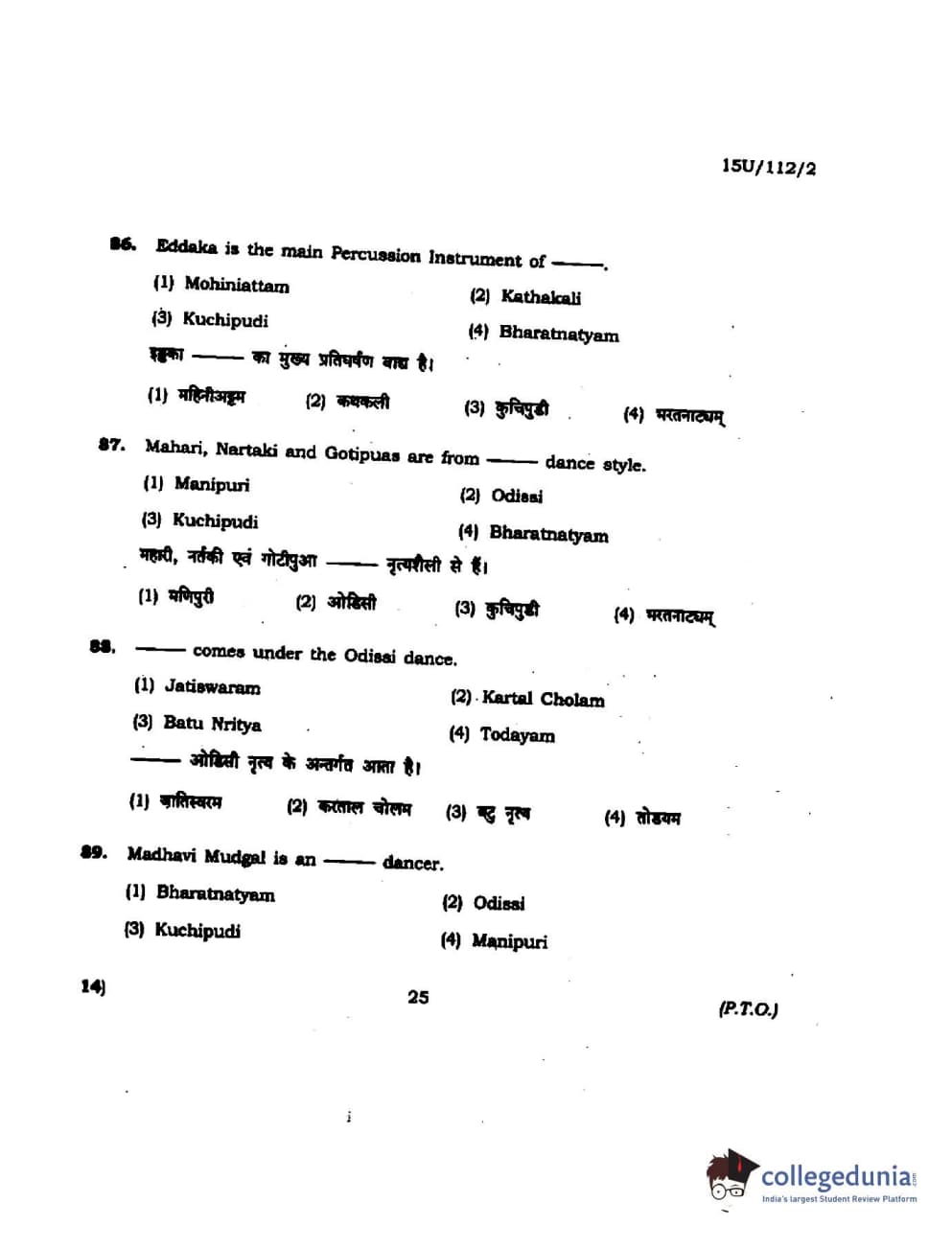 BHU UET 2015 B.Mus Bharatnattyam Question Paper with Answer Key PDFs