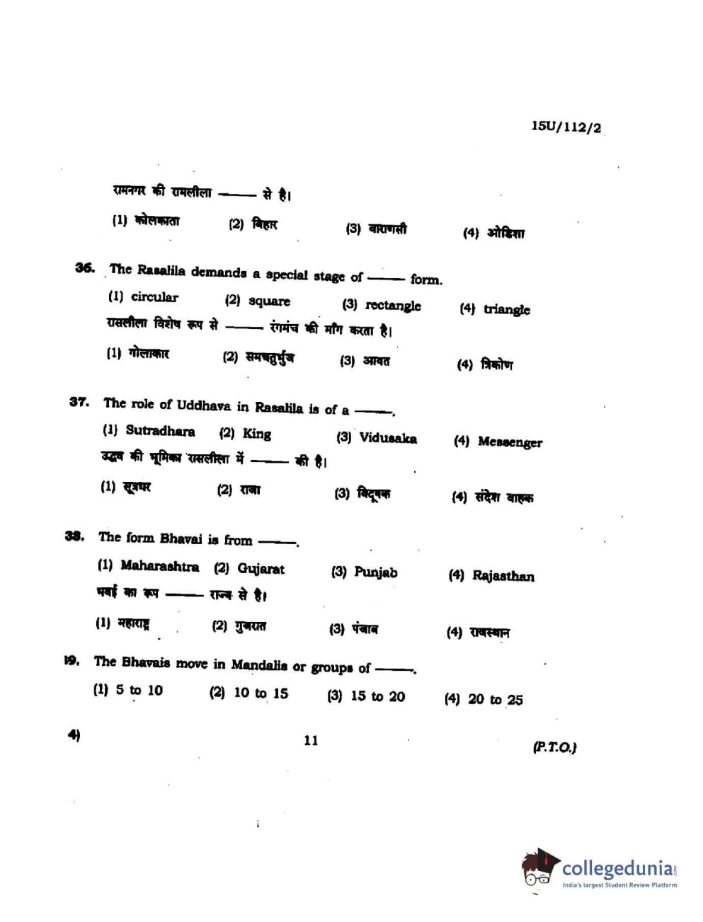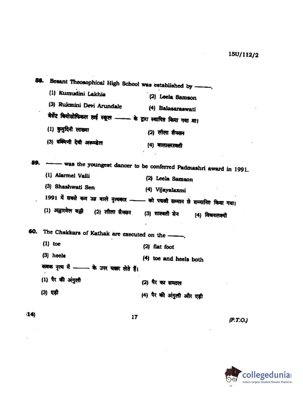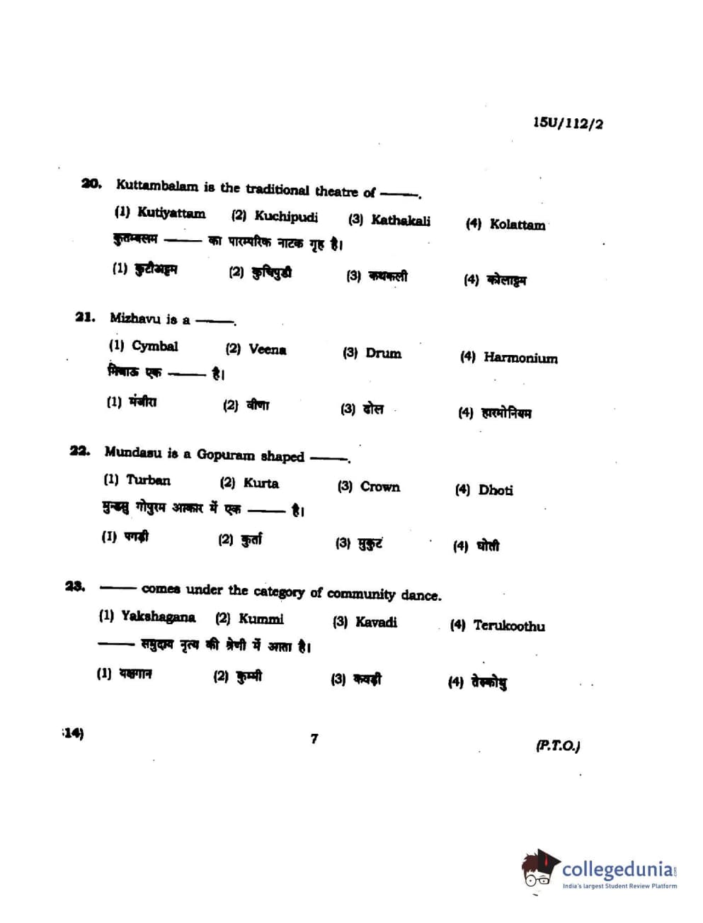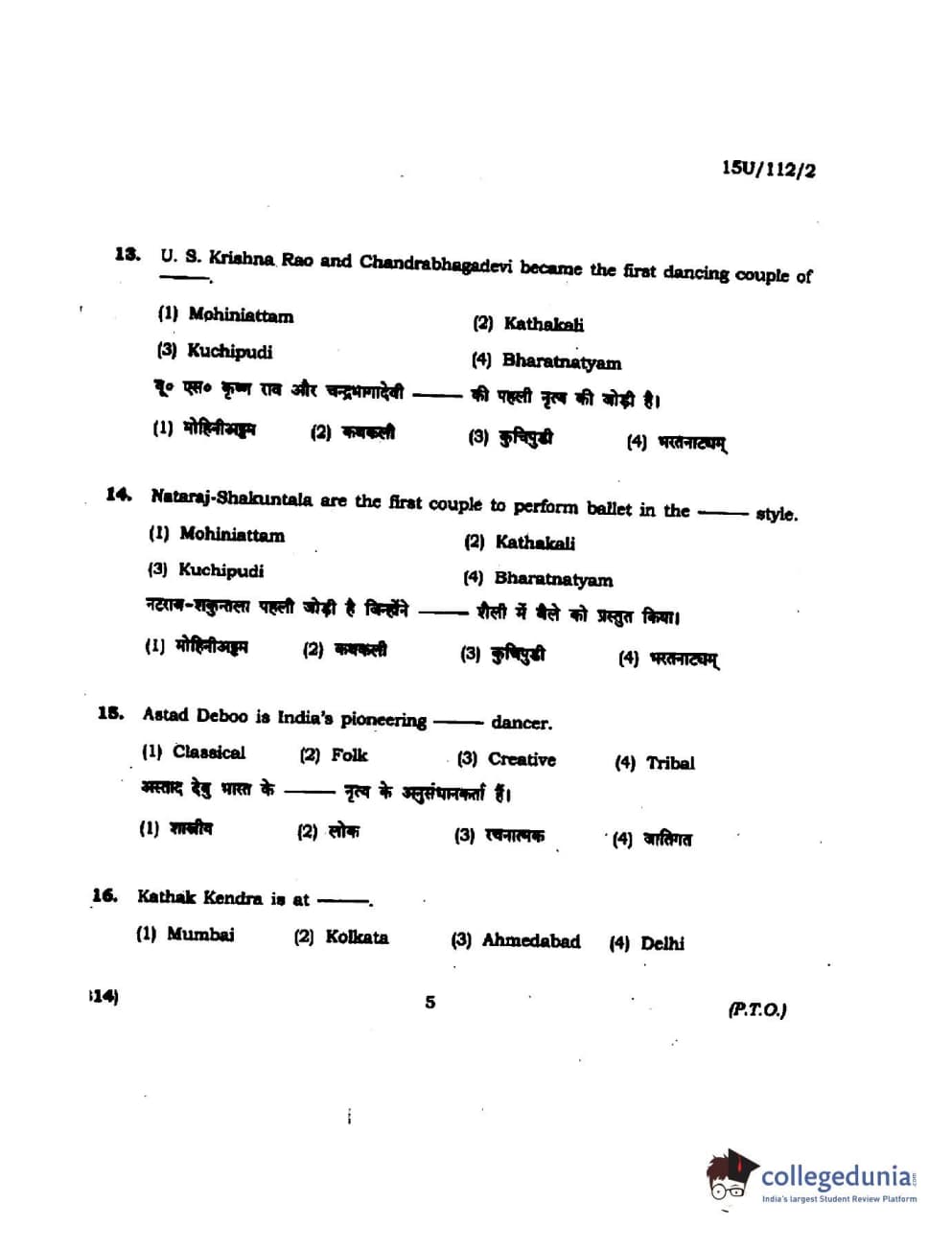 BHU UET 2015 B.Mus Bharatnattyam Question Paper with Answer Key PDFs