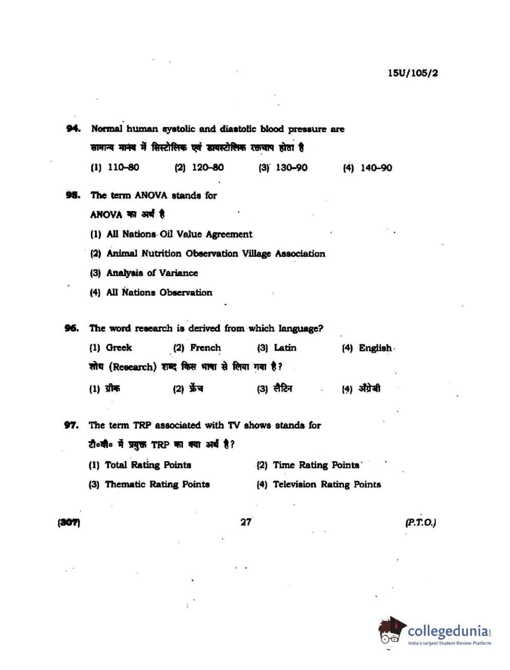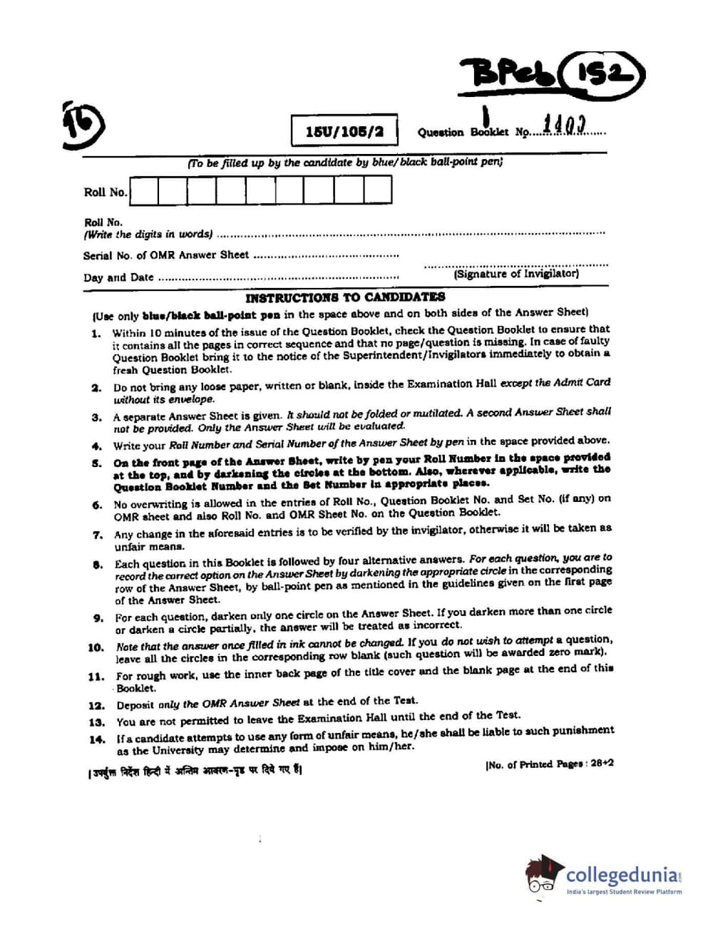 BHU UET 2015 B.P. Ed Question paper with answer key pdf is available for download. The exam was successfully organized by Banaras Hindu University (BHU). The question paper comprised a total of 100 questions.