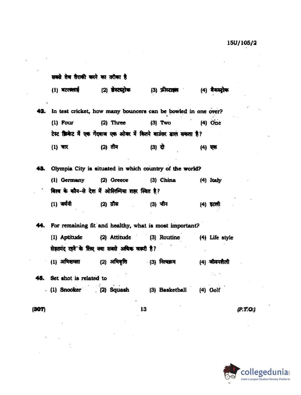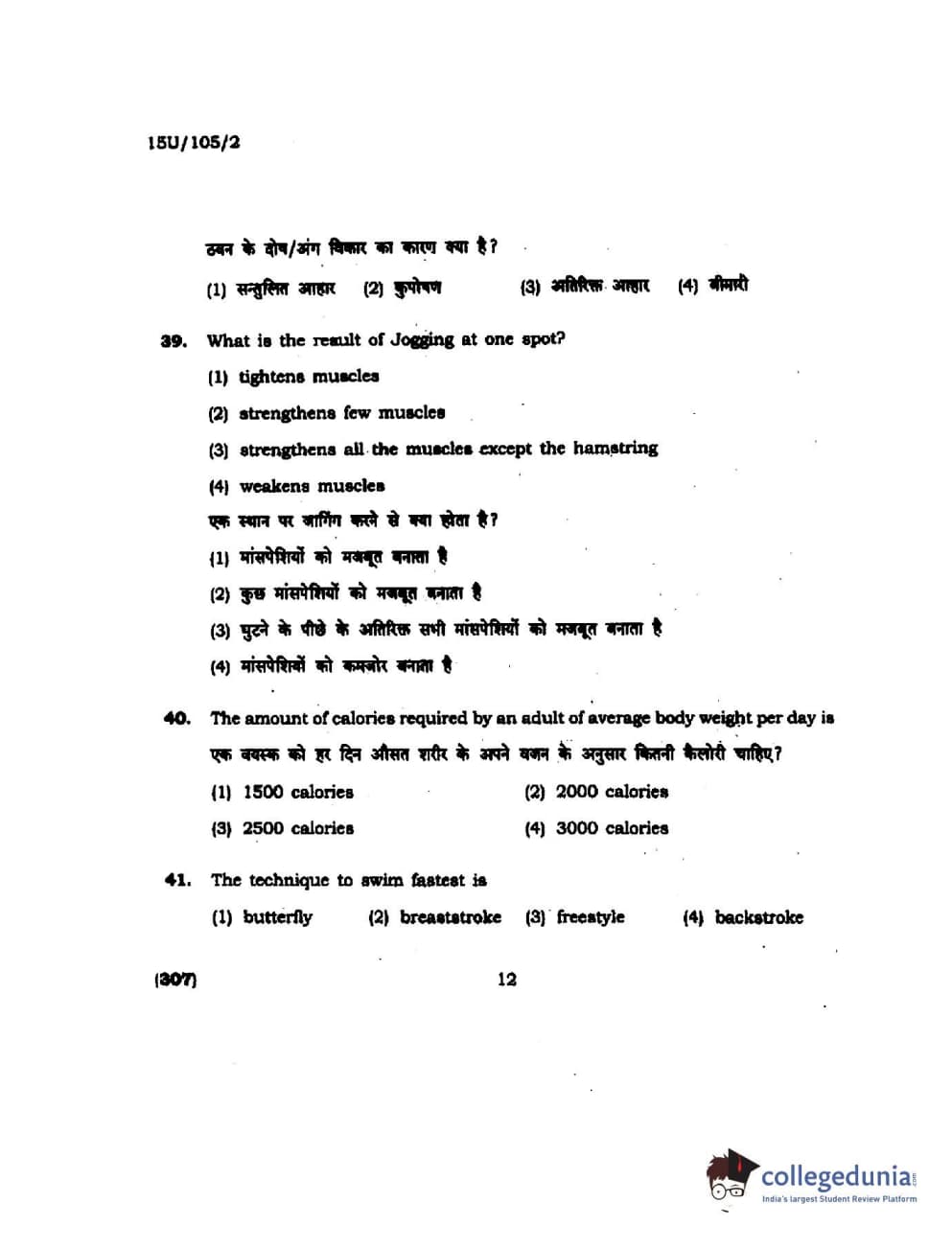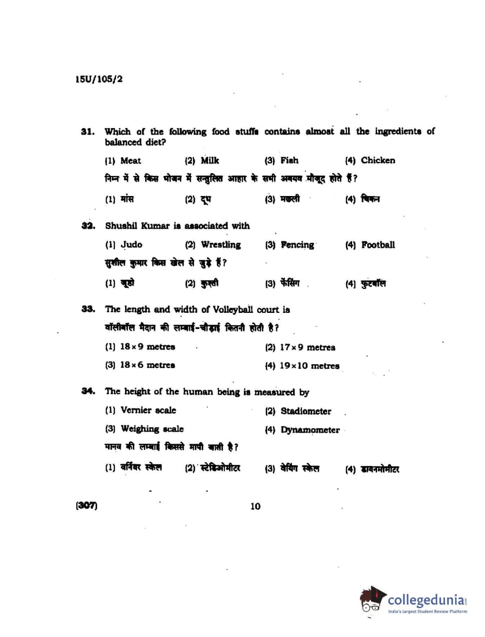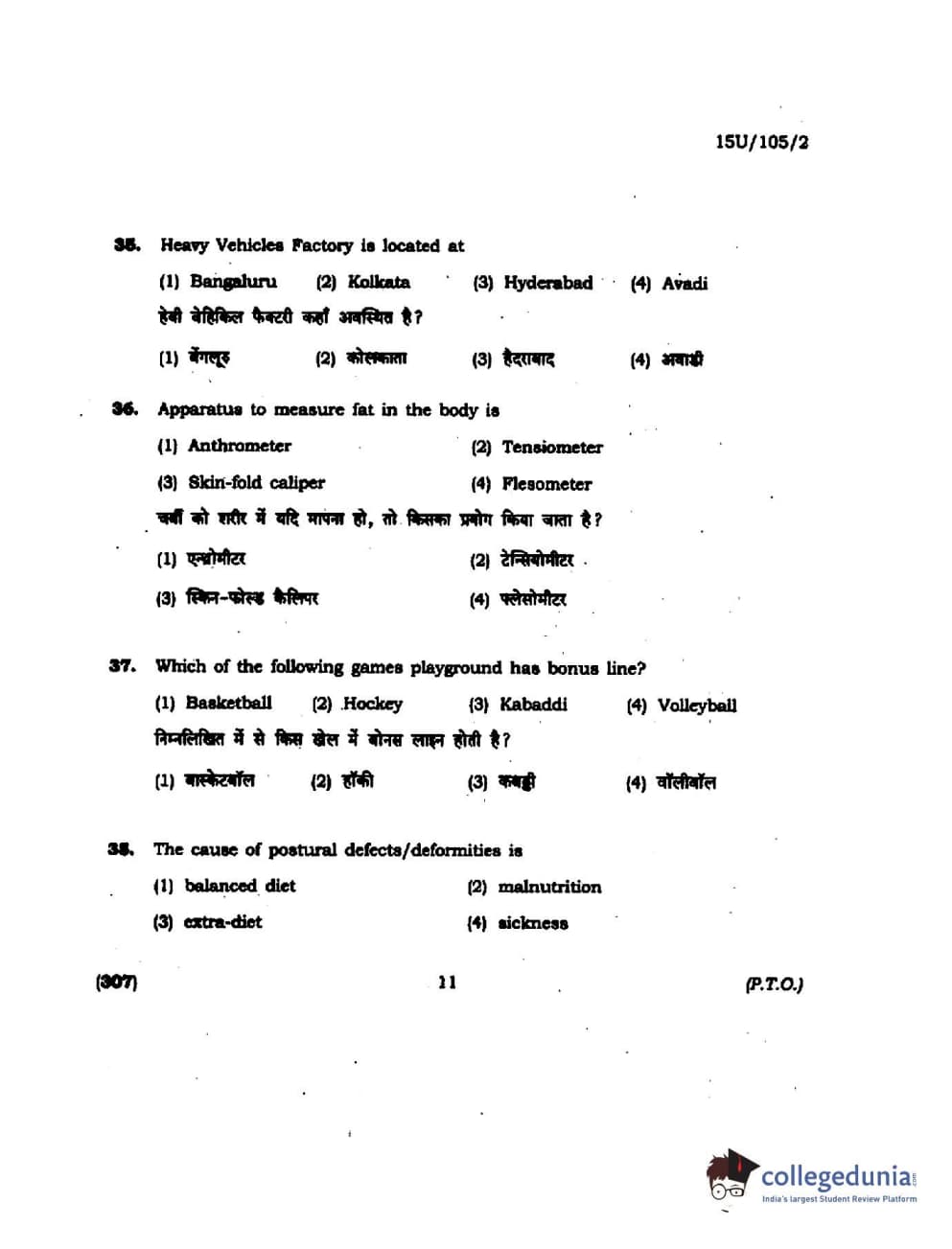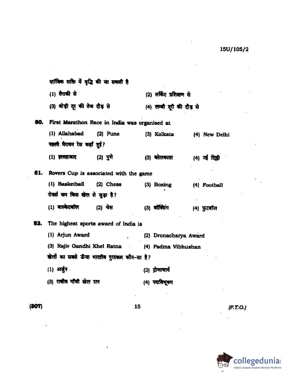 BHU UET 2015 B.P. Ed Question Paper with Answer Key PDFs