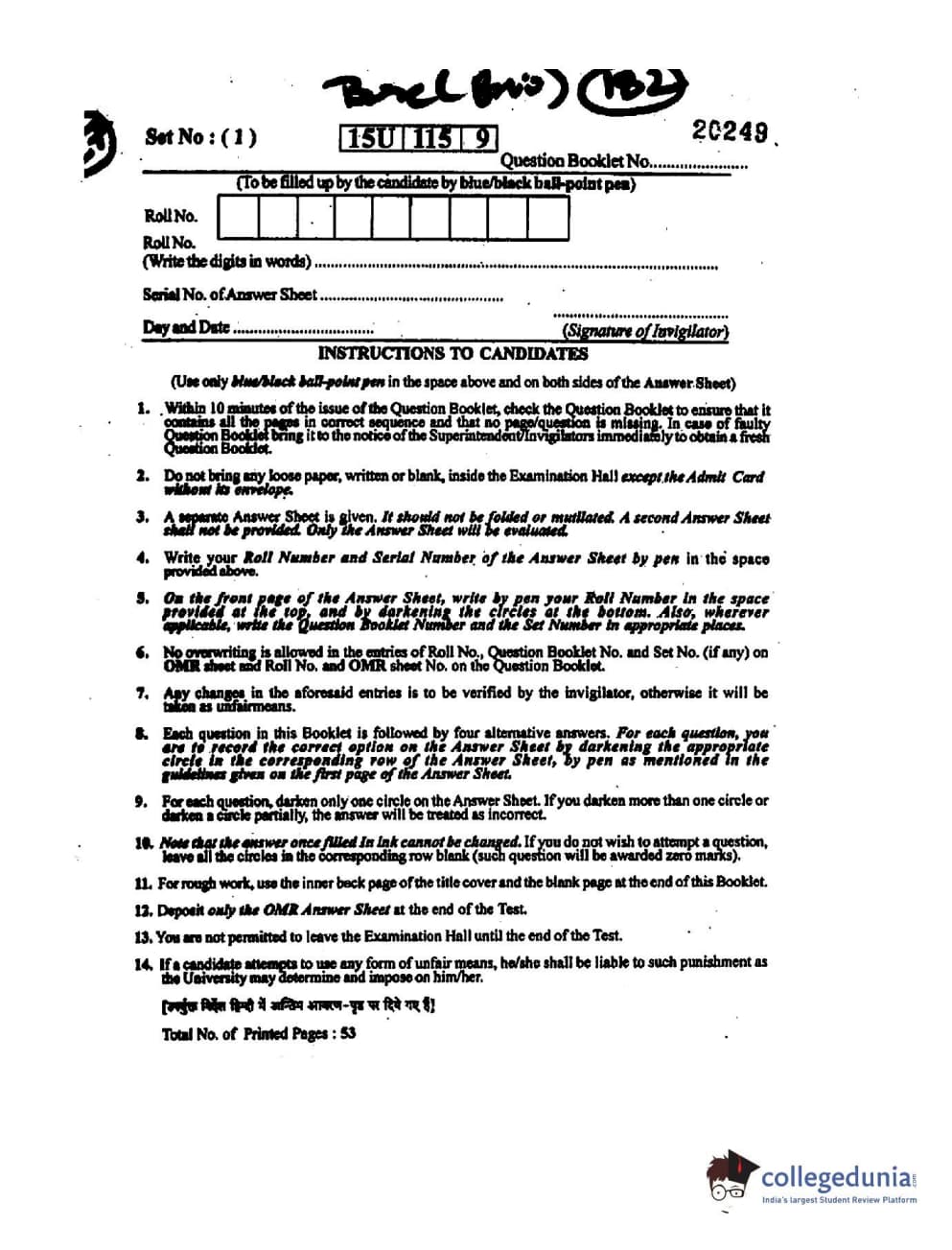 BHU UET 2015 B.Sc (Bio) Question paper with answer key pdf is available for download. The exam was successfully organized by Banaras Hindu University (BHU). The question paper comprised a total of 150 questions.