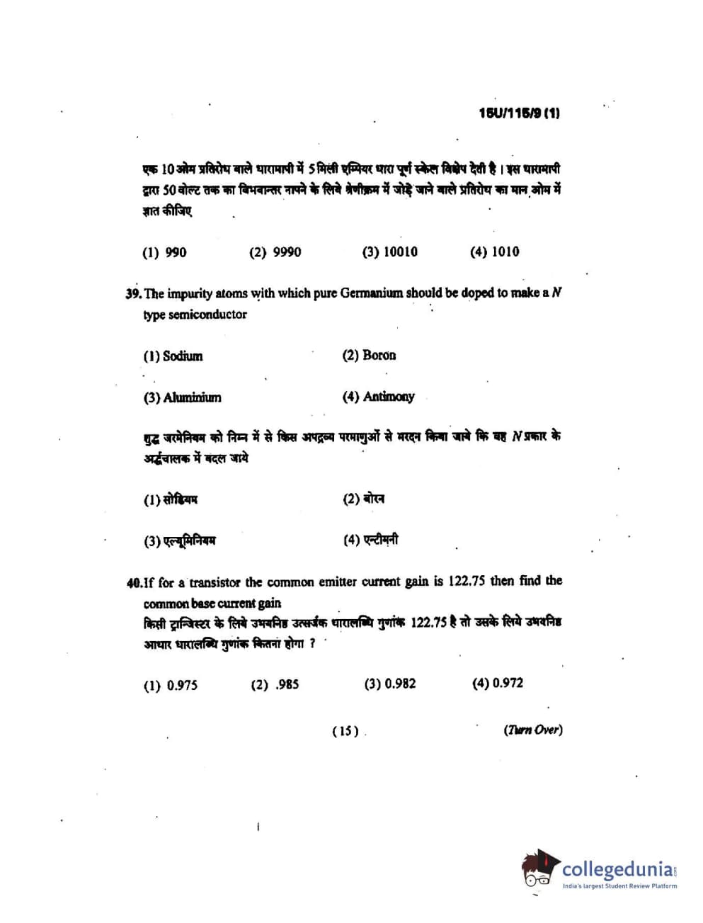 BHU UET 2015 B.Sc (Bio) Question Paper with Answer Key PDFs