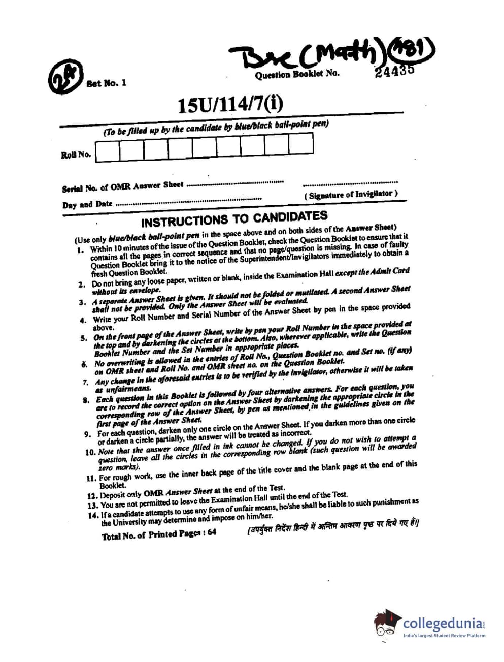 BHU UET 2015 B.Sc (Maths) Question paper with answer key pdf is available for download. The exam was successfully organized by Banaras Hindu University (BHU). The question paper comprised a total of 150 questions.