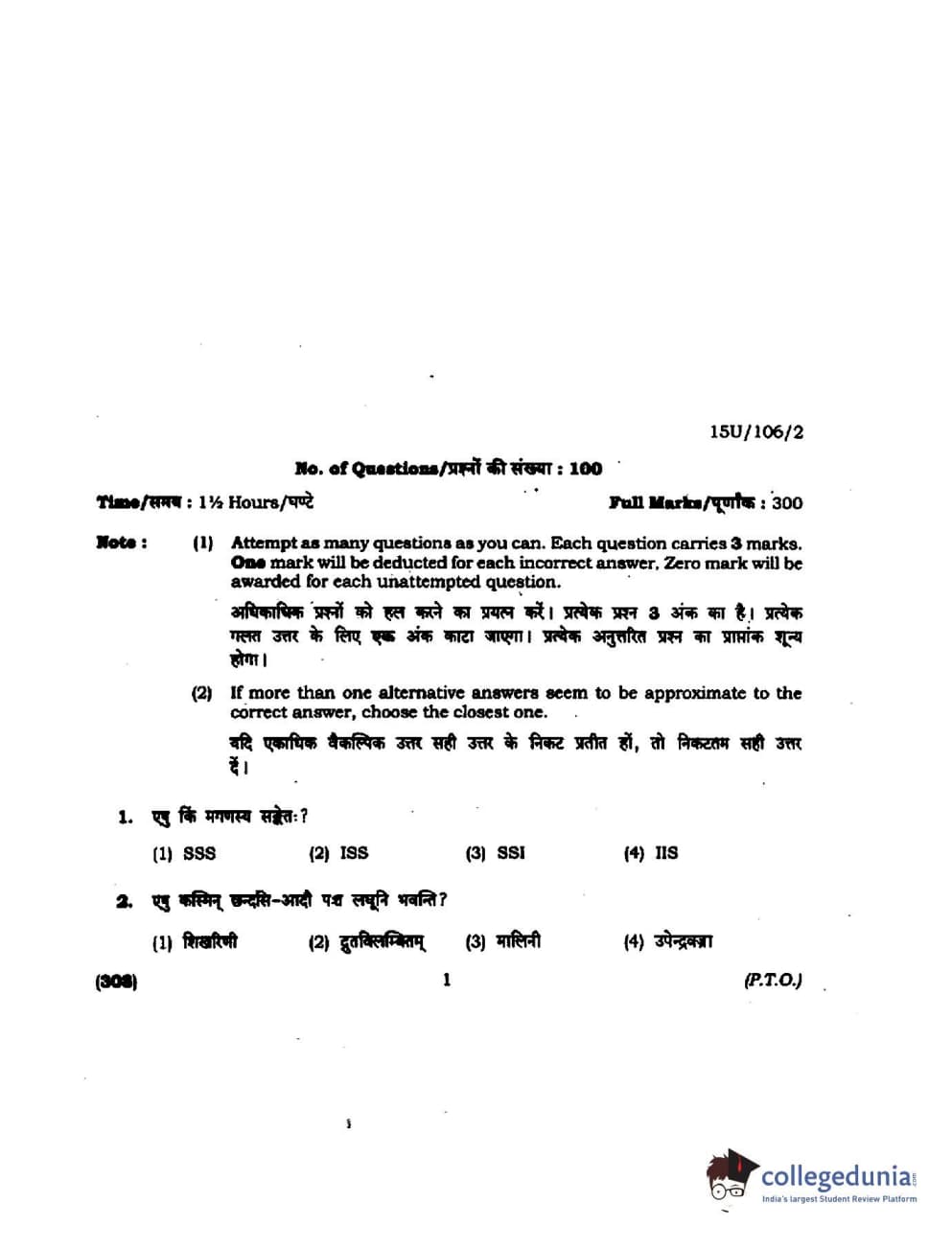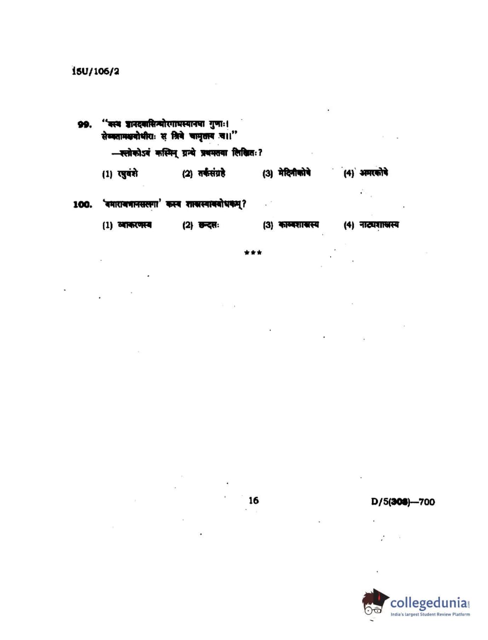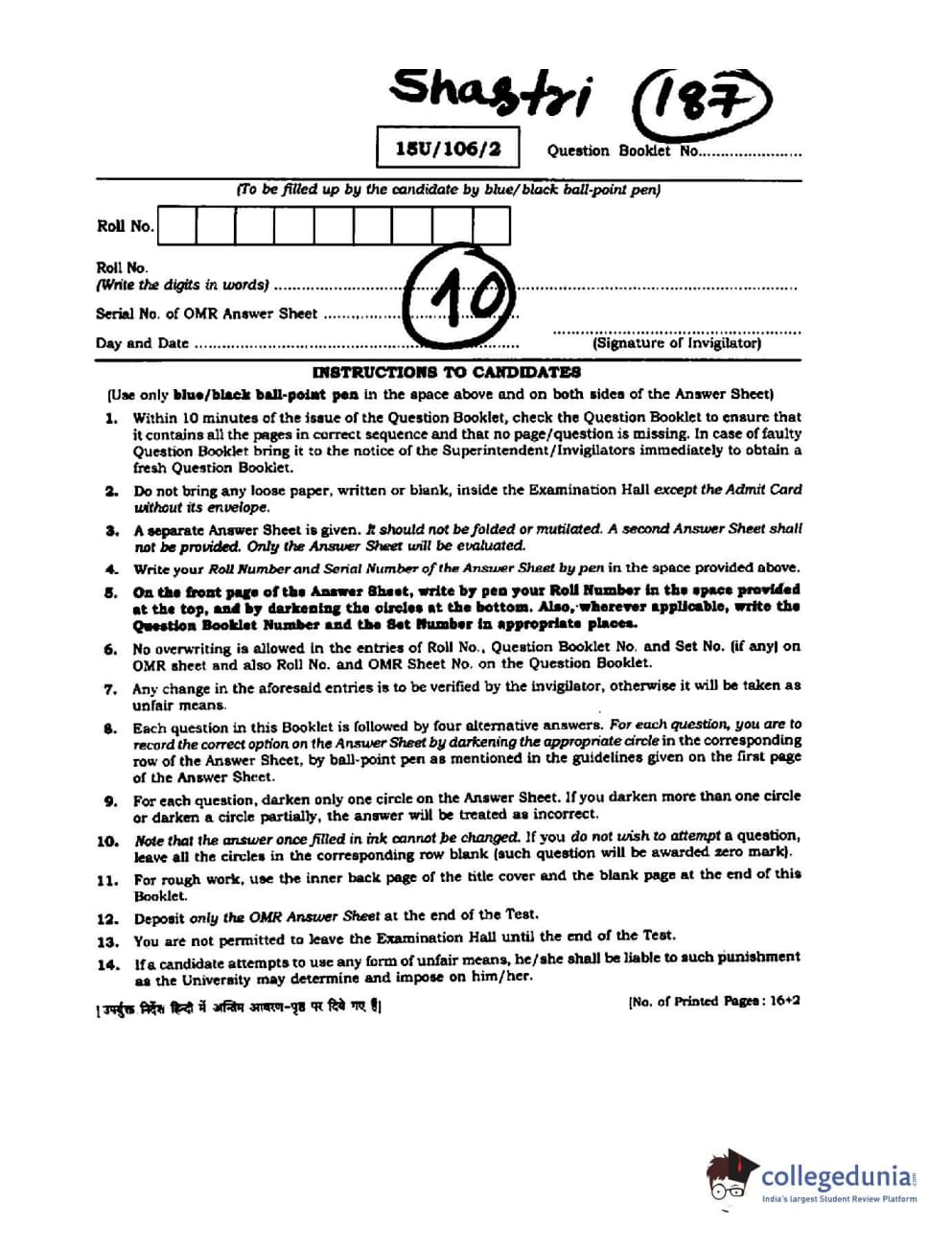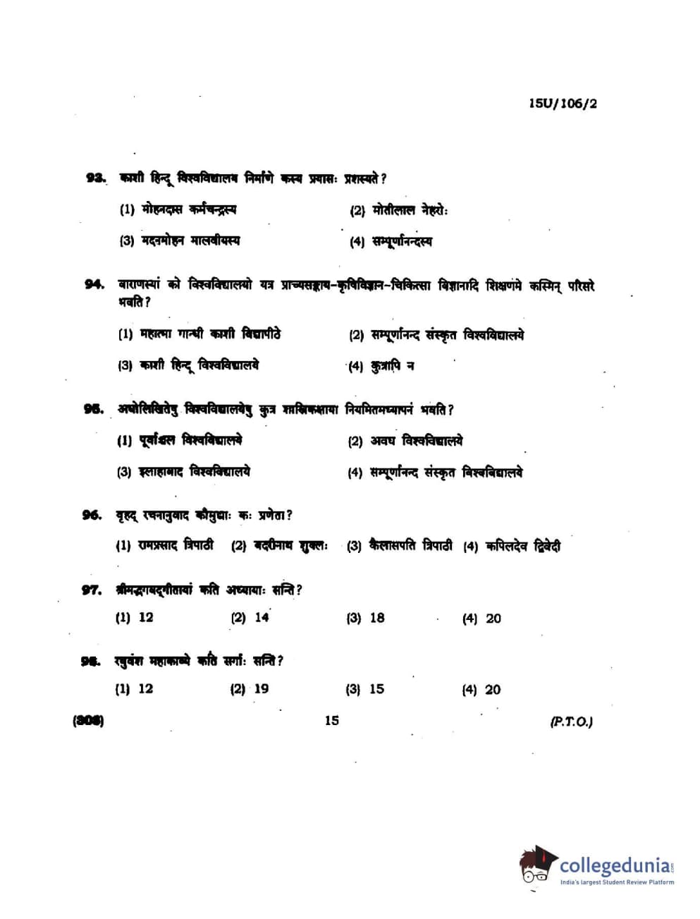 BHU UET 2015 SHASTRI Question paper with answer key pdf is available for download. The exam was successfully organized by Banaras Hindu University (BHU). The question paper comprised a total of 100 questions.