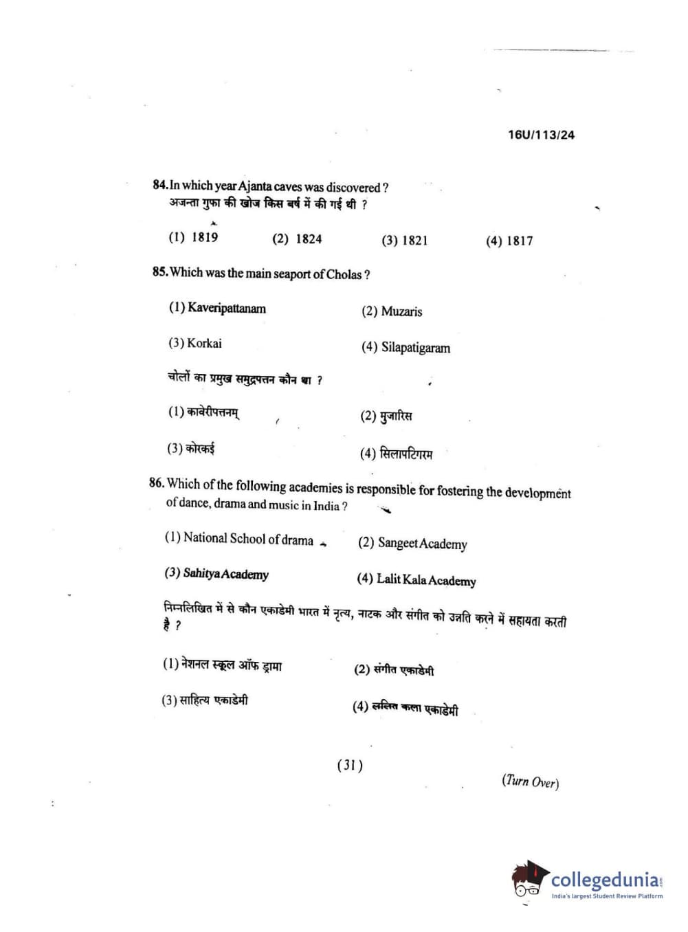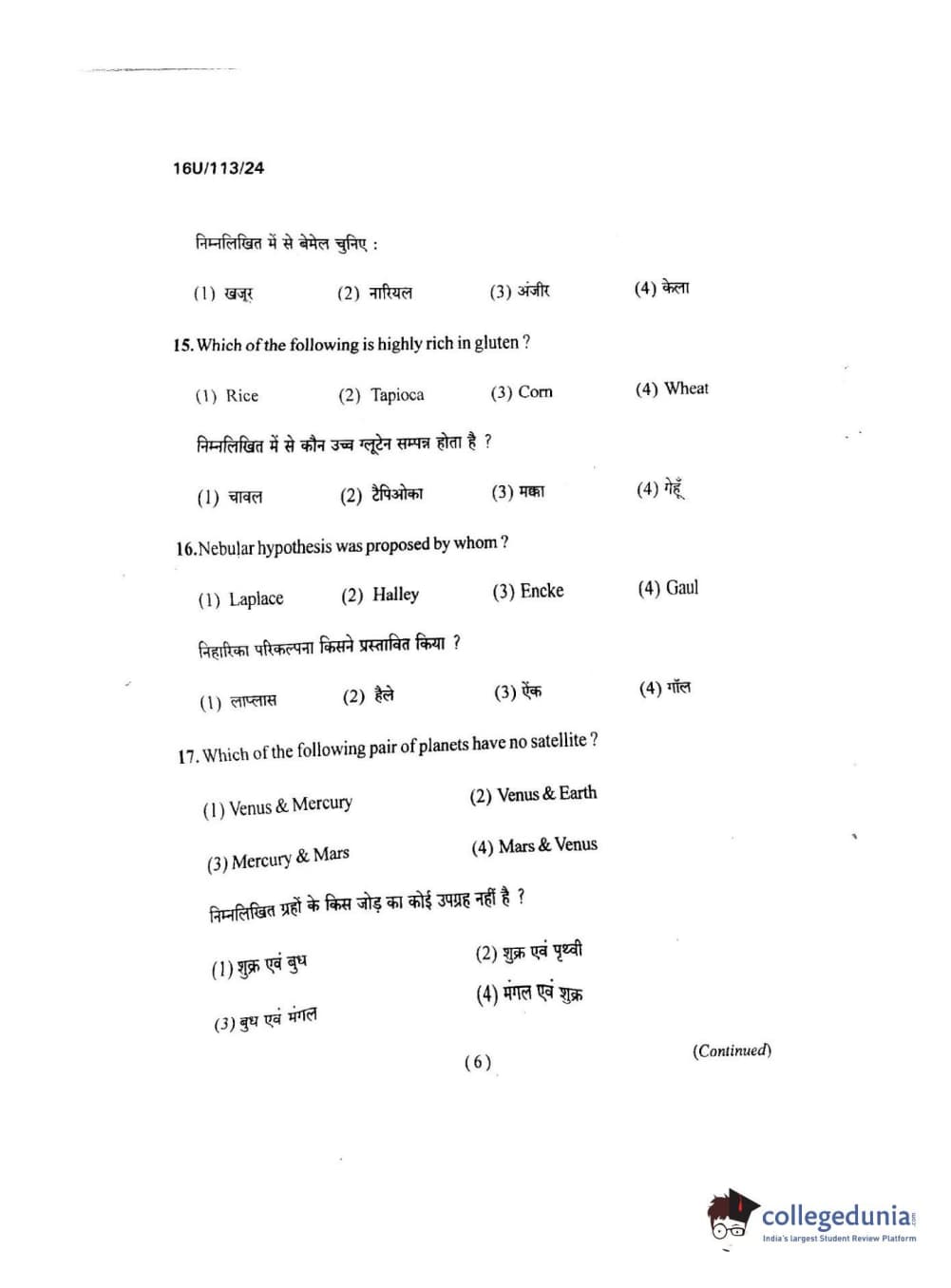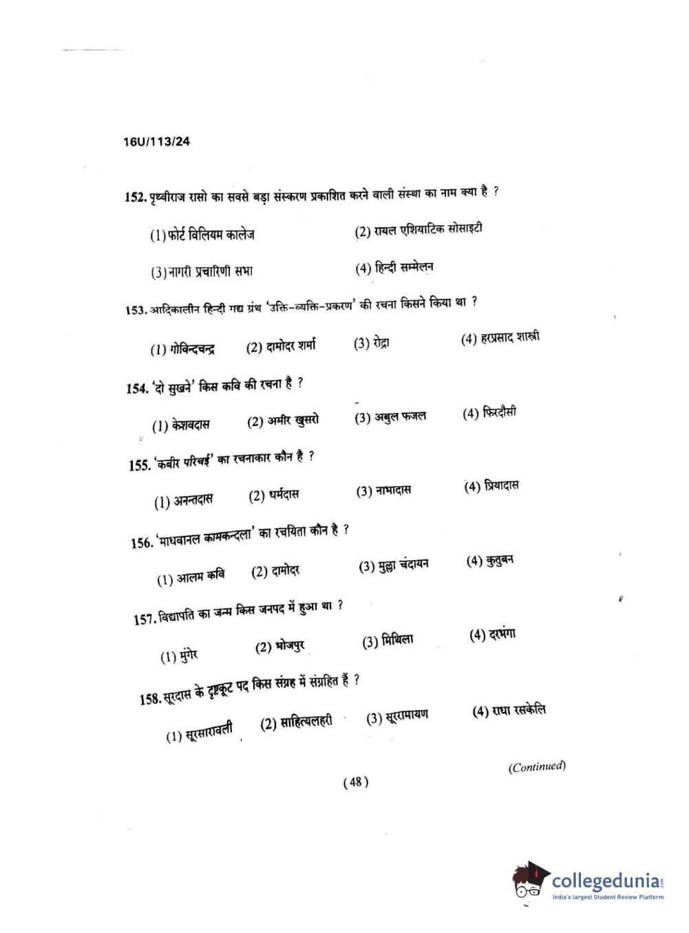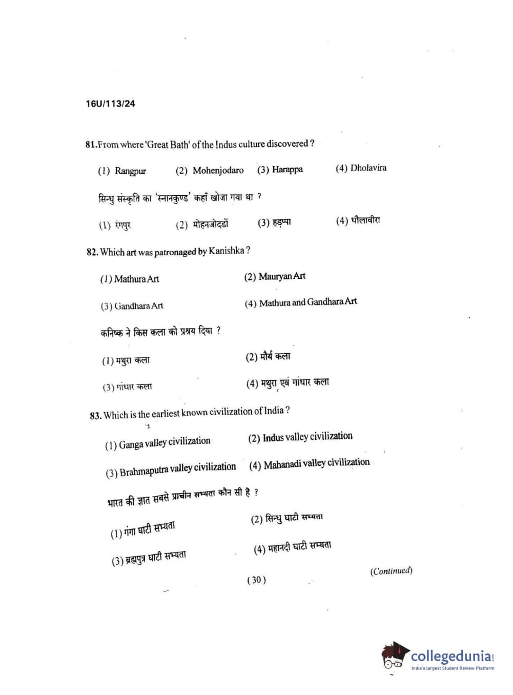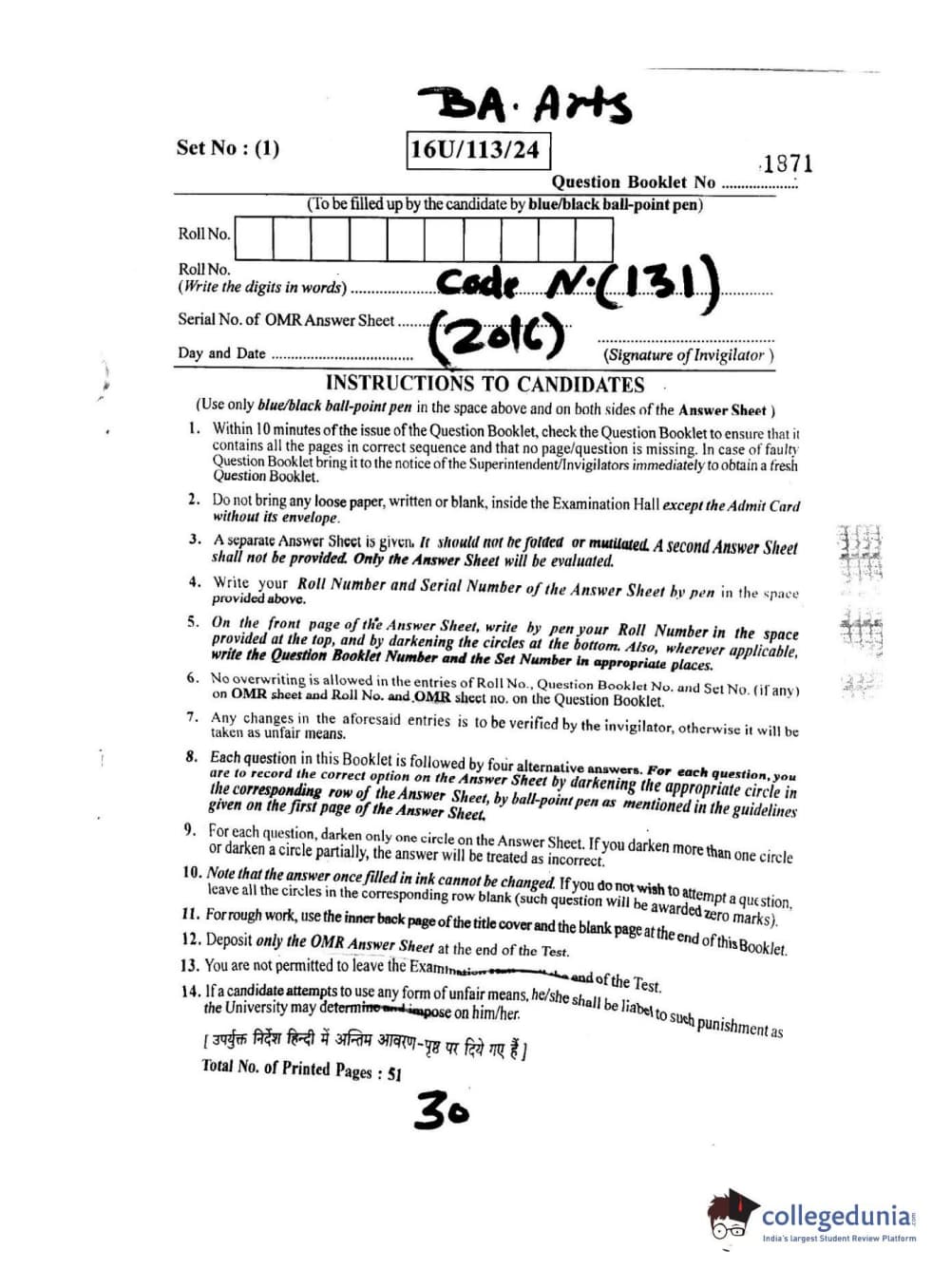 BHU UET 2016 B.A. ARTS Question Paper with Answer Key PDFs
